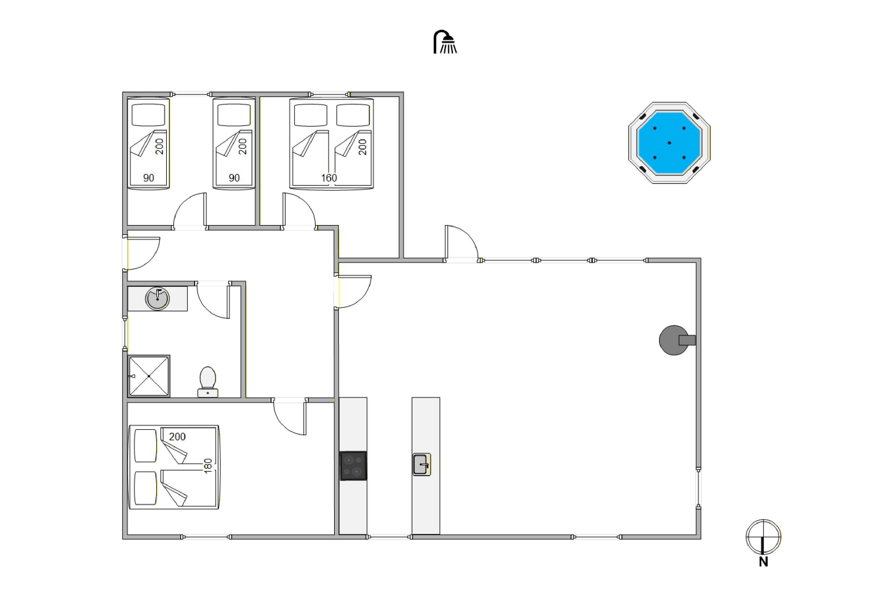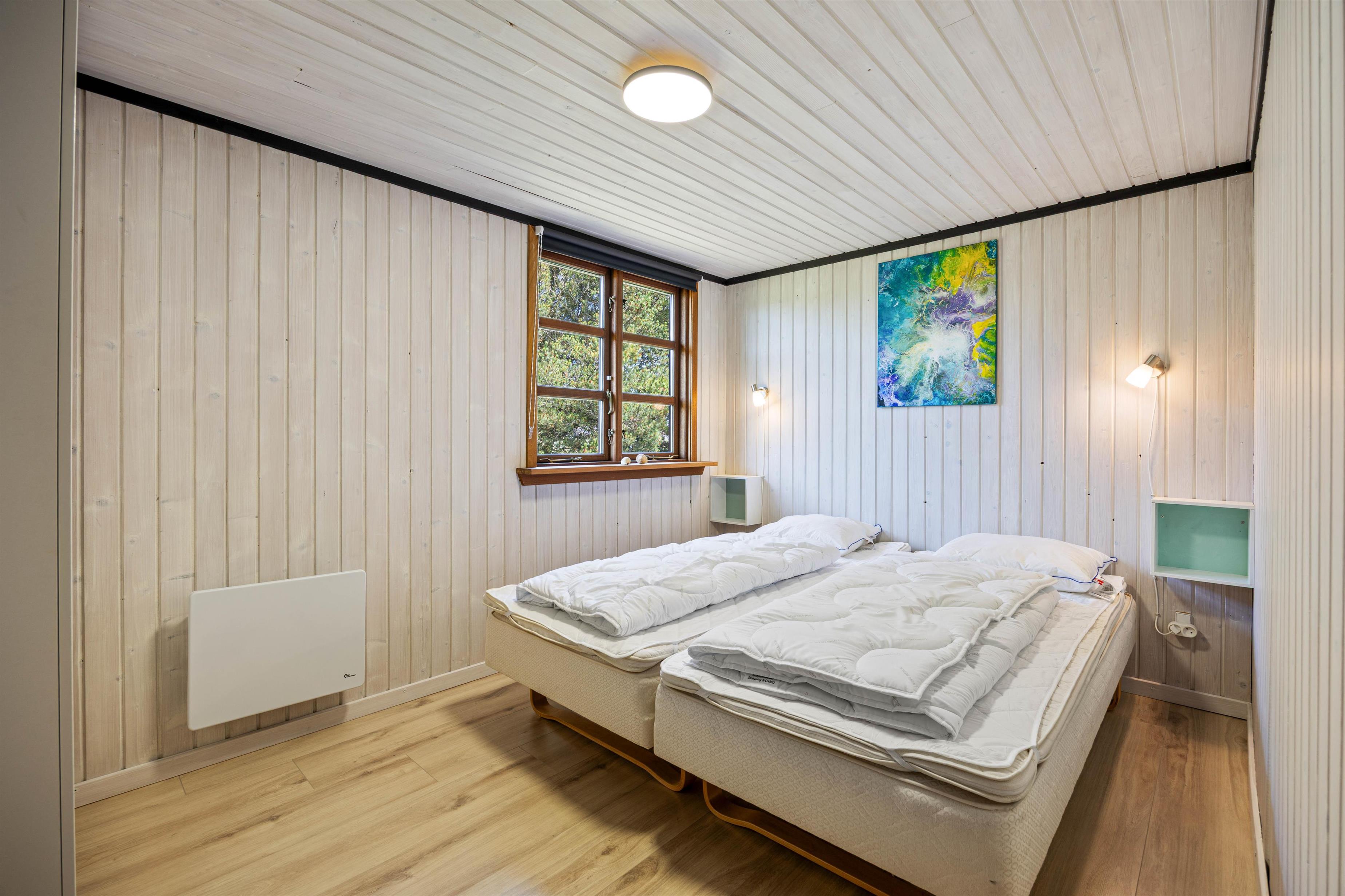Sommerhuset har 3 gode soverum, hvor I kan finde til ro efter en dejlig dag. Derudover er der 1 badeværelse med gulvvarme, så I kan starte dagen med lune fødder. Derudover har sommerhuset en vaskemaskine, så I har mulighed for at få vasket jeres tøj under ferien.