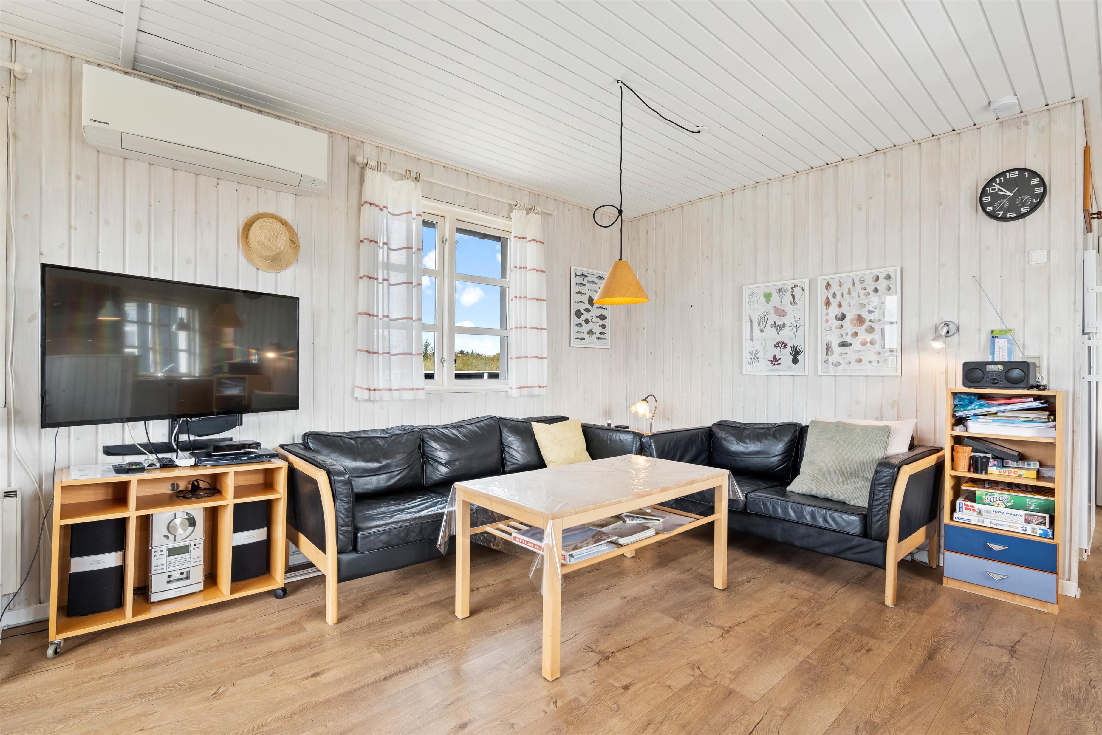 Hvis vestenvinden har vist tænder, og I trænger til at varme jer, er der rig mulighed for at nyde sommerhusets brændeovn i stuen. Derefter kan I bevæge jer videre til sommerhusets dejlige sauna, som inviterer til at læne sig tilbage og nyde ferien.