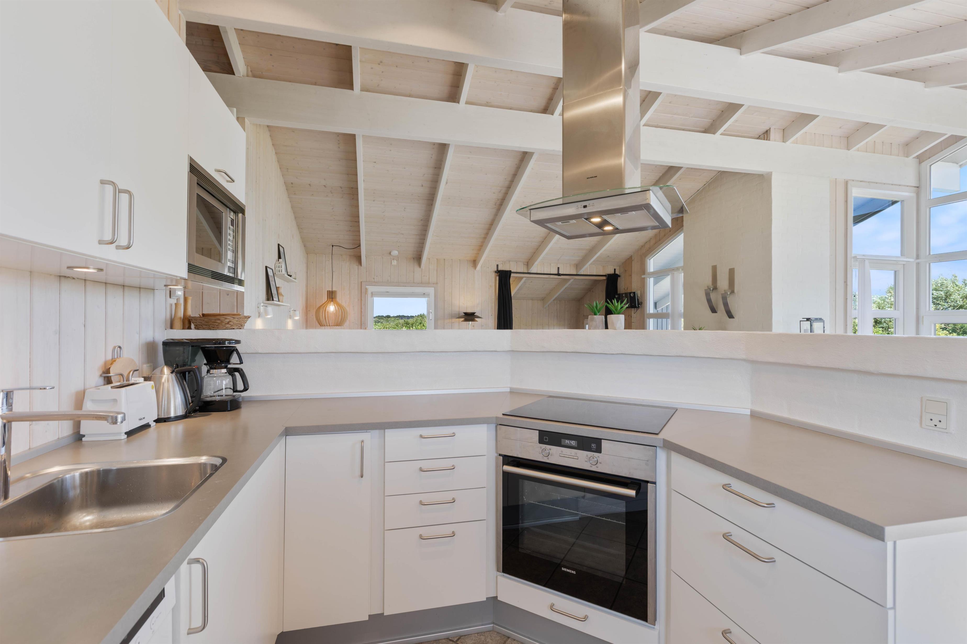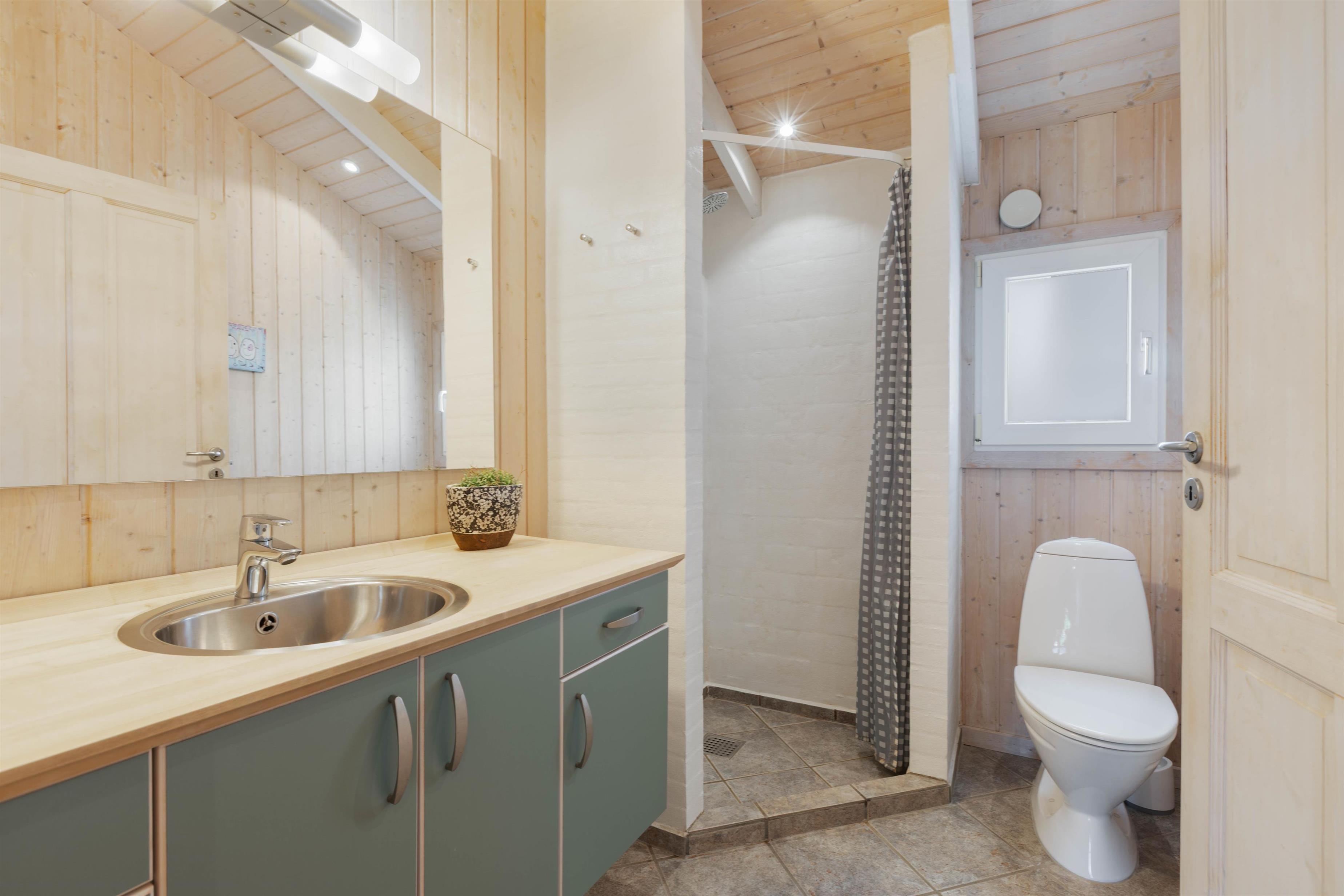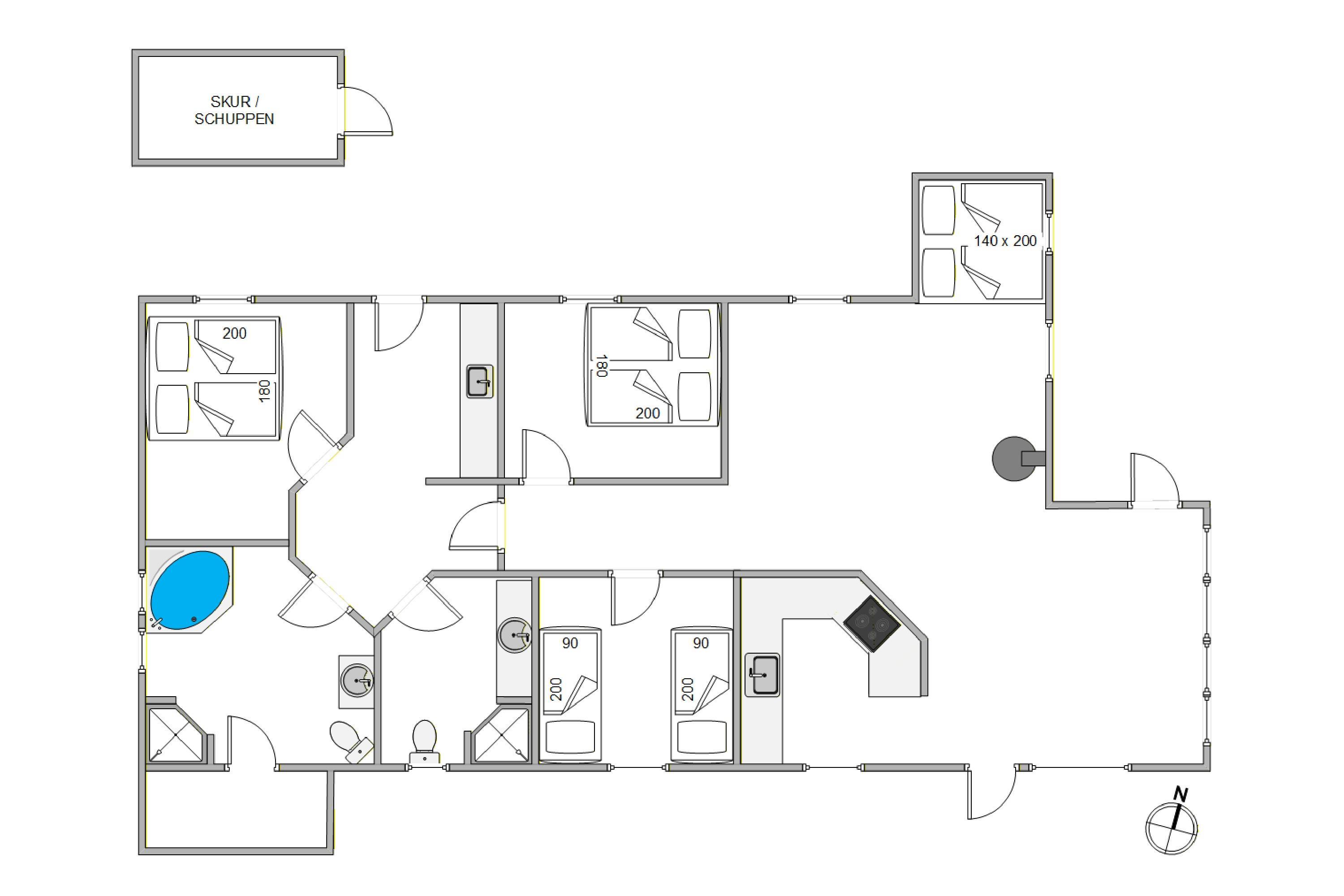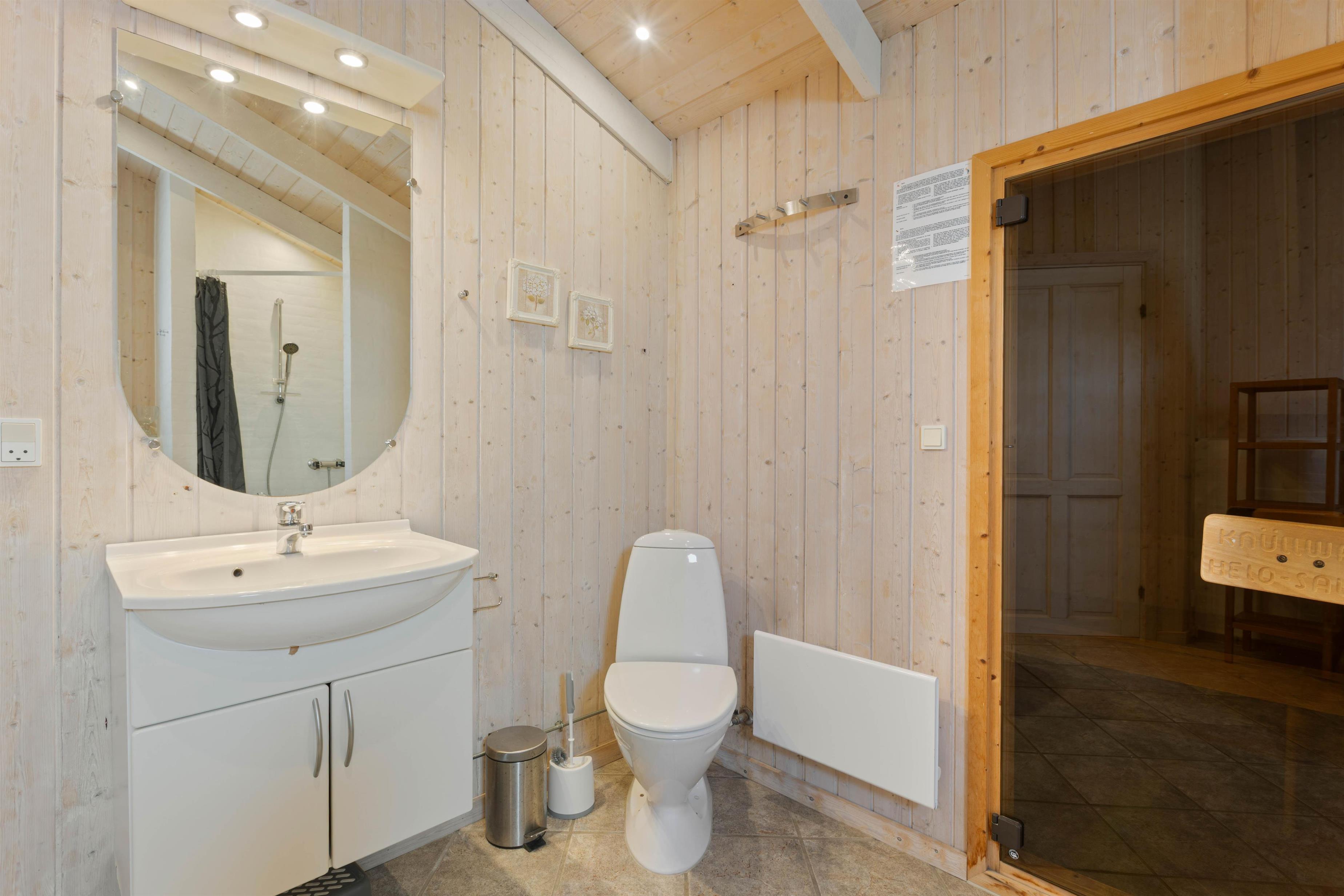 Sommerhuset har 2 gode badeværelser, begge har gulvvarme og en bruseniche. På det store badeværelse er der også en hjørnespa og en sauna. I køkkenet er der et kombineret køle/fryseskab, en mikroovn og en opvaskemaskine. I stuen er der en brændeovn, et fladskærms-TV, der er ZDF, RTL, ARD og NDR, der er radio m/CD-afspiller og gratis trådløst internet. I huset findes der desuden også en vaskemaskine og en tørretumbler.