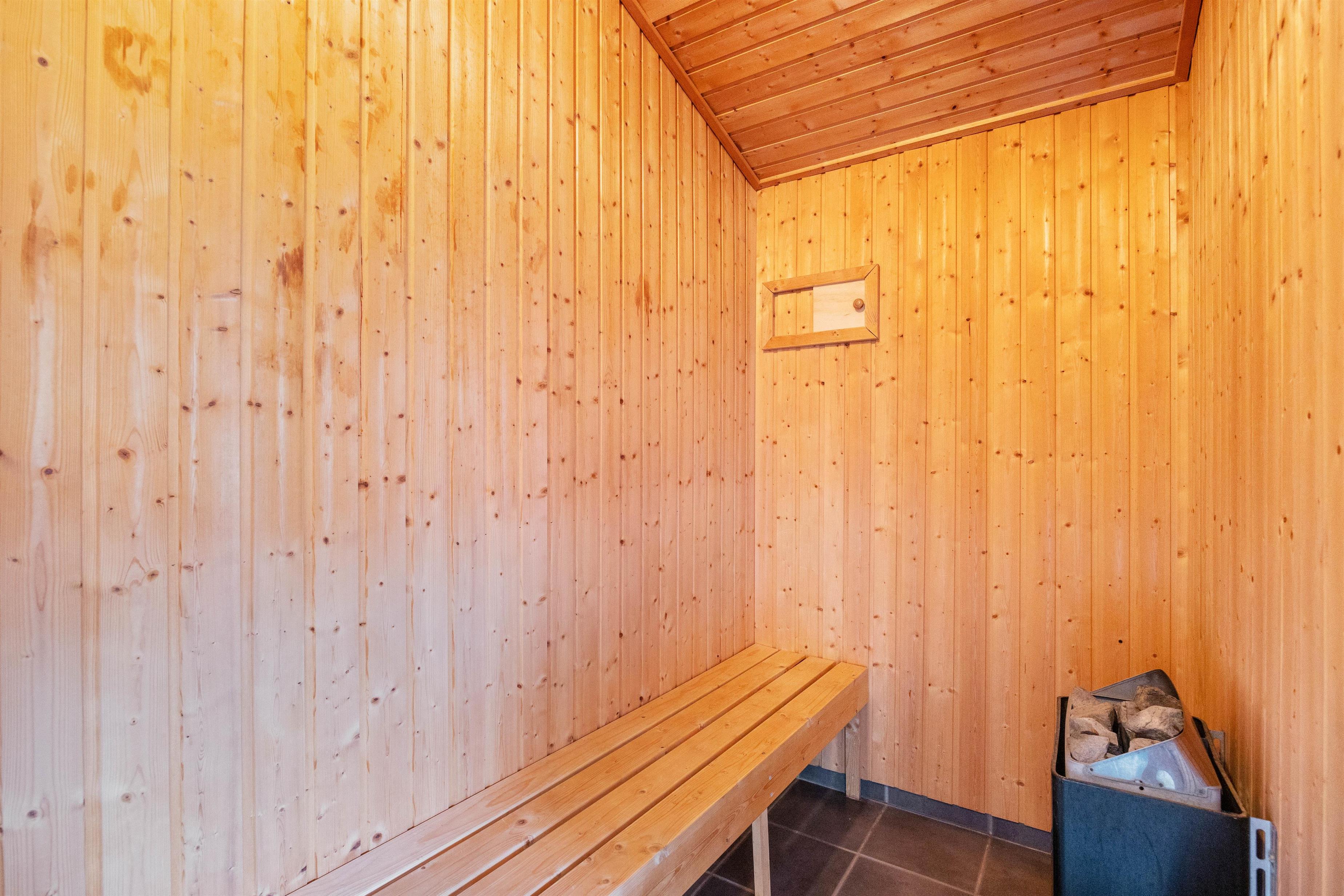 På det store badeværelse er der også en lille wellness-afdeling, som I helt sikkert vil blive glade for. Det lækre spabad står klar til at forkæle jer med det varme boblende vand, der kan få selv de fladeste batterier ladt op igen. Efterfølgende kan I sætte jer ind i den varme sauna, hvor I kan blive tørret og varmet lidt ekstra igennem.