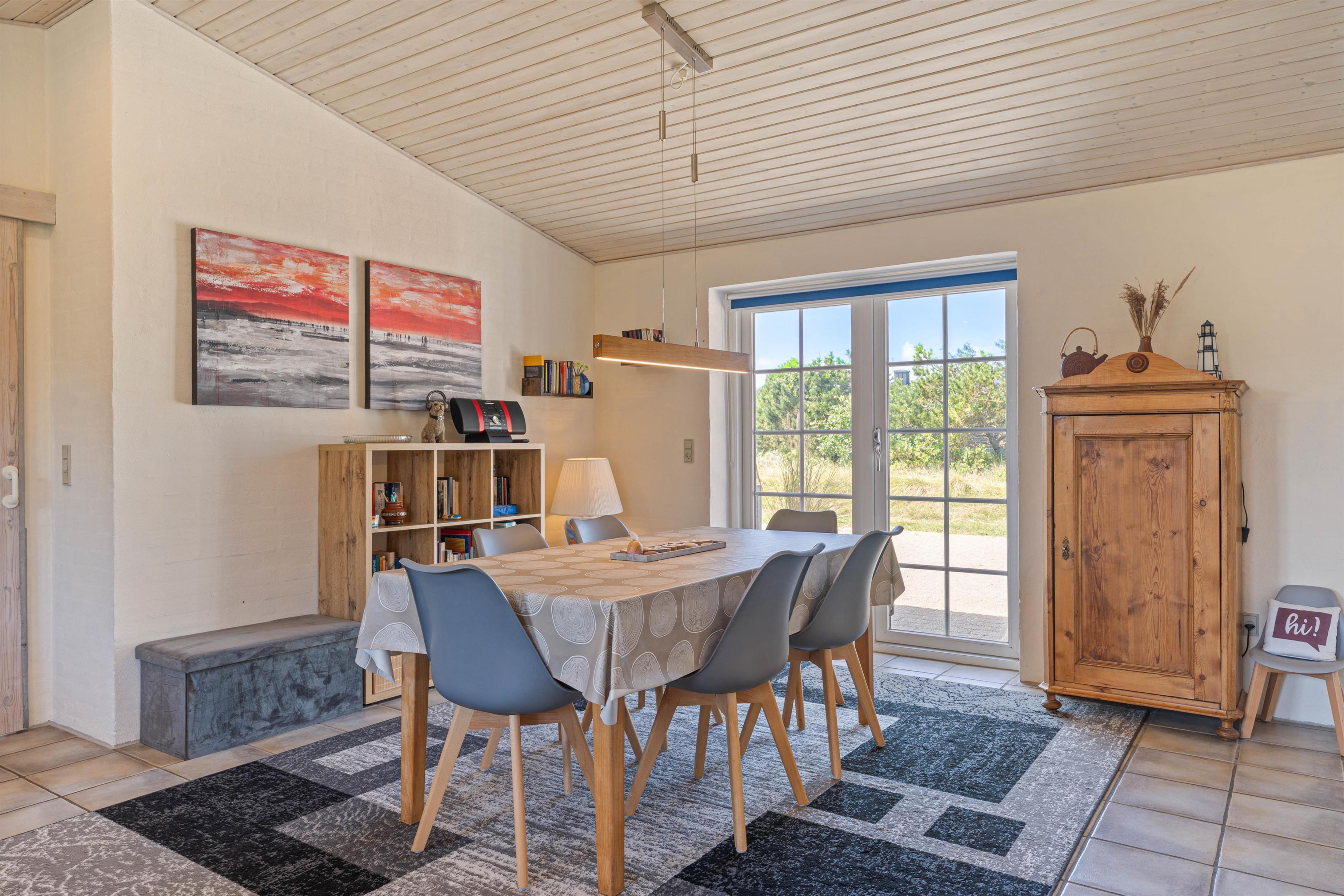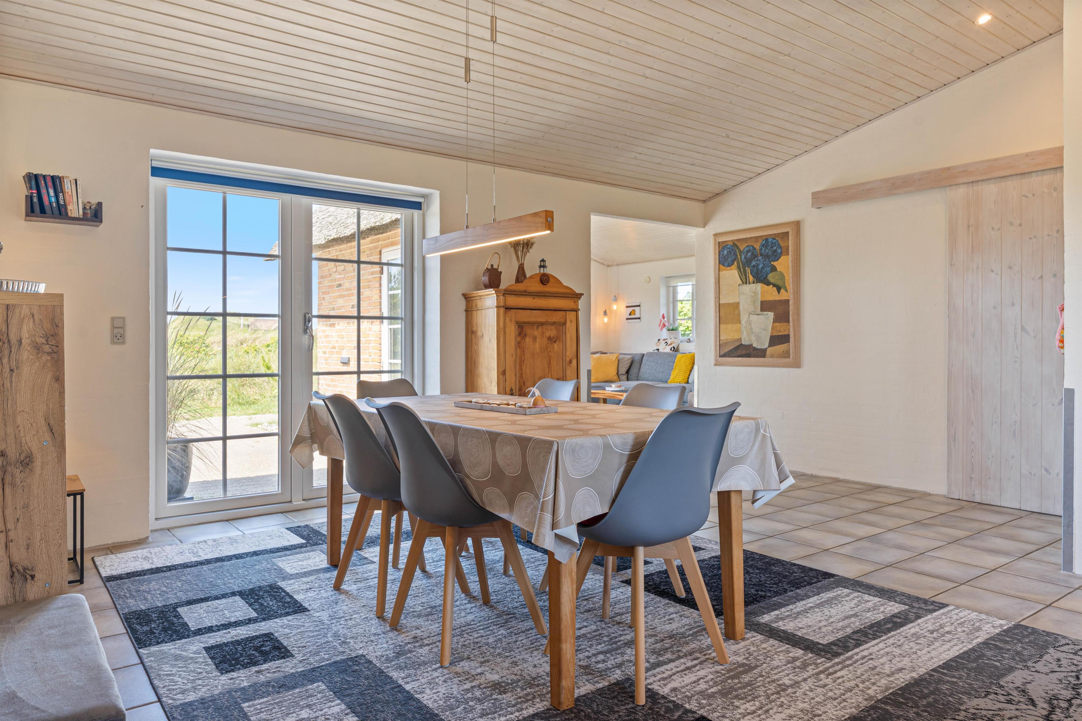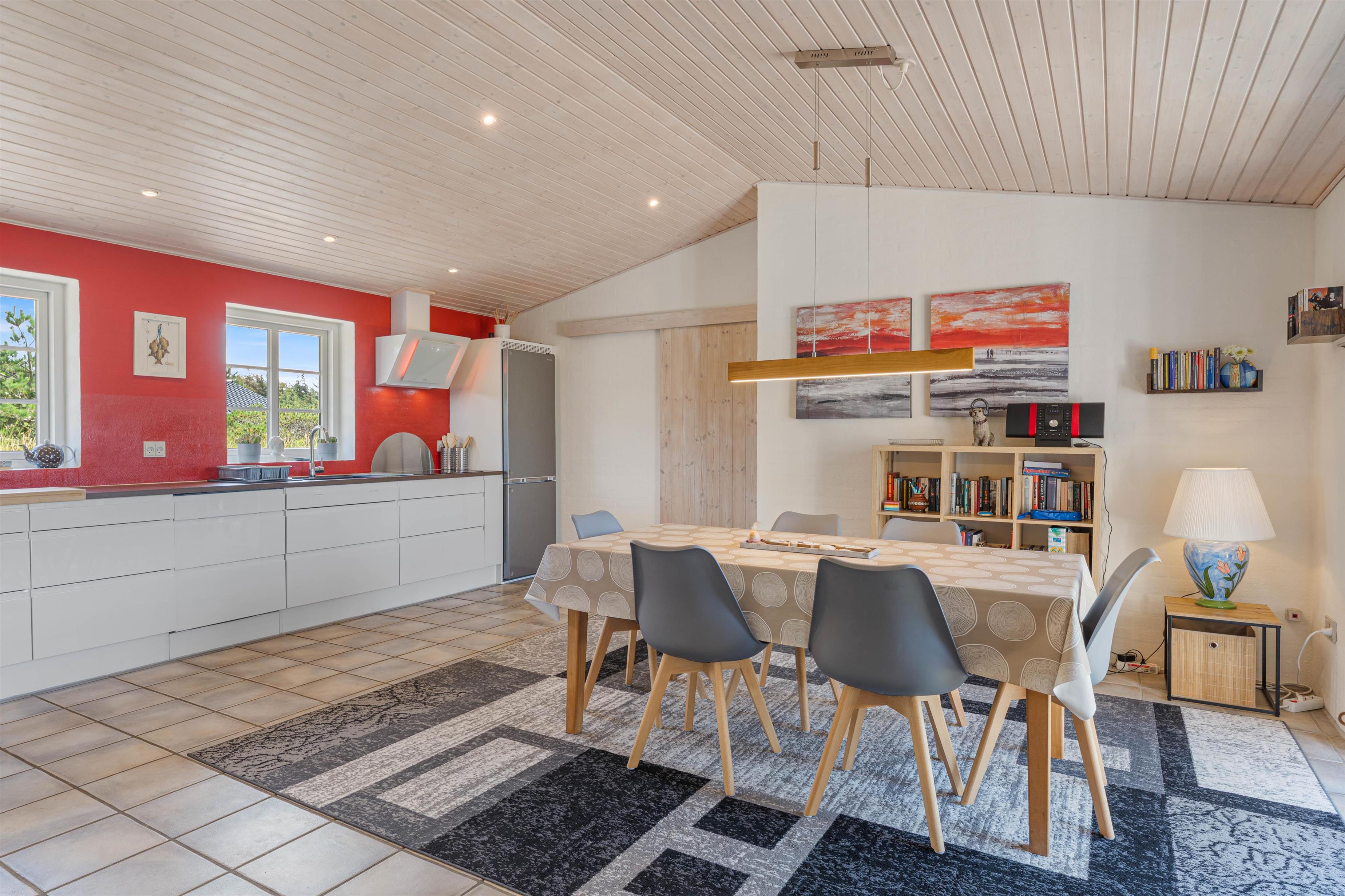 Sommerhuset på Lyngvejen 118 er en klassisk bygning på vestkysten med det charmerende stråtag og den indbydende indretning. Med et veludstyret køkken kombineret med spise- og opholdsstue kan I lave et velsmagende måltid i det funktionelle køkken med både opvaskemaskine, mikroovn, køleskab og fryser. I den hyggelige stue er der en brændeovn, som skaber en afslappende atmosfære. Derudover er der gulvvarme, som sørger for at holde en rar temperatur i sommerhuset.