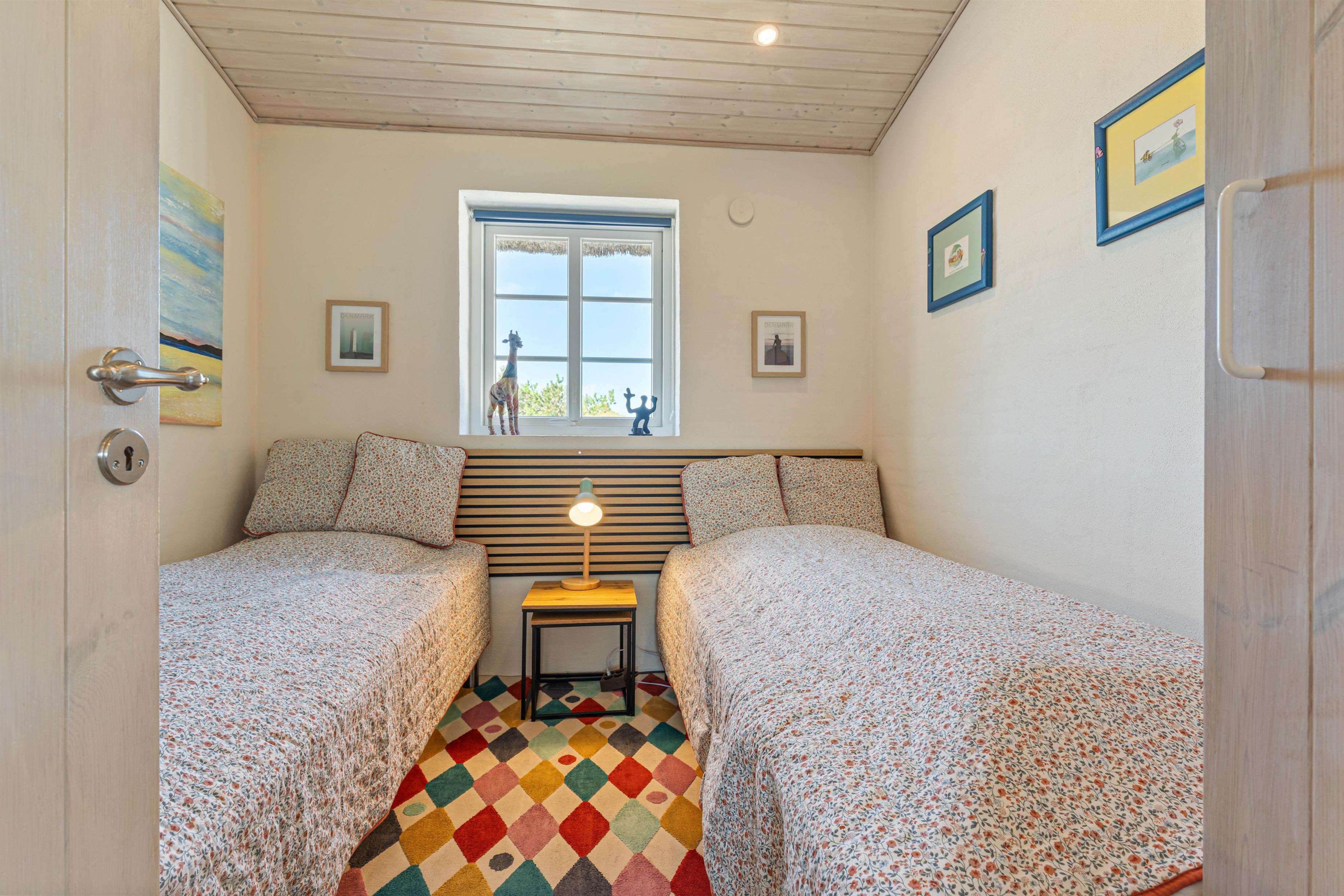 I sommerhuset er der 3 gode og komfortable soveværelser, og her kan I roligt slå jer ned, når det er tid til at sove. Værelserne vil sikre jer en rolig og afslappende nats søvn, så I er veludhvilede til en ny dag. Soveværelserne er med henholdsvis 2 dobbeltsenge og 2 enkeltsenge.