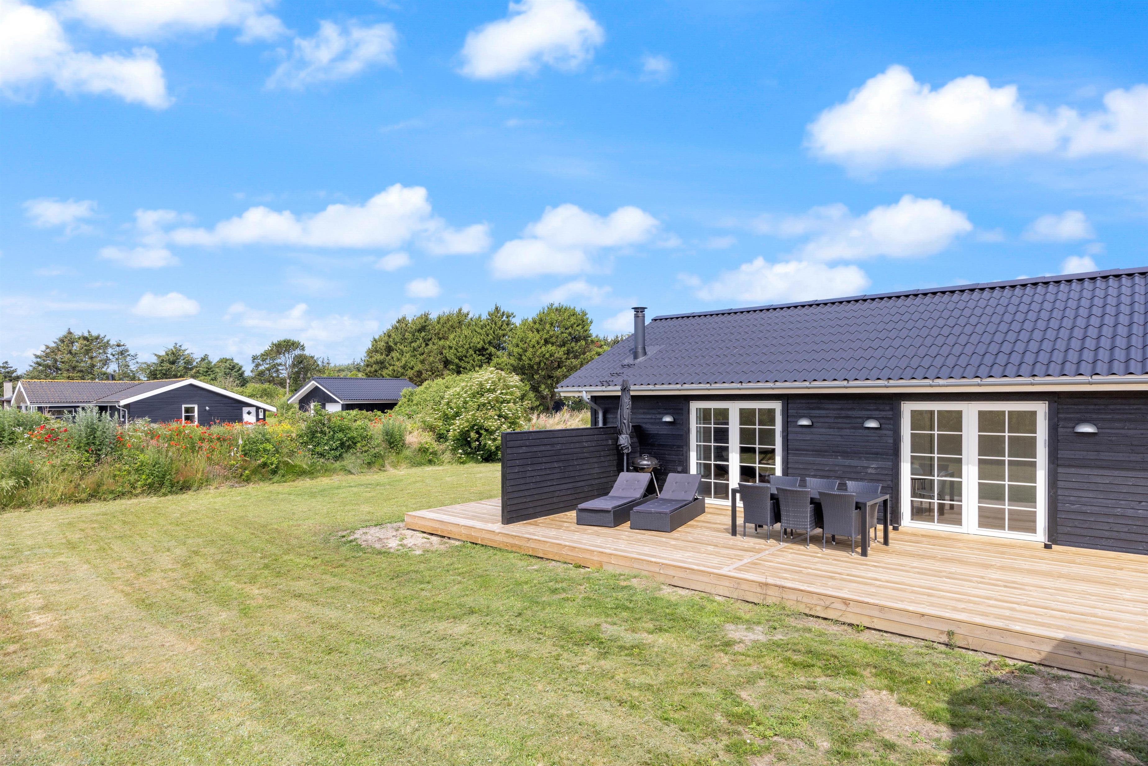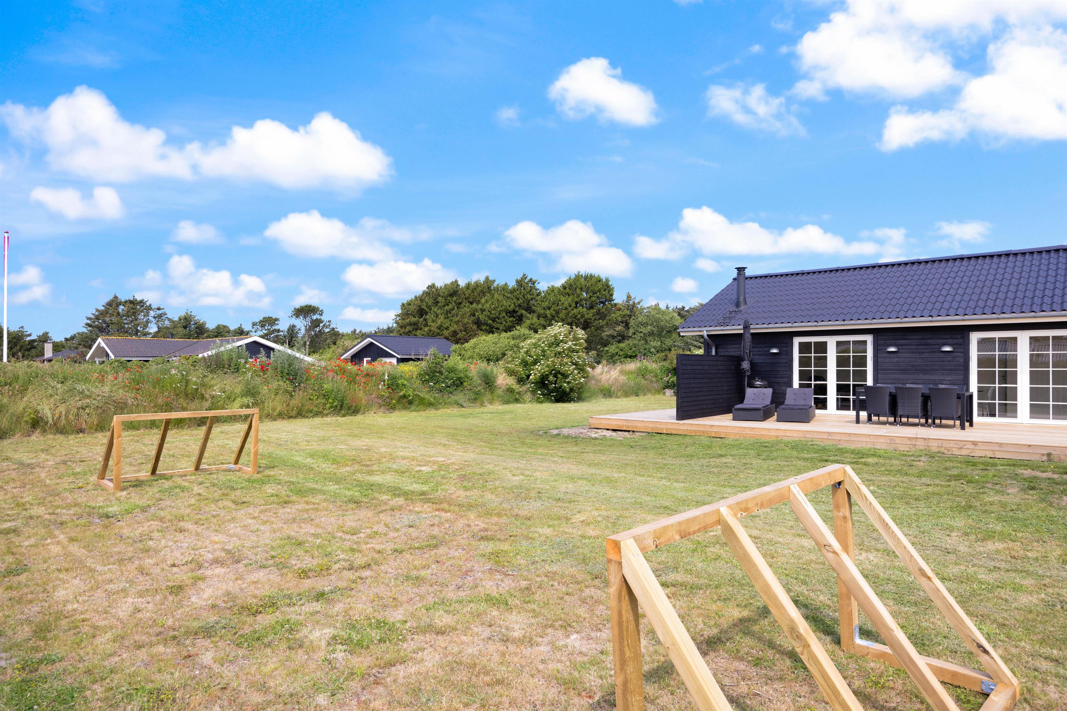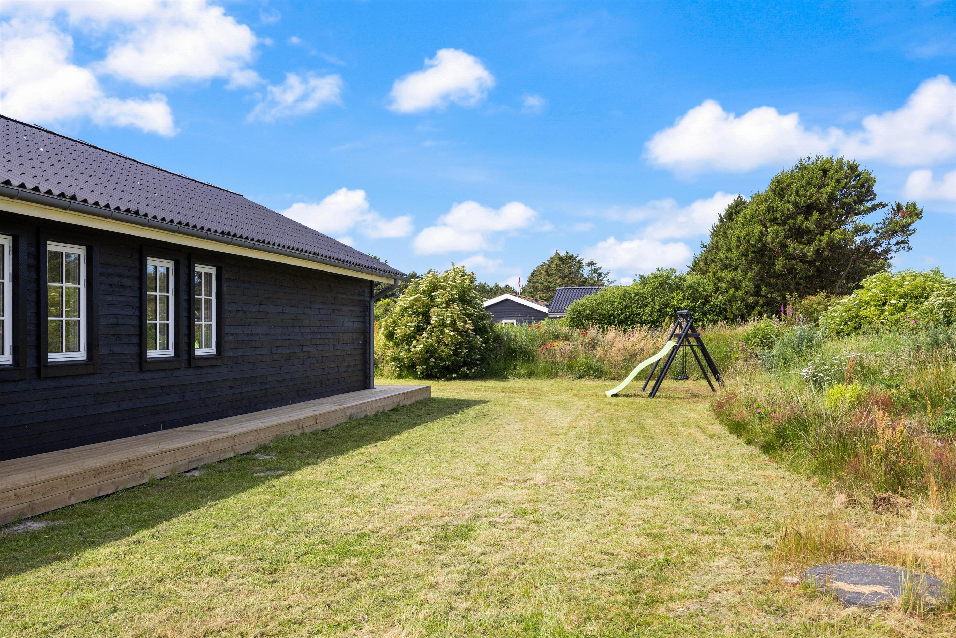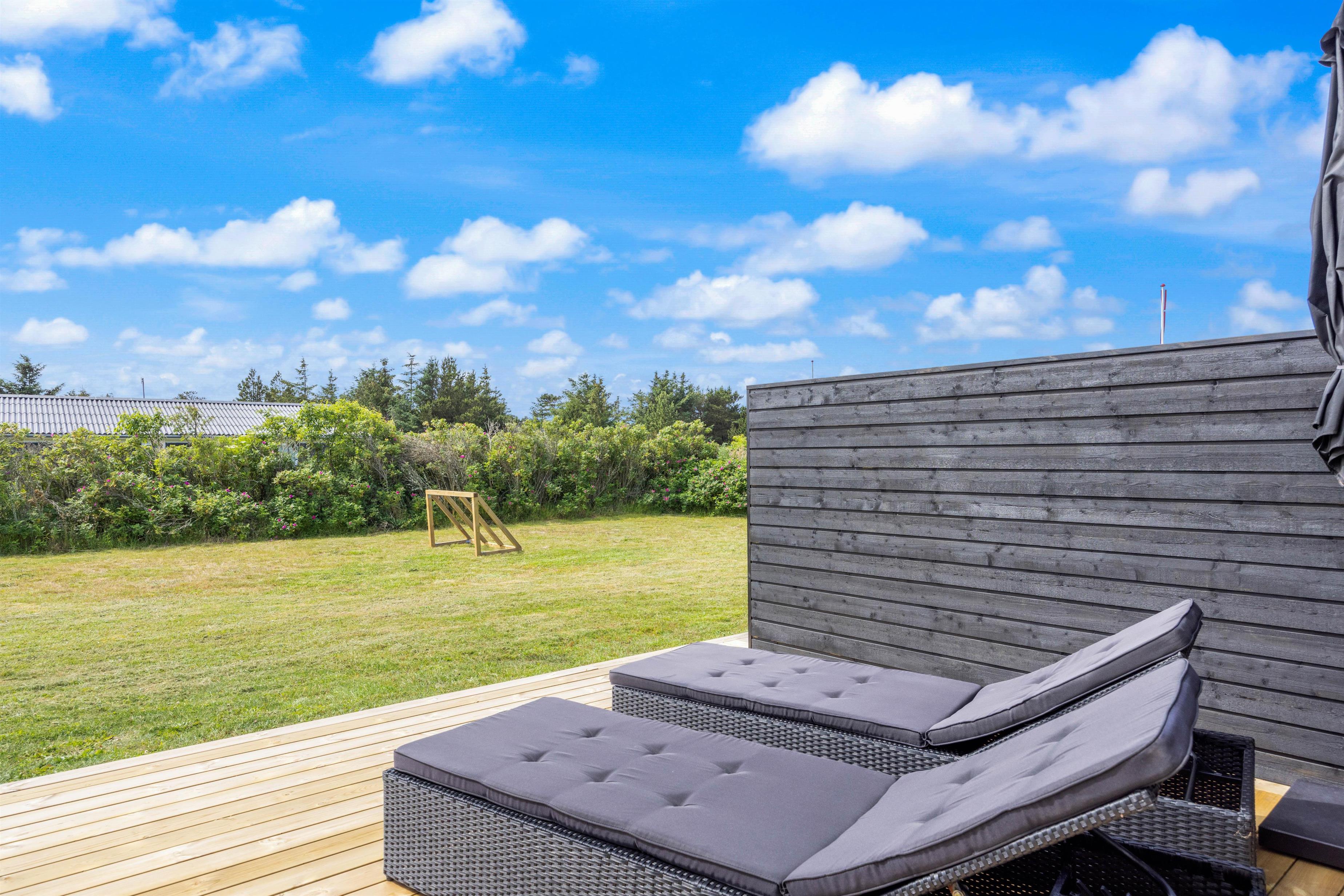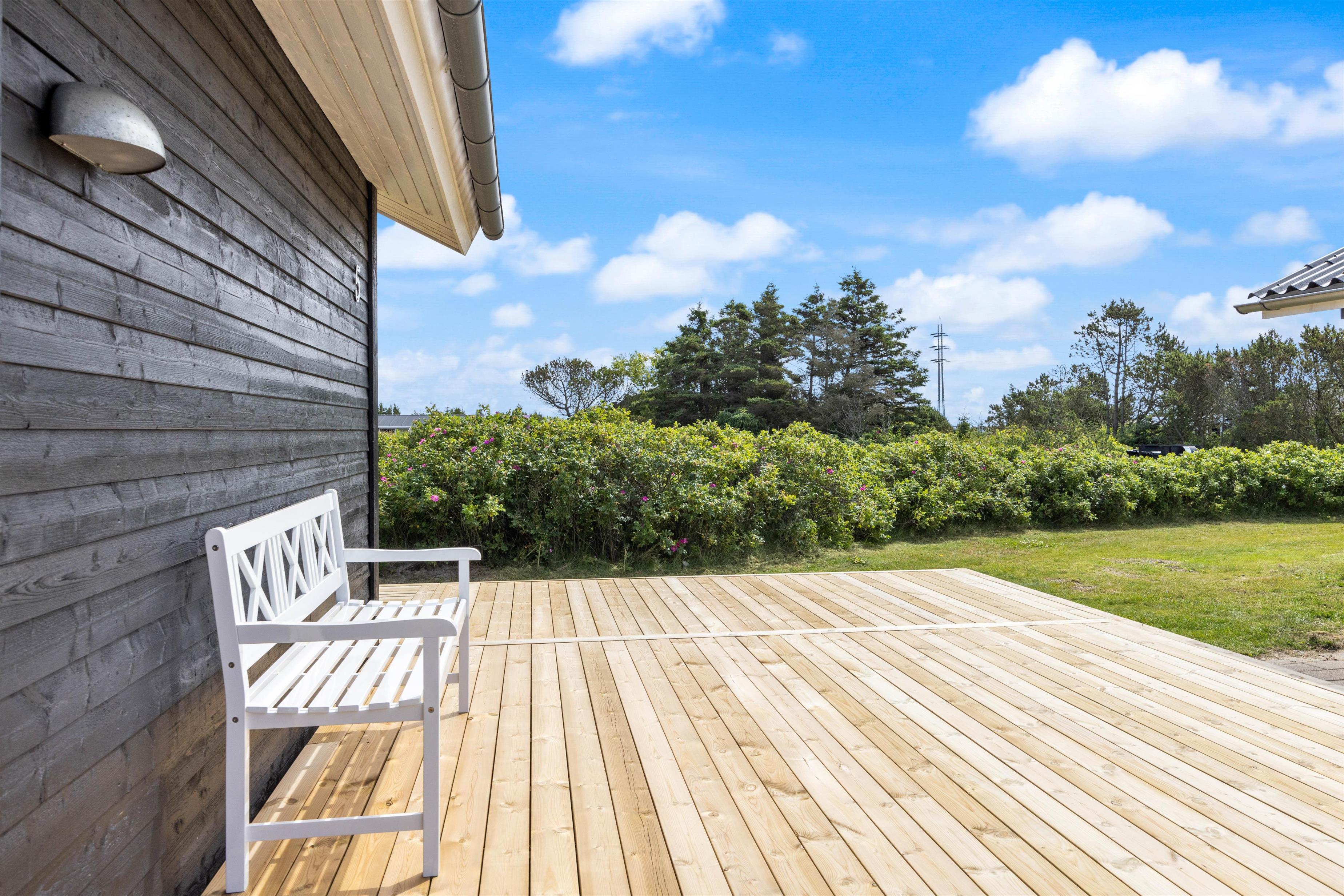 Når vejret byder op til det, kan I sætte jer ud på terrassen med en god bog og nyde den dejlige vesterhavsluft. Den åbne terrasse med havemøbler og en grill giver jer også fantastiske muligheder for at nyde måltiderne udendørs. For børnefamilier er der en gynge i haven, hvor de mindste kan lege og have det sjovt.