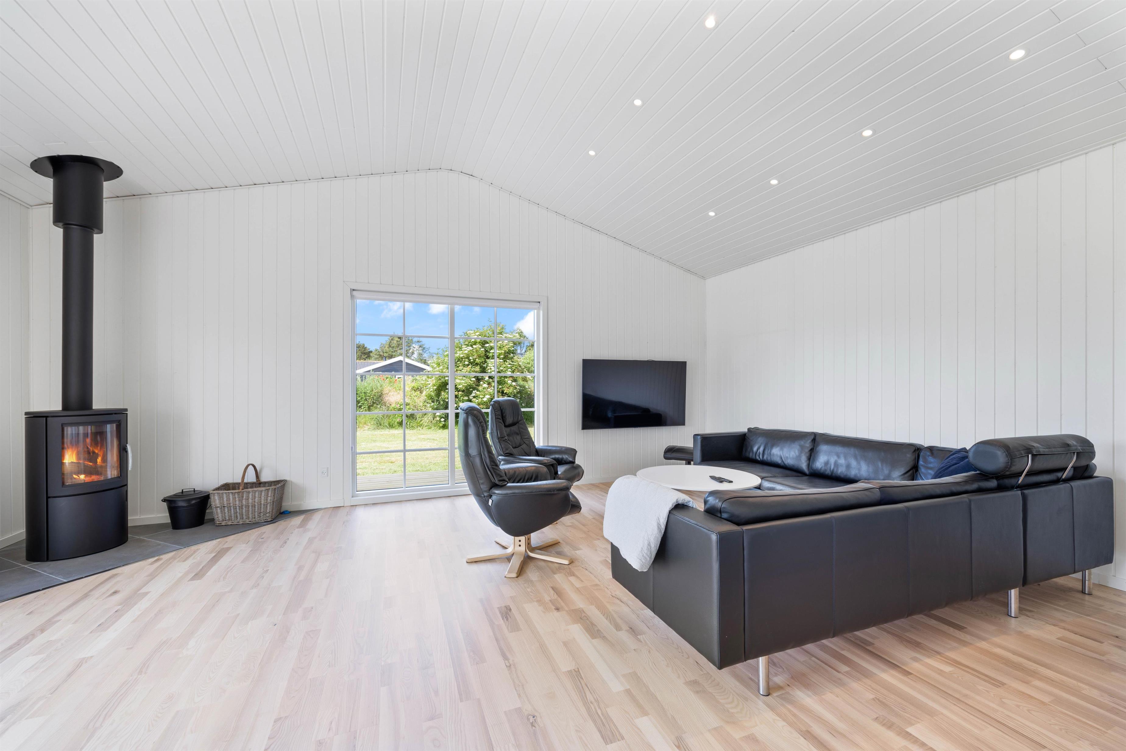 Efter en dejlig dag kan I læne jer tilbage i sofaen og nyde den dejlige varme fra brændeovnen. Sommerhuset har også en luft til luft varmepumpe, der sikrer en behagelig temperatur året rundt.