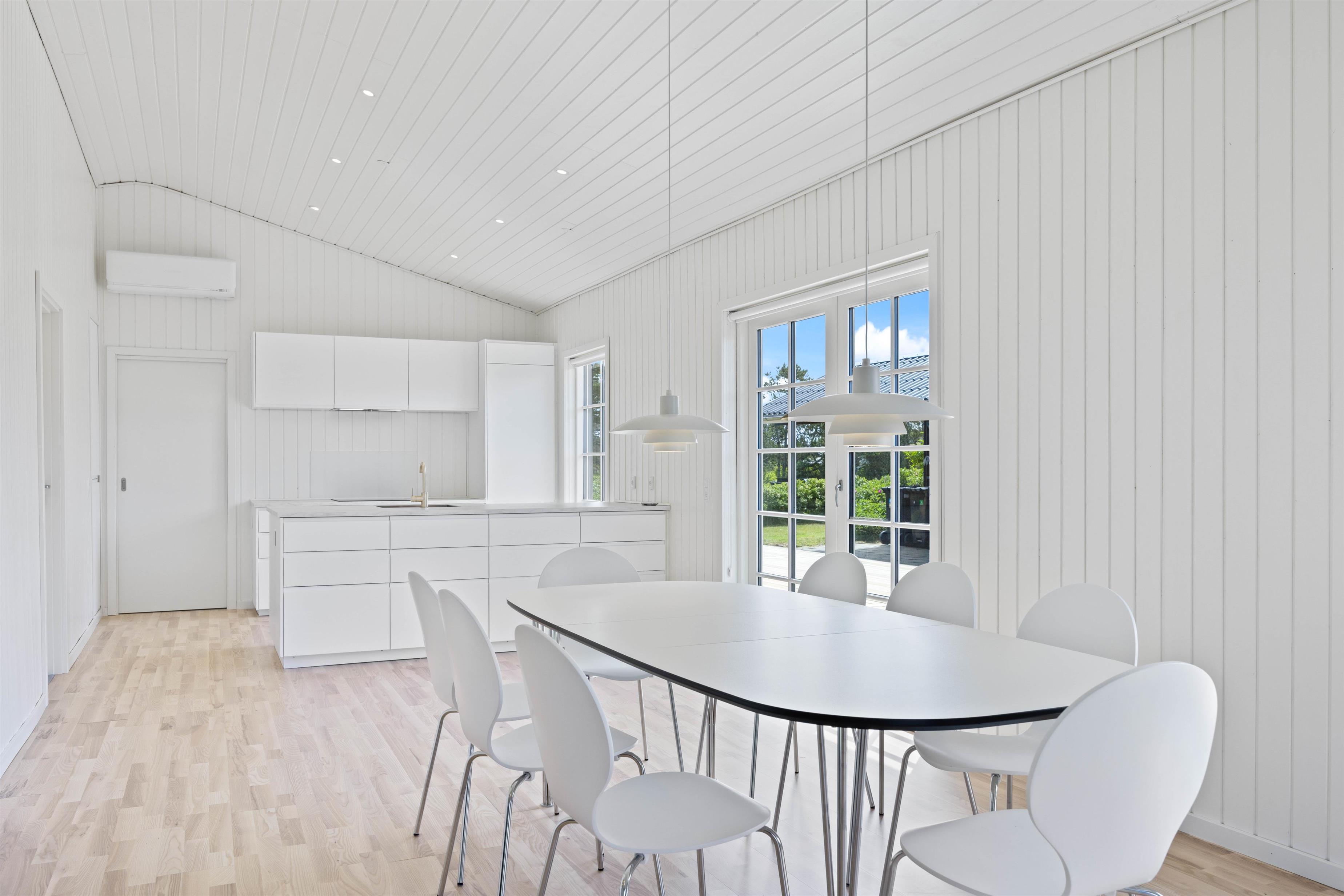 I entreen finder I en tørretumbler og en vaskemaskine, som gør det nemt at holde tøj og håndklæder rene under opholdet. Det lyse og rummelige køkken er udstyret med en opvaskemaskine, som gør det nemt at rydde op efter måltiderne.