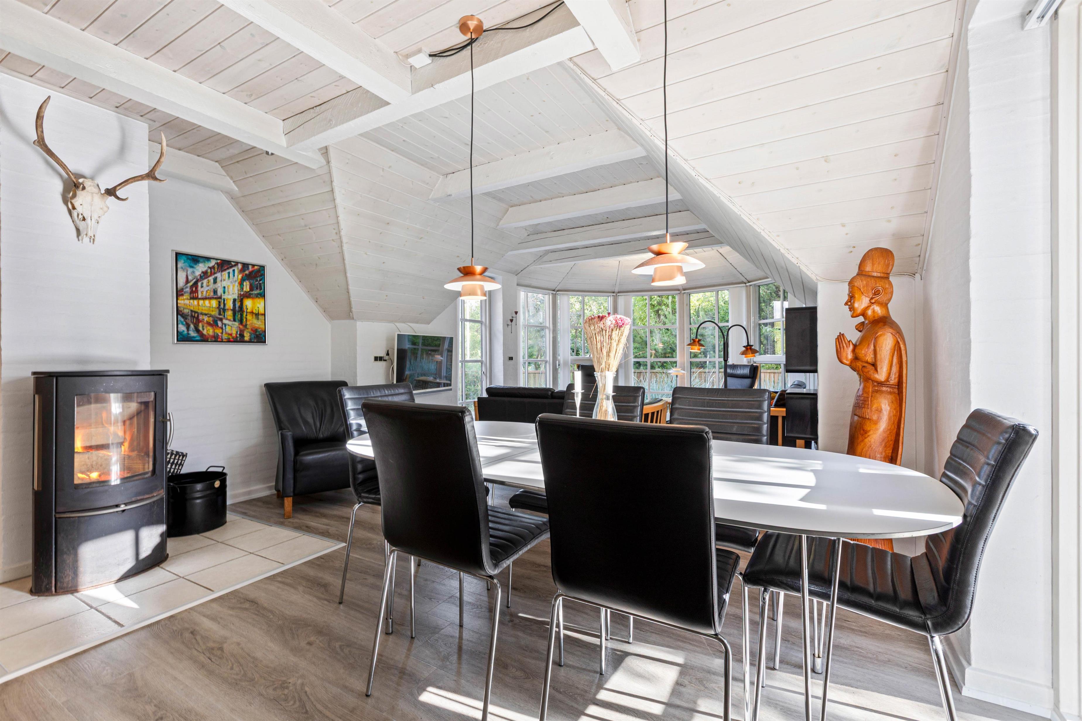 Feriehuset har en flot, åben terrasse med havemøbler, liggestole og grill. Terrassen ligger ud til et flot, naturskønt område. Her er der masser af plads til kvalitetstid med børnene og rum til afslapning med en god bog. Den omkringliggende hede er perfekt til lange vandreture med familien og hunden.