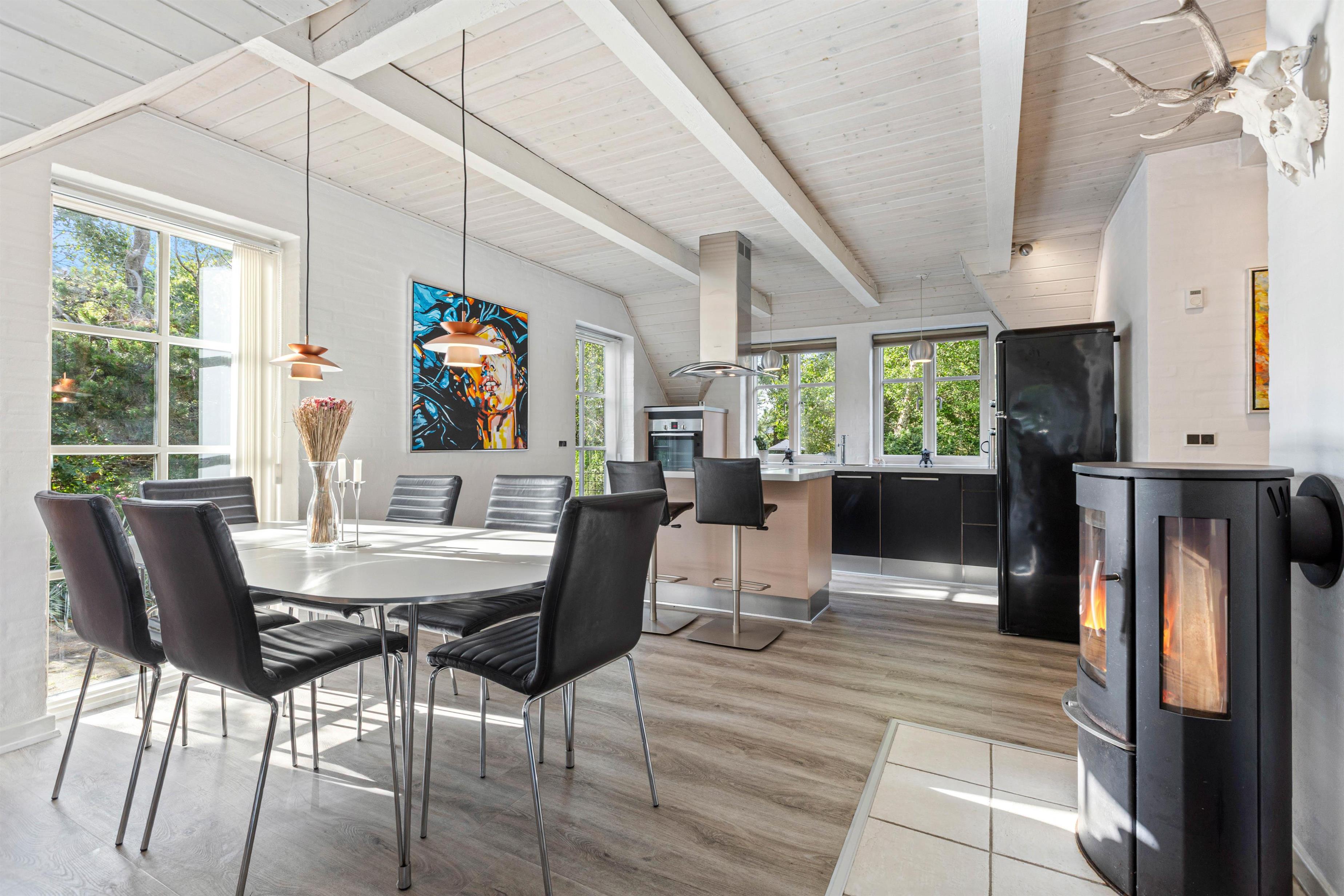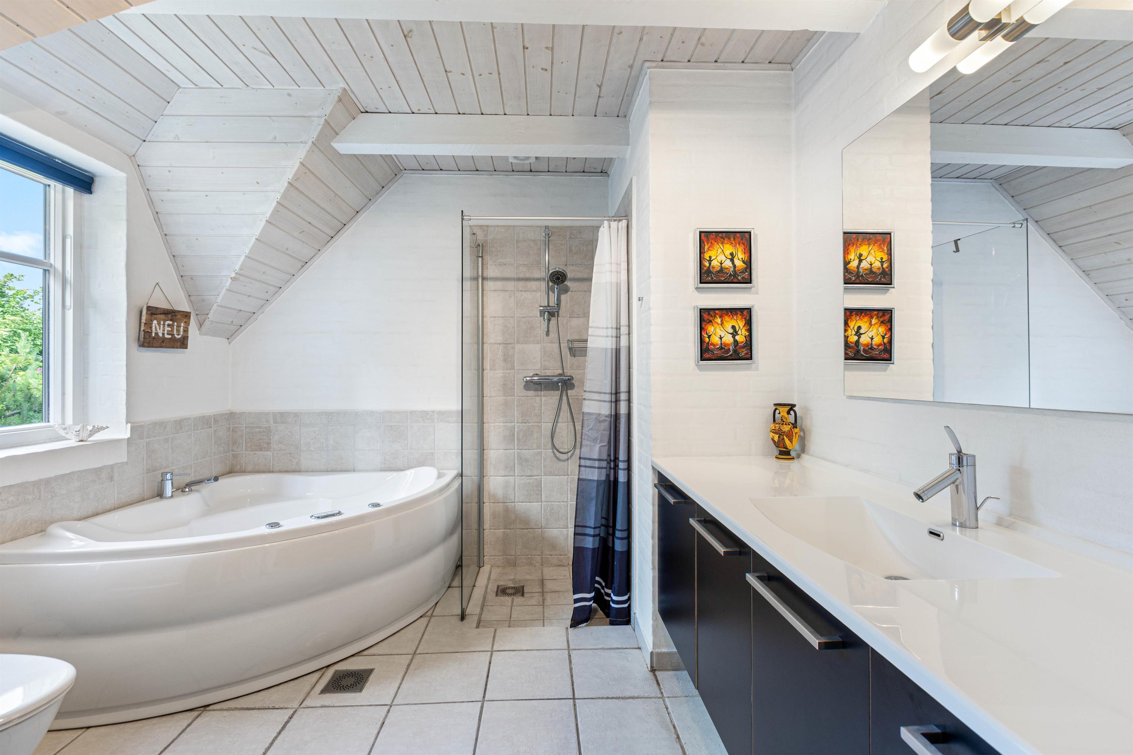 Feriehuset fremstår flot og moderne. Huset har både spa, sauna, vaskemaskine og tørretumbler. Derudover er det flotte køkken udstyret med både opvaskemaskine, køleskab med frostboks samt fryser. Altsammen noget, der er med til at gøre feriens praktiske gøremål så nemme for dig som muligt. Ferihuset er med sit flotte stråtag holdt i samme klassiske stil som klitgårdene, der er karakteristiske for området. Det giver huset en dejlig feriestemning, så du kan slappe af og nyde ferien i gode, rolige omgivelser.
