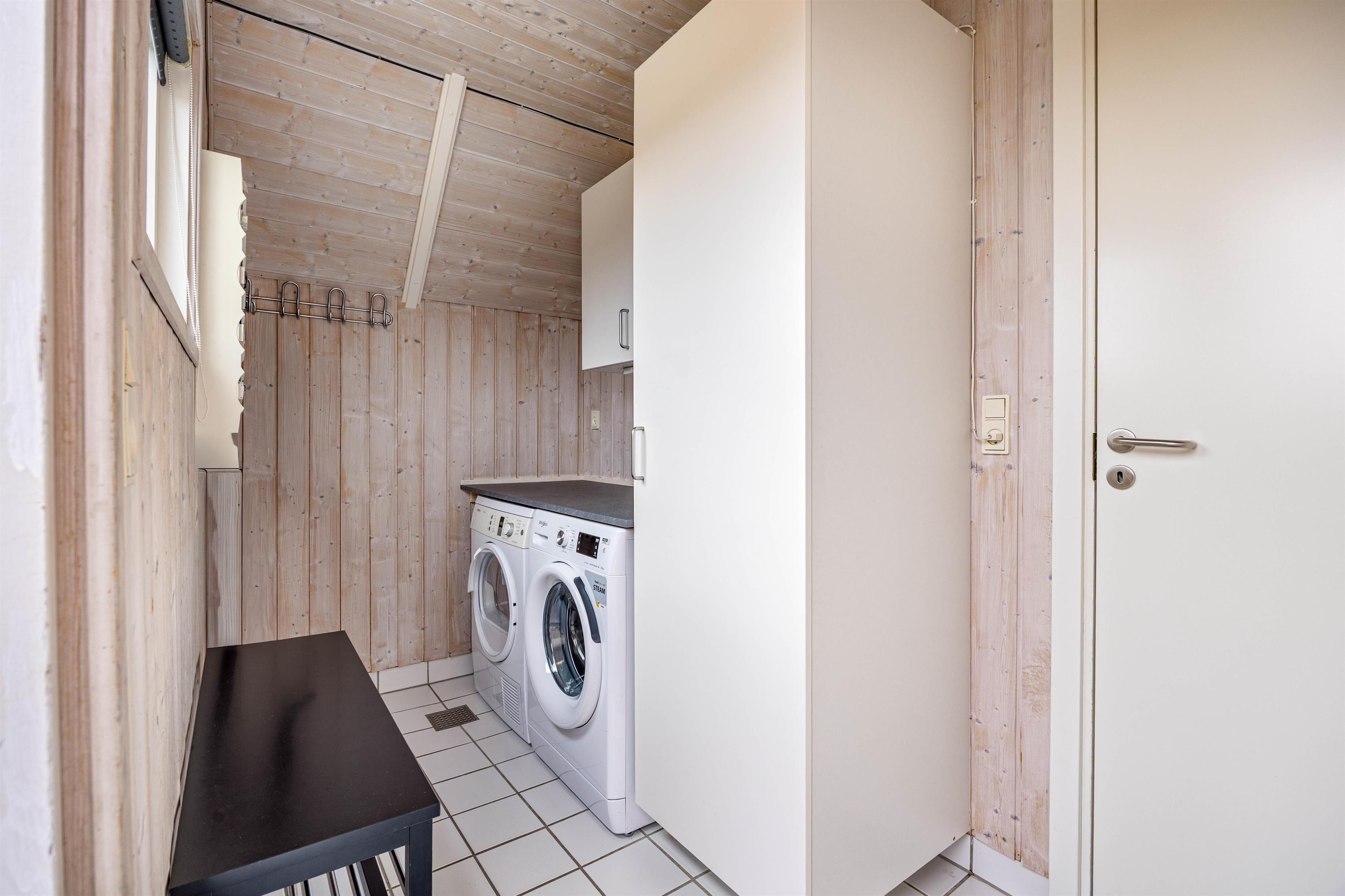 I baggangen finder I plads til garderoben. Her er der desuden både vaskemaskine og tørretumbler, hvilket er perfekt især til strandferien med børn, hvor der nemt kan bruges en hel taske med badehåndklæder hver dag. Med opvaskemaskine i køkkenet og fiberbredbånd er der i dette hyggelige feriedomicil tænkt på det hele.