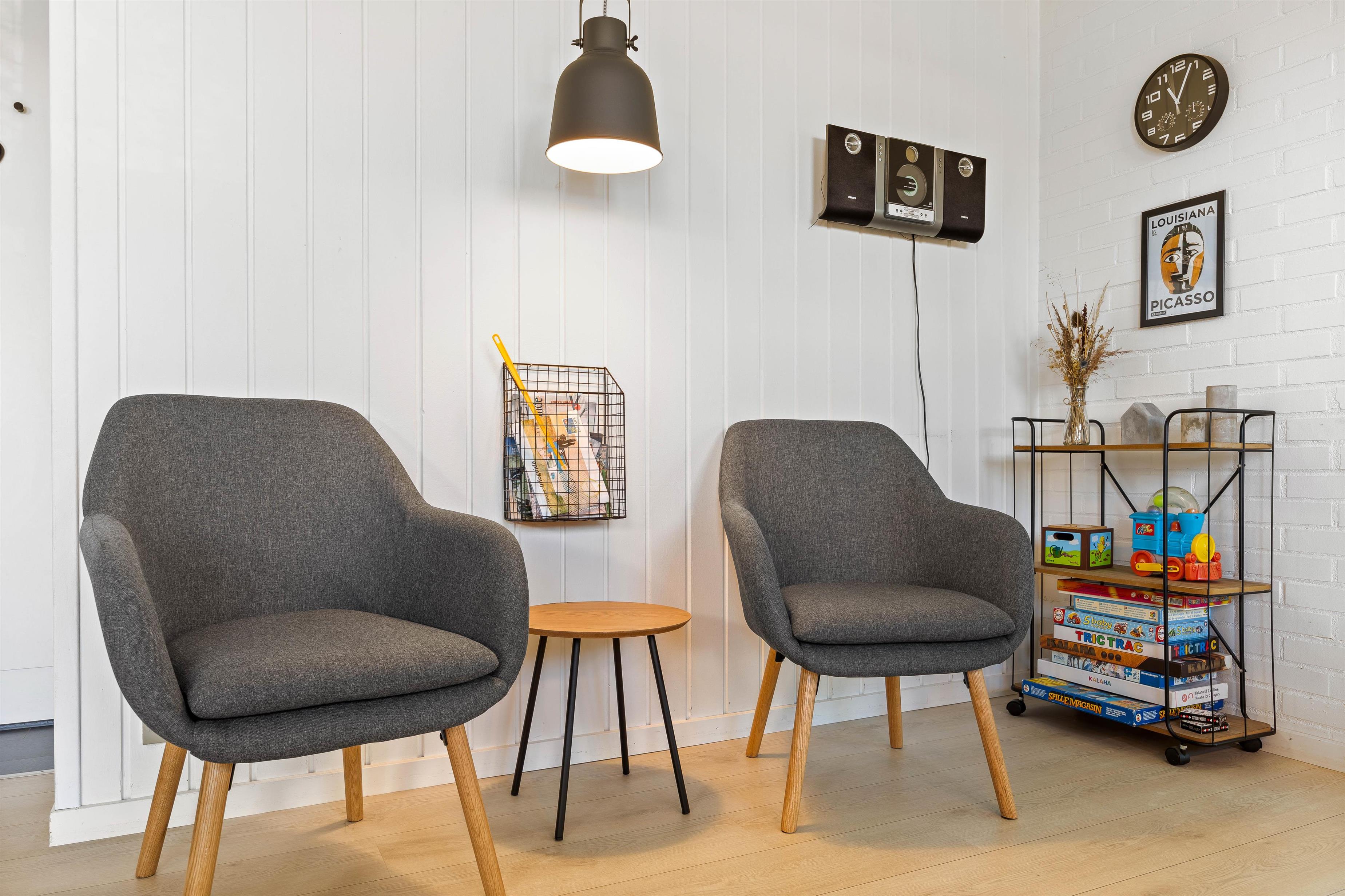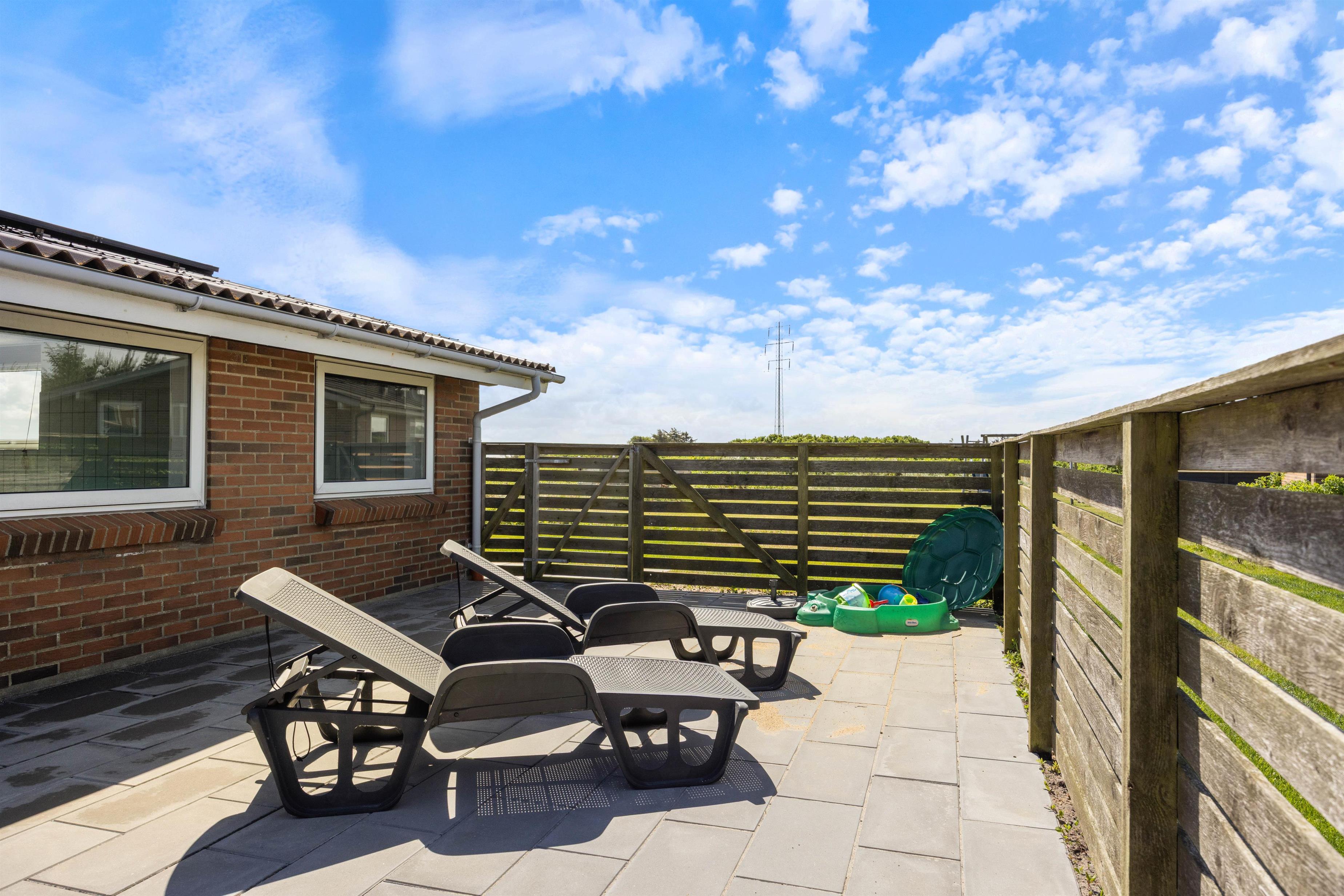 Fra stuen er der adgang til en afskærmet terrasse, udstyret med havemøbler, liggestole og grill. Det giver jer mulighed for på de lune sommeraftener at nyde et glas vin samt en skøn middag fra grillen.