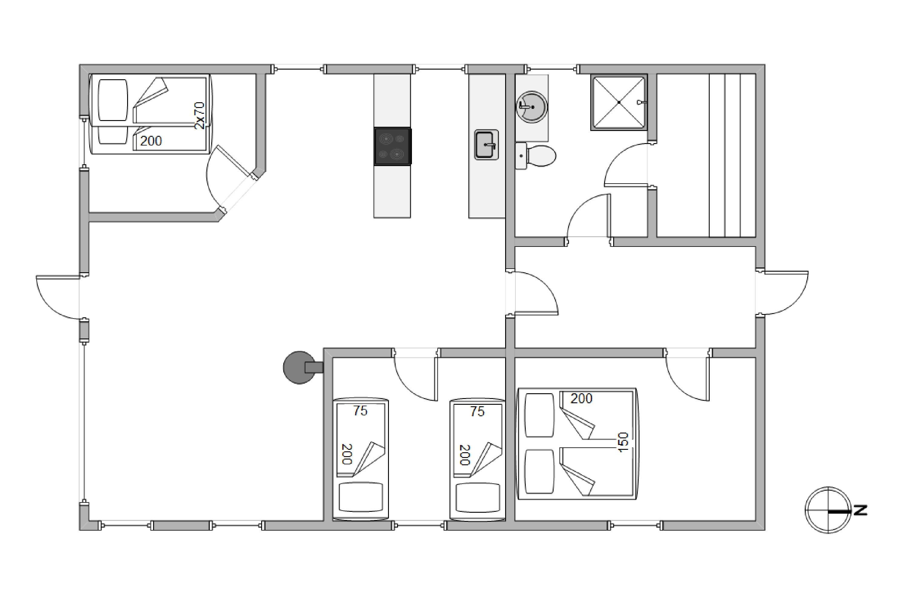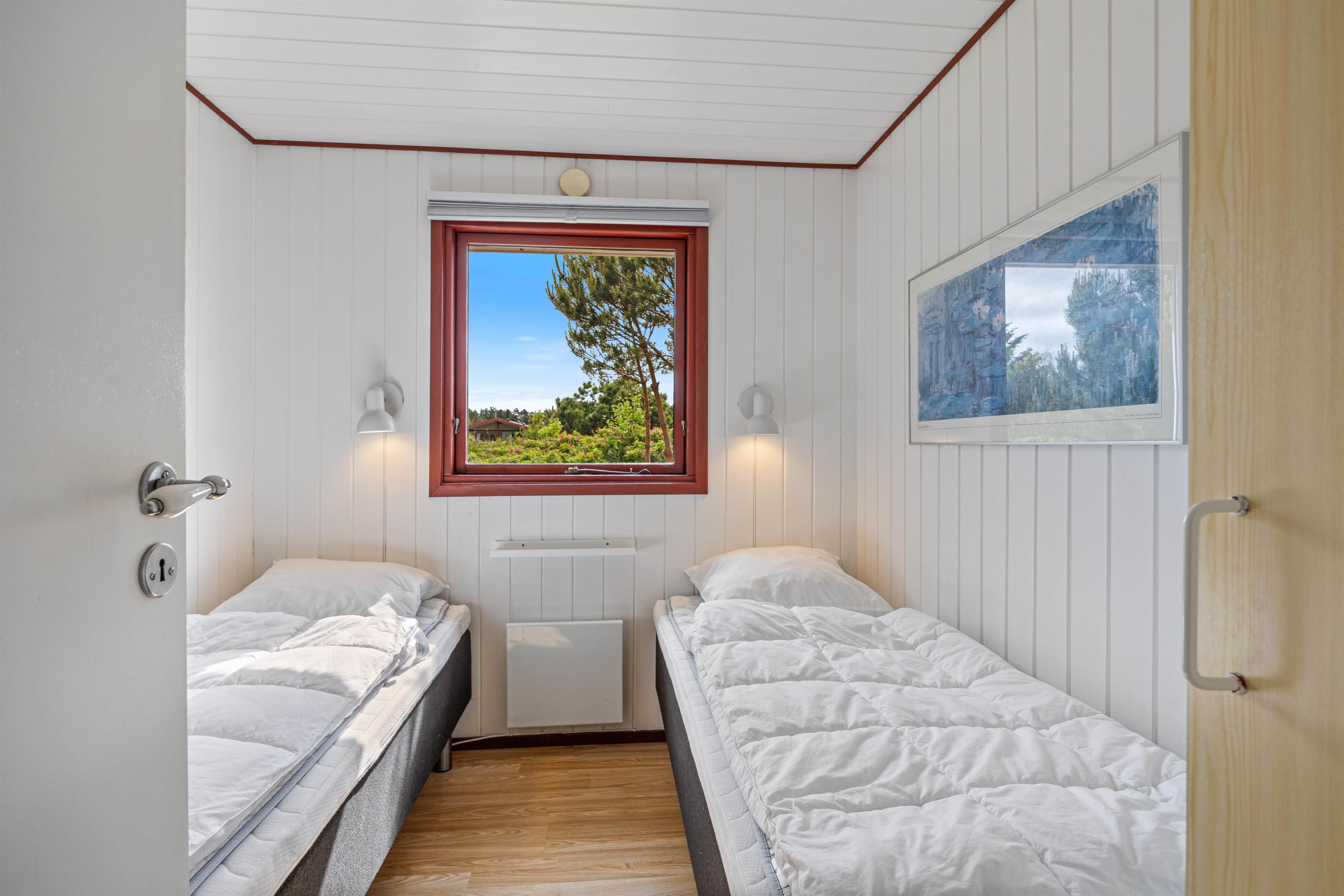 Sommerhuset har 3 værelser, 1 med en dobbeltseng, et med 2 enkeltsenge og det sidste med en køjeseng. Derudover byder sommerhuset på en sauna, hvilket giver en lækker wellness fornemmelse til ferien. Sommerhuset er med sine 57 m2 utrolig hyggelig og intim, da man her kommer hinanden ved på en måde, man måske ikke er vant til.