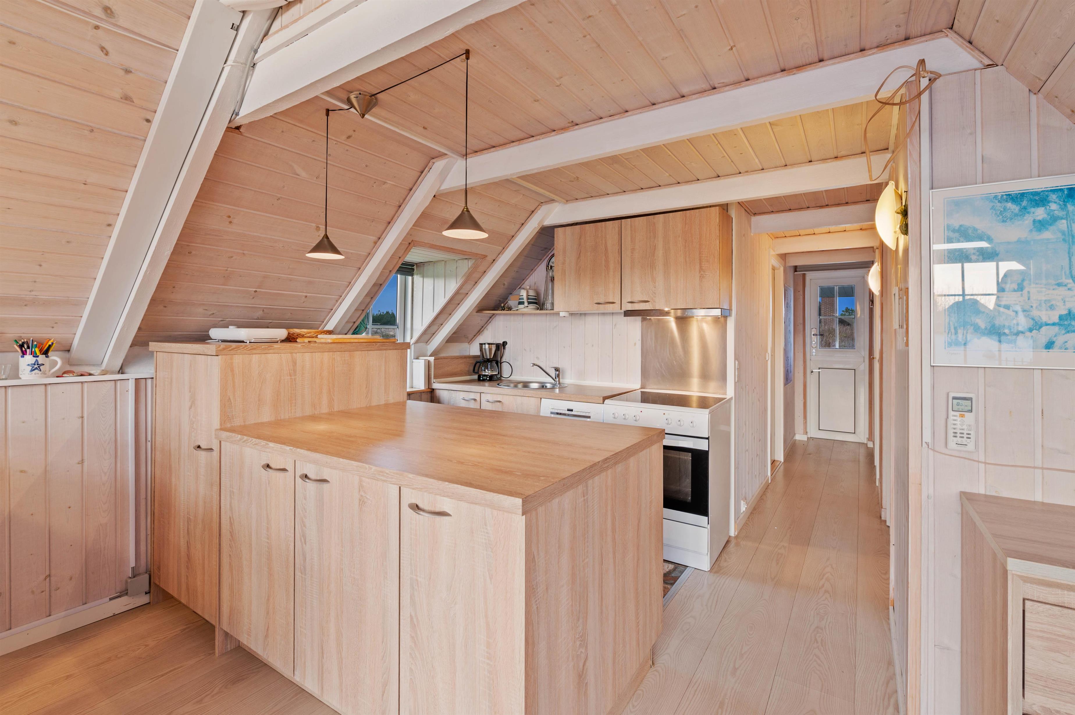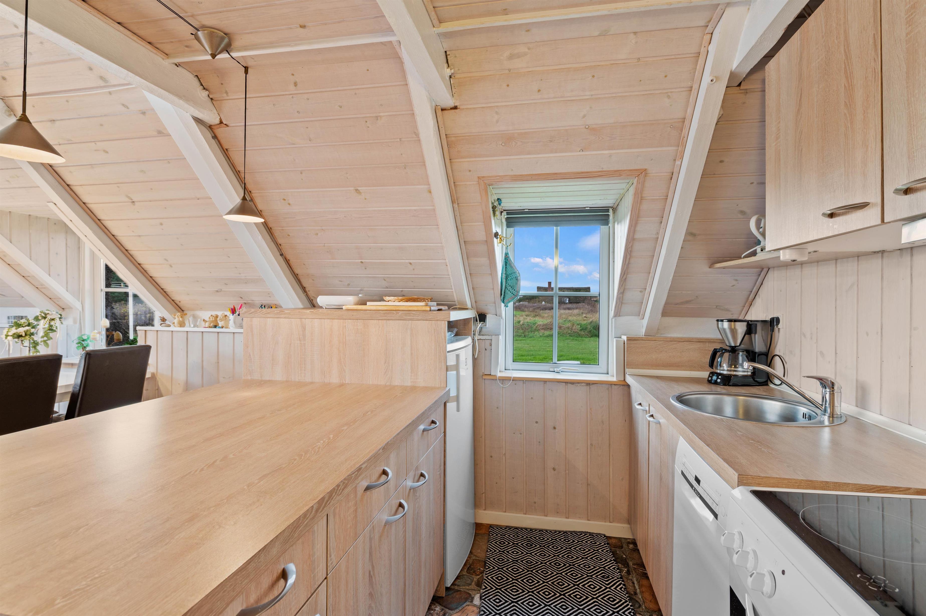 Lyse træfarver, skarpe kontraster og øje for detaljen - indretningen på Nordsø Ferievej kan hurtigt beskrives. Der er skruet op for charmen i de åbne omgivelser, hvor loftet er åbnet i kip, og solide træbjælker pynter ekstra og giver det sidste touch af klassisk sommerhusstil. Her vil I hurtigt føle jer hjemme.