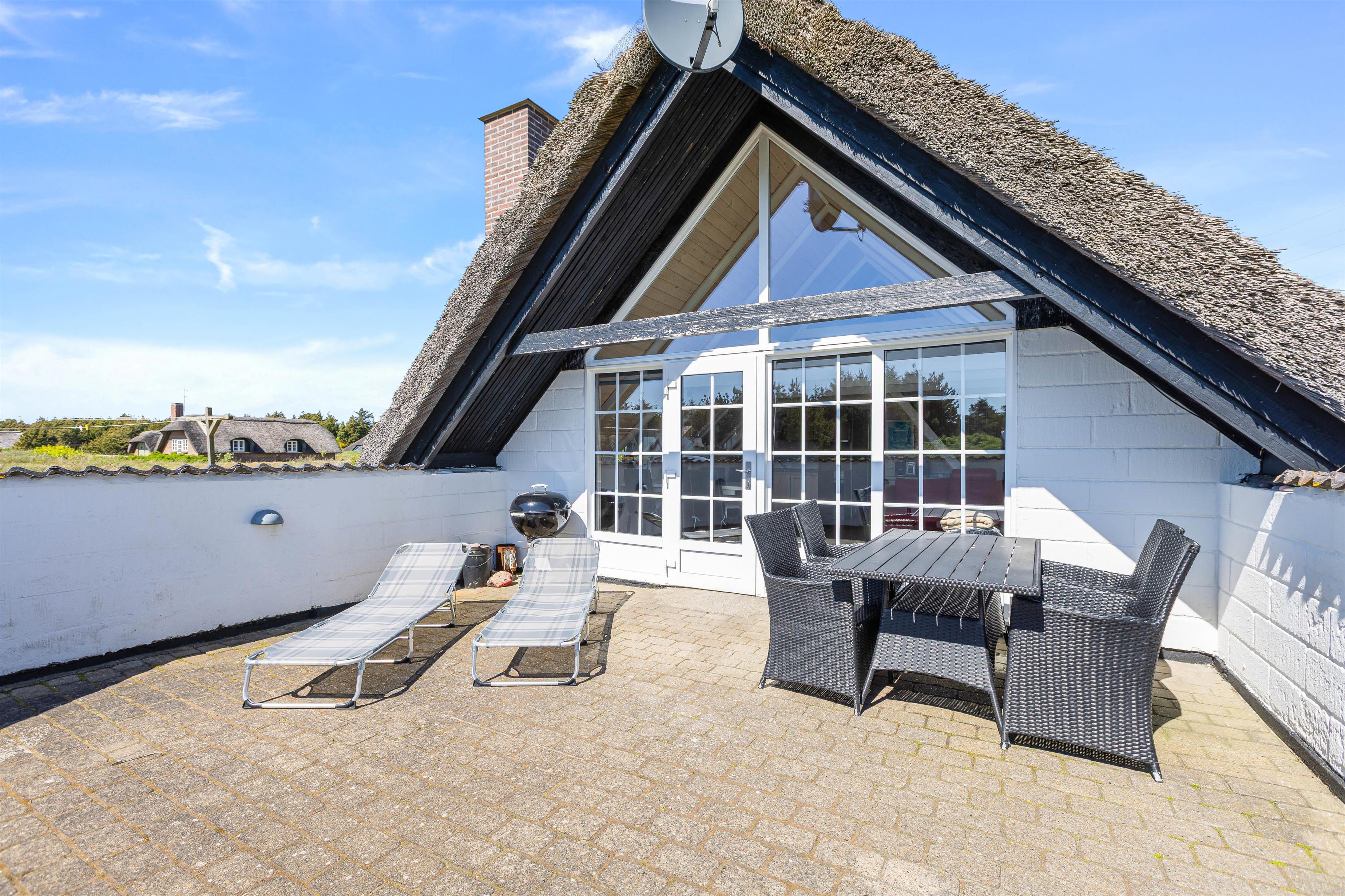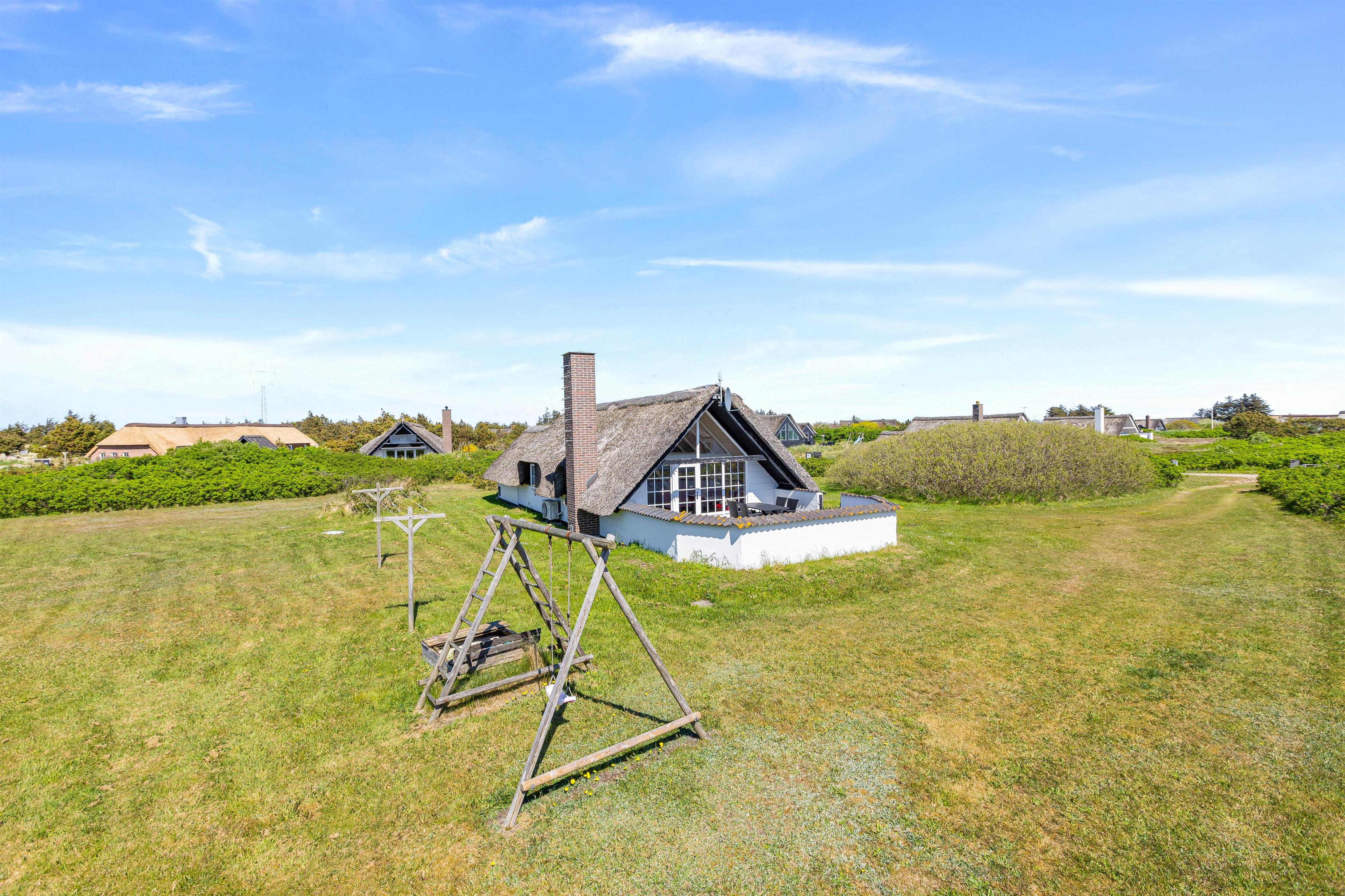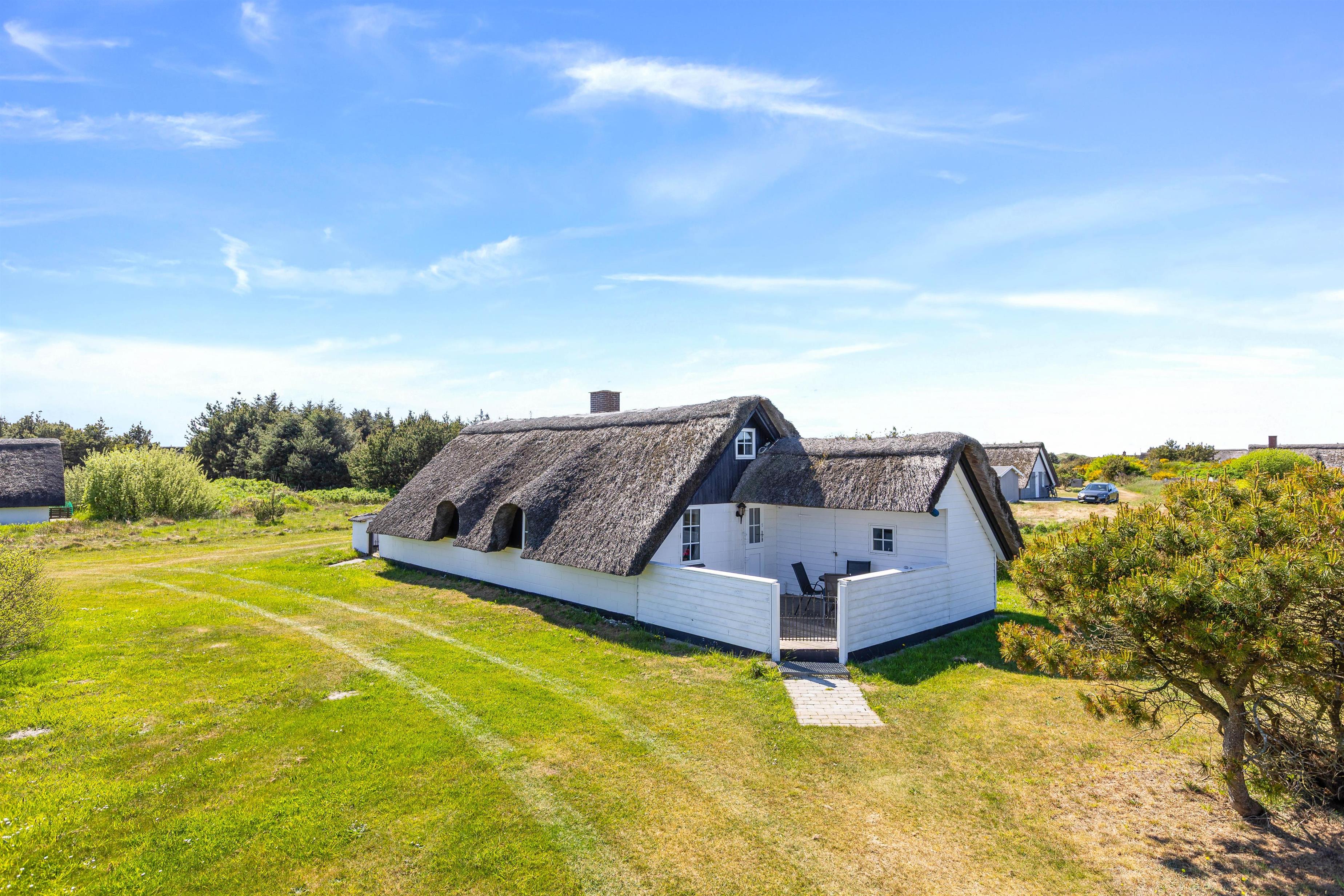 På Nordsø Ferievej 30 er der lagt op til en rigtig hyggelig ferie i det vestjyske. Det stråtækte hus med sin hvide facade og sin store have oser af charme, og indvendigt byder de lyse træfarver jer varmt velkommen. Hund er tilladt, og I finder en ekstra lille wellness-hemmelighed på badeværelset!