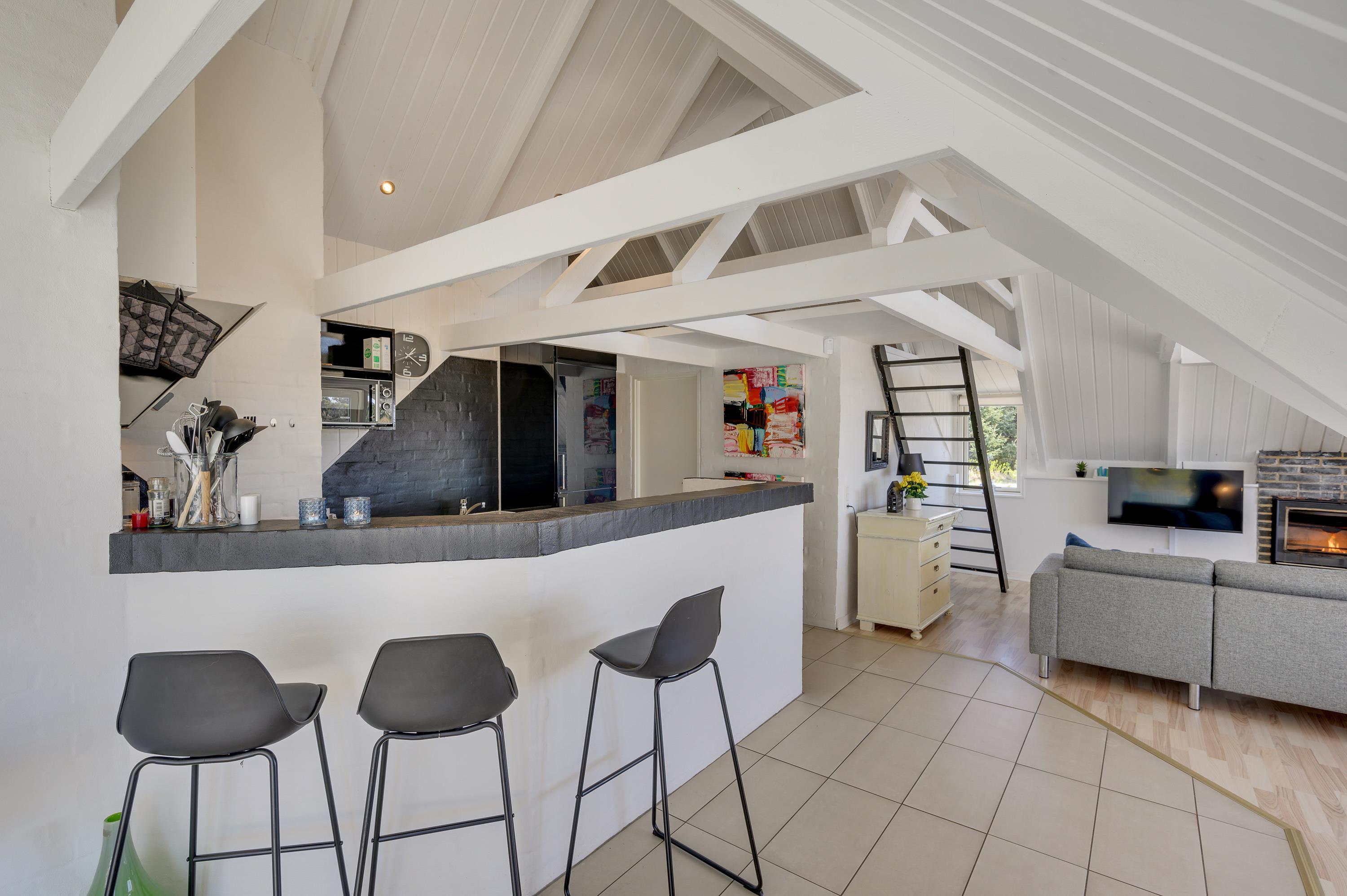 Feriehuset rummer plads til 7 personer fordelt på 4 soverum, hvoraf de 2 har dobbeltsenge. Feriehusets hjerterum er den store, åbne og lyse stue som er integreret med køkkenet og går op i kip. Her findes alle moderne bekvemmeligheder, i form af f.eks. opvaskemaskine og mikroovn, og her kan I tilbringe mange hyggelige timer sammen med fælles madlavning, alt imens I får en drink på barstolene.