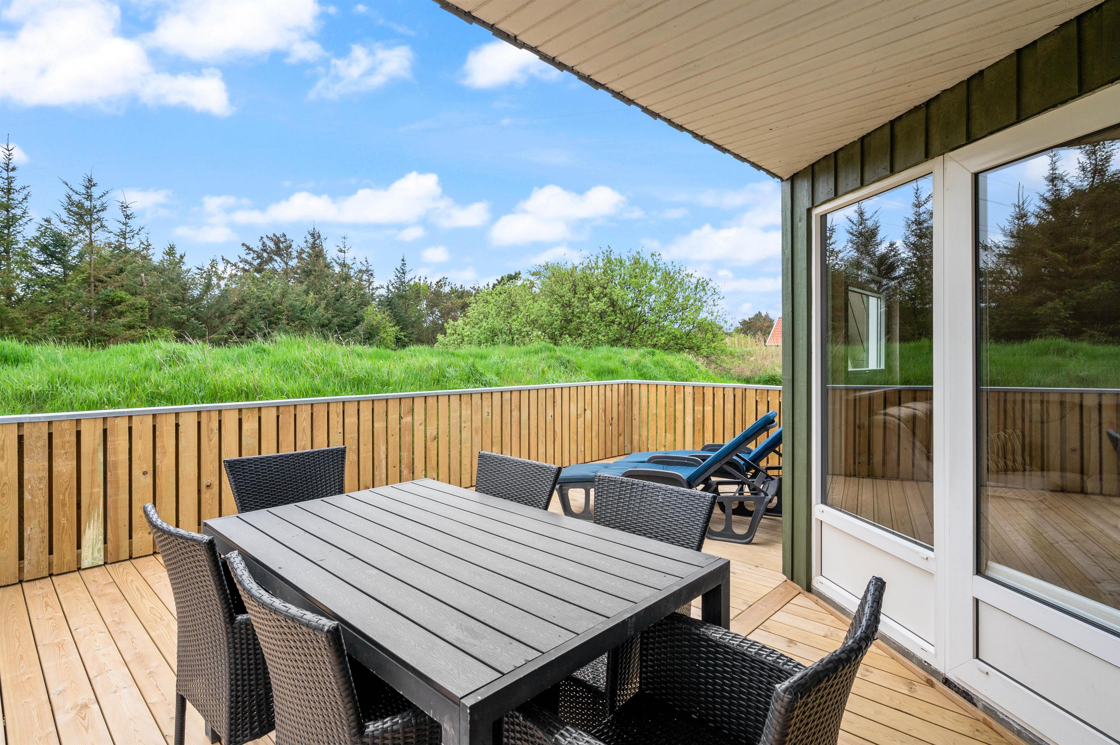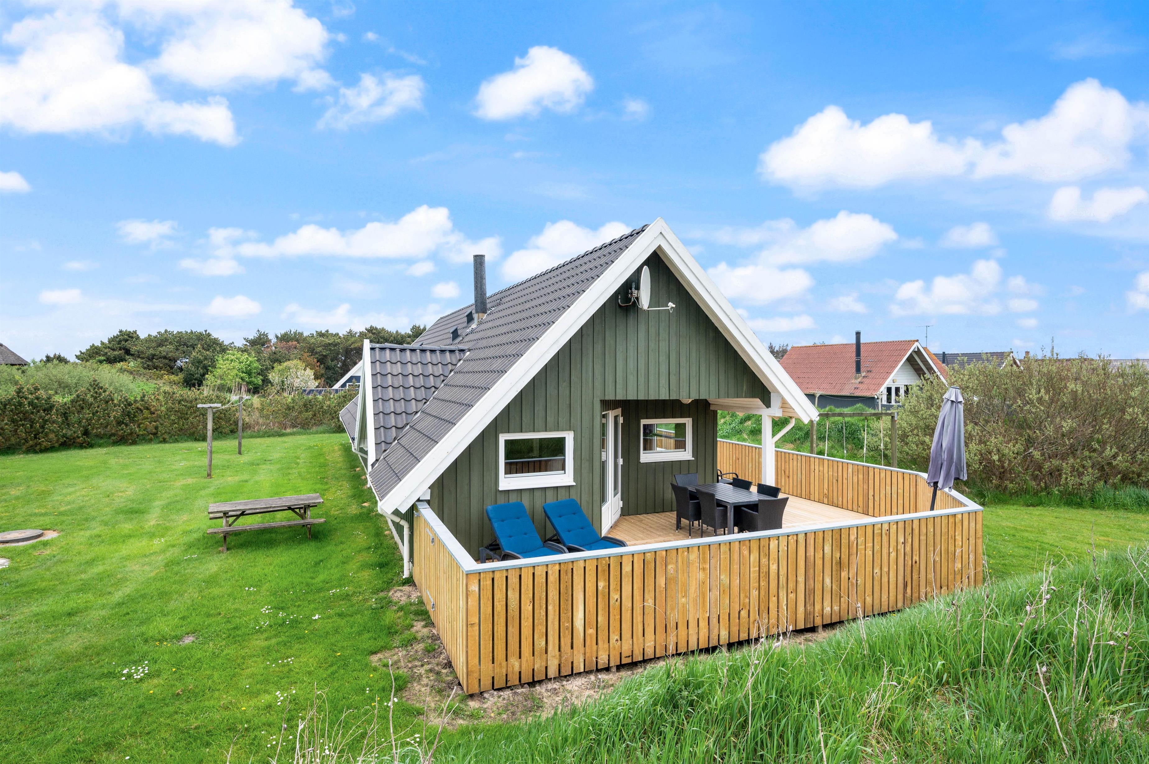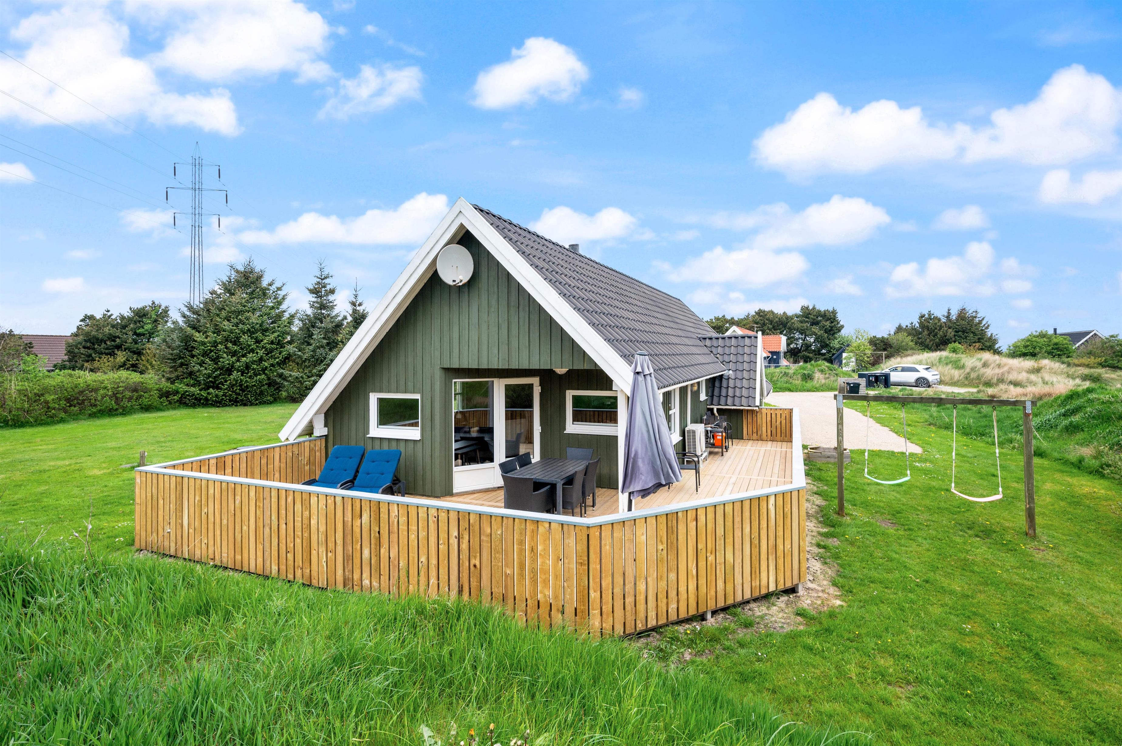 På den lukkede, delvist overdækkede terrasse finder I uden problemer en plads i solen - eller i skyggen. Der er både havemøbler, liggestole og grill ved huset, så der står intet i vejen for en dejlig dag i den friske luft, toppet af med en god middag på grillen. Den store græsplæne indbyder til leg og boldspil, og de yngste feriegæster kan glæde sig over gyngestativet og sandkassen.