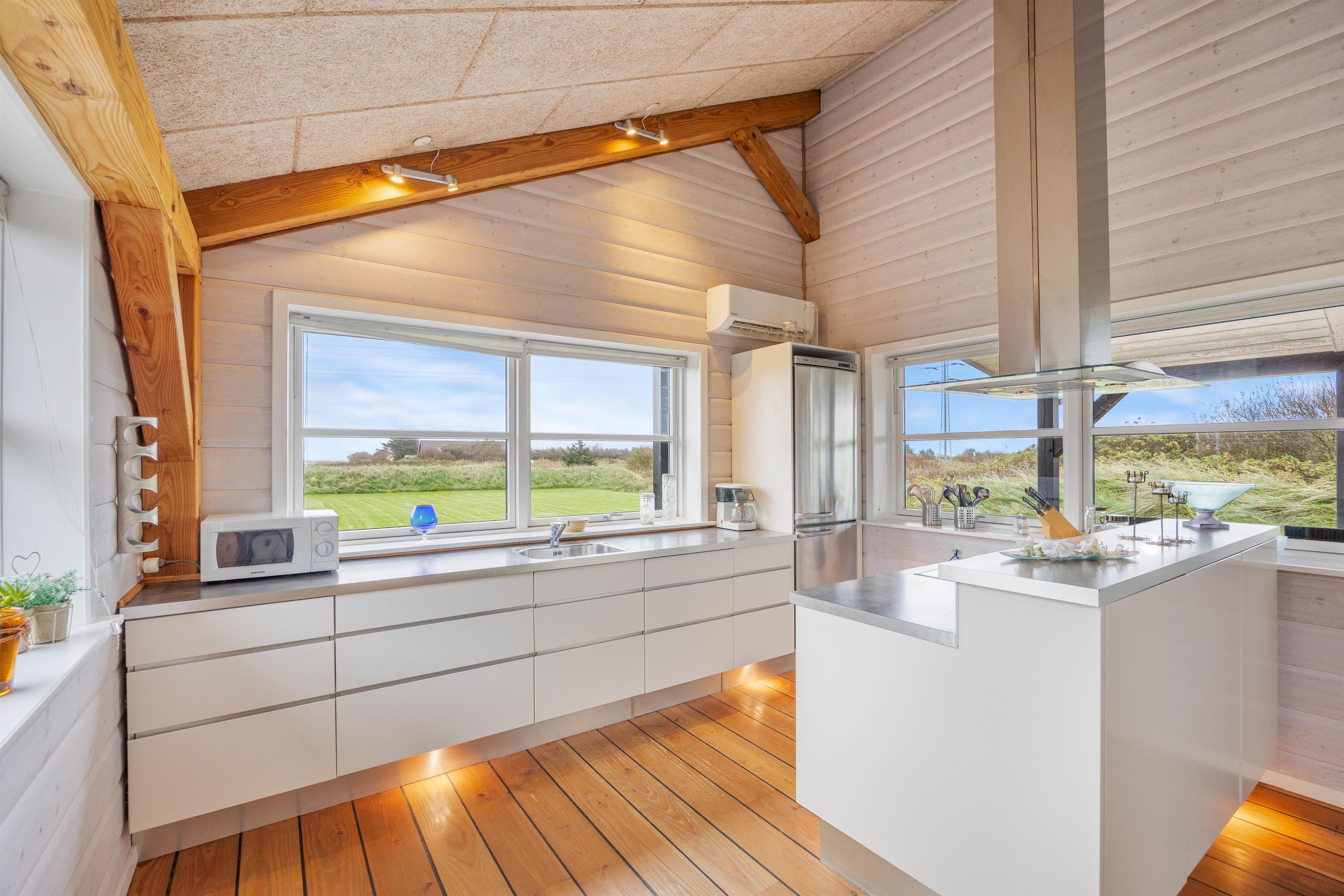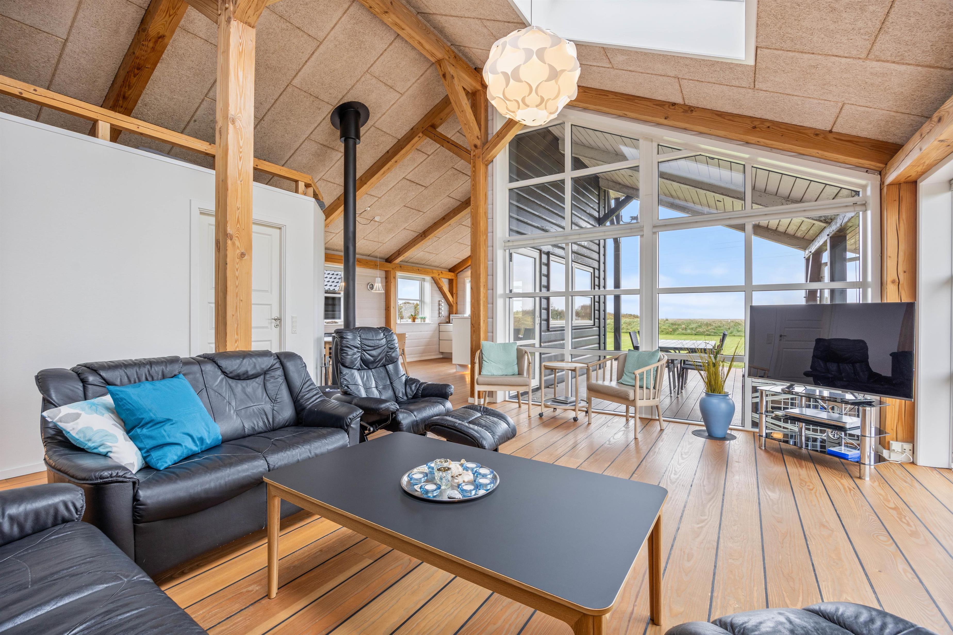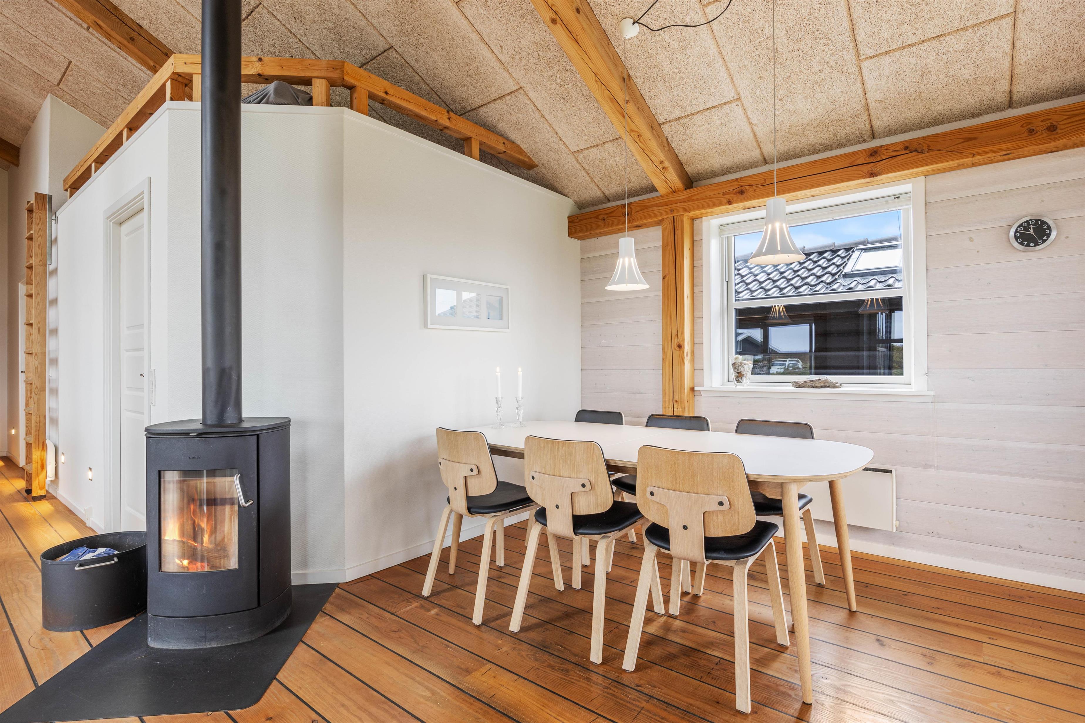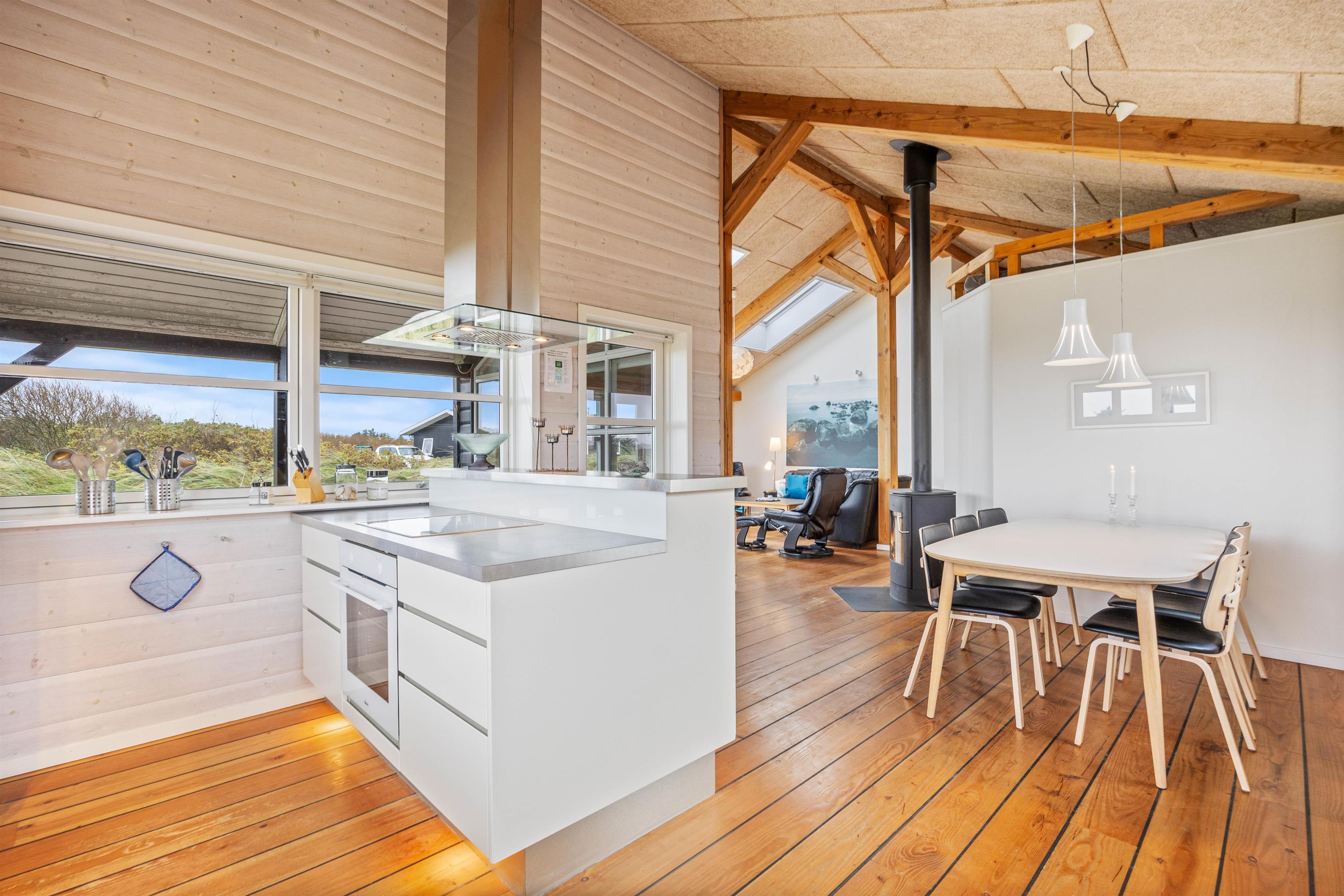 Sommerhuset på Vestklitvej 2 D rummer plads til 6 personer og byder på en moderne indretning med flere feriehighlights. Stuen danner sammen med det moderne køkken sommerhusets hjerte og lægger op til en masse skønne feriestunder med den knitrende brændeovn i baggrunden. Fra sofaen har I god udsigt til den omkringliggende natur gennem de store vinduespartier.