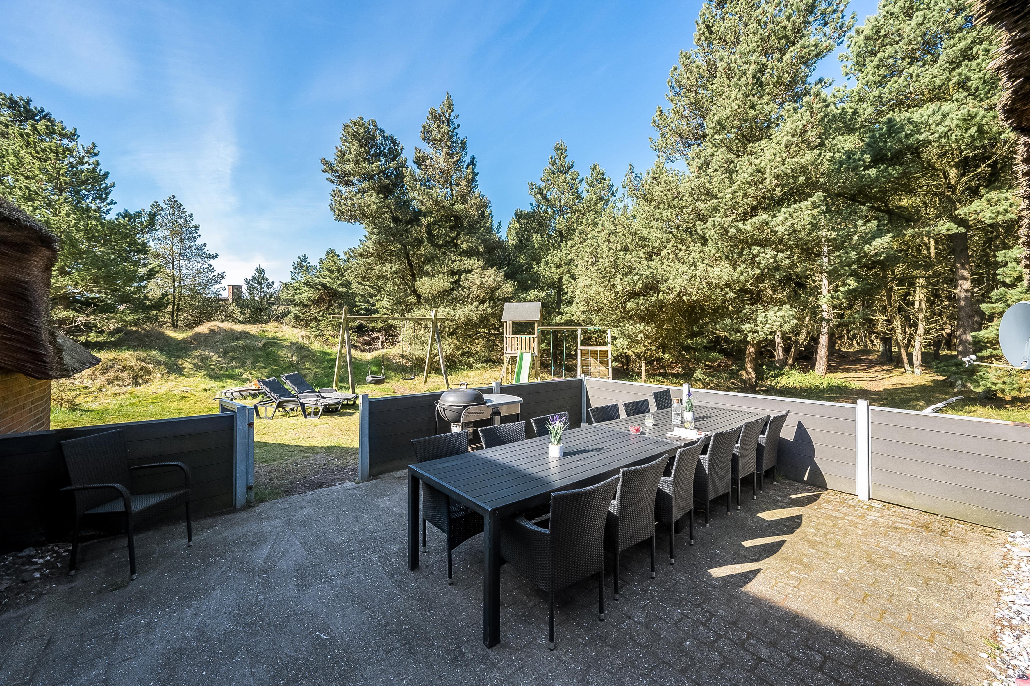Nyd de solrige dage på den lukkede terrasse, hvor du kan grille lækre retter og slappe af, mens børnene leger i sandkassen eller gyngen. Med lade stik til elbil, kan du nemt oplade din bil, mens du nyder din ferie. Husk hertil at medbringe et lade kabel.