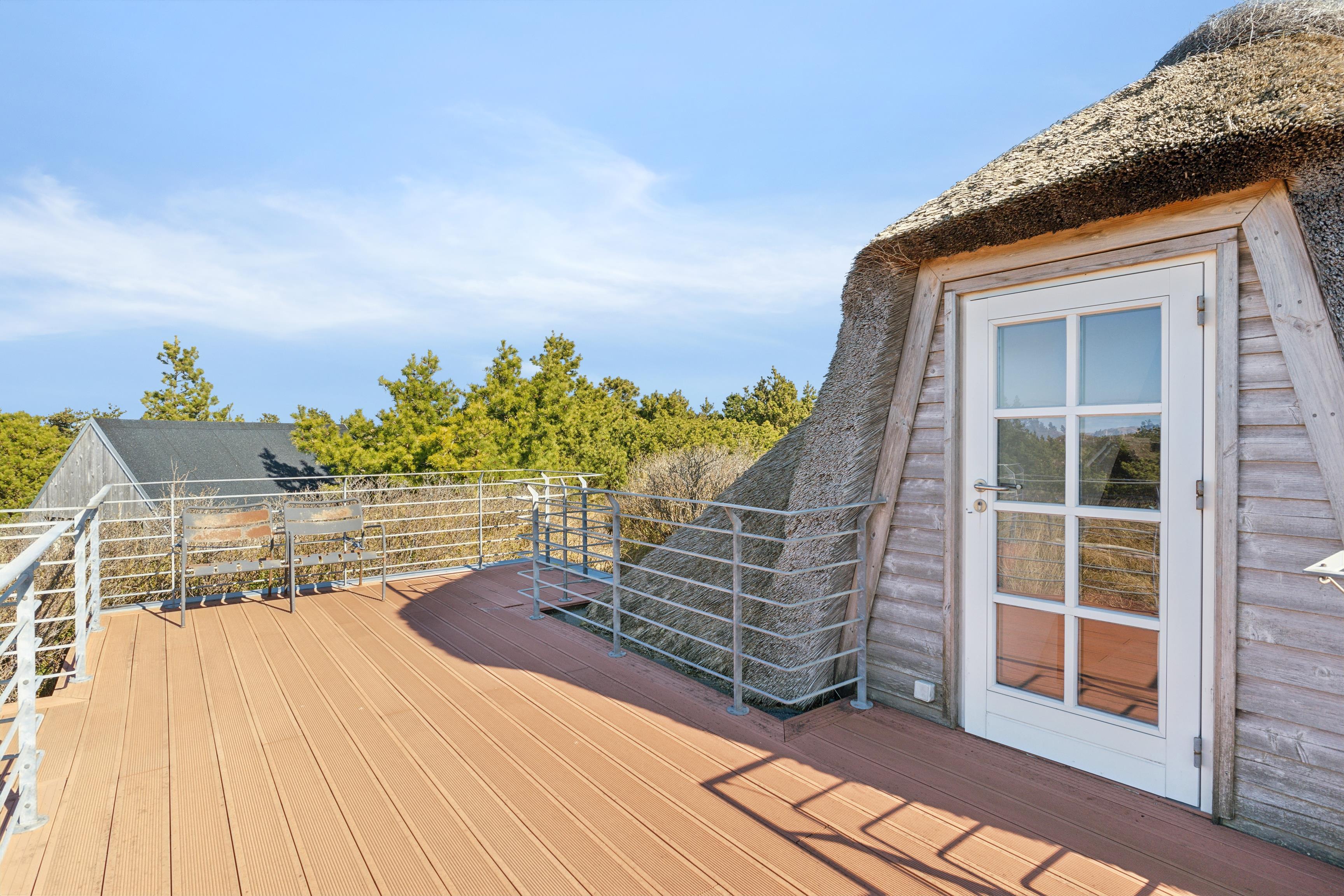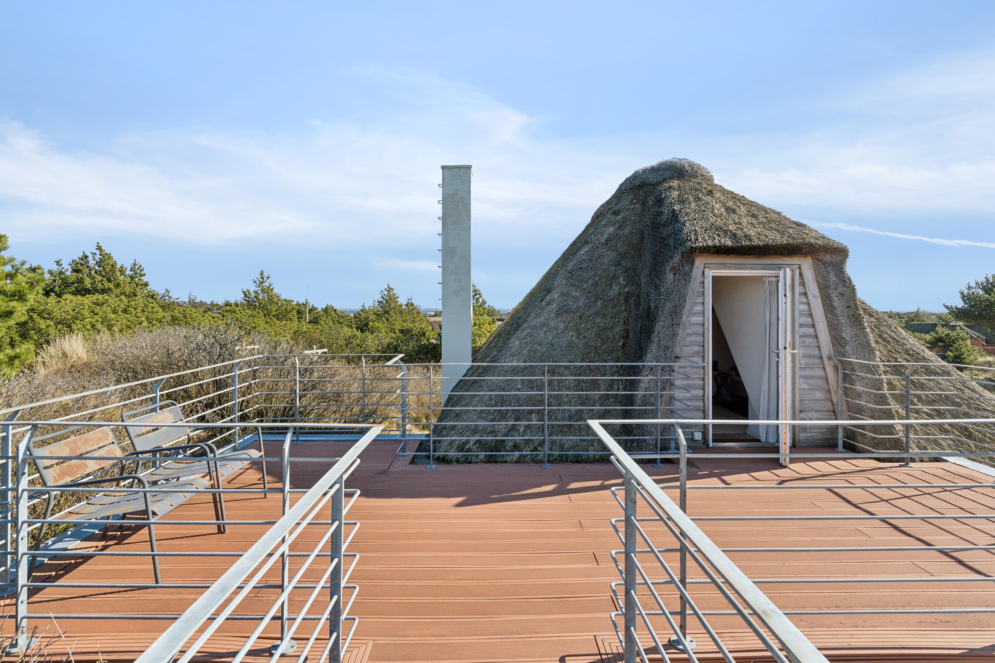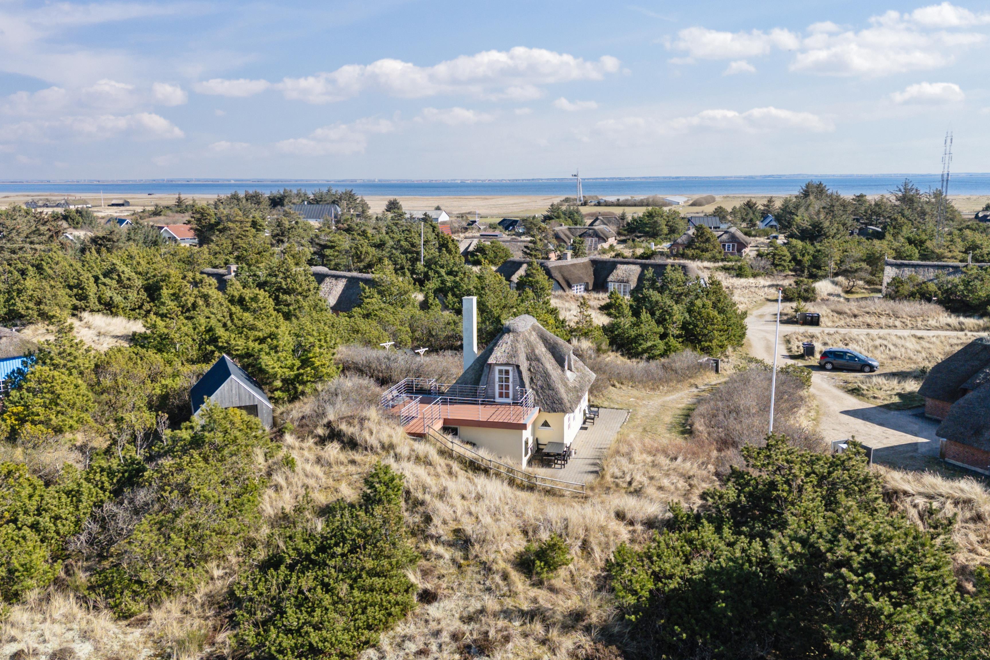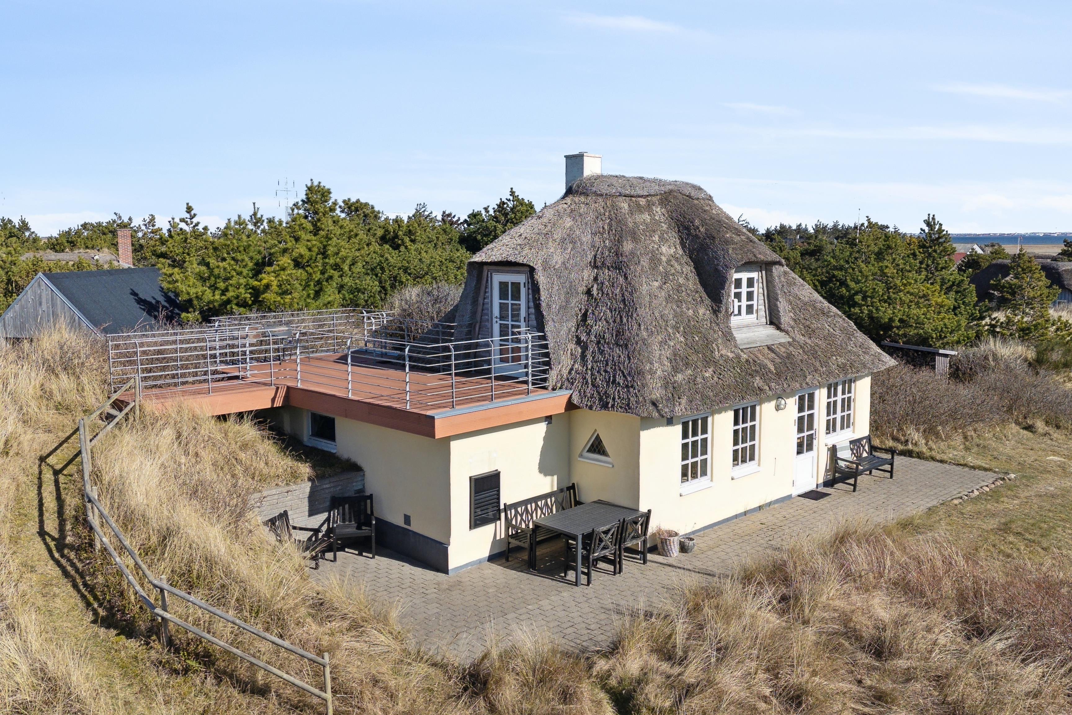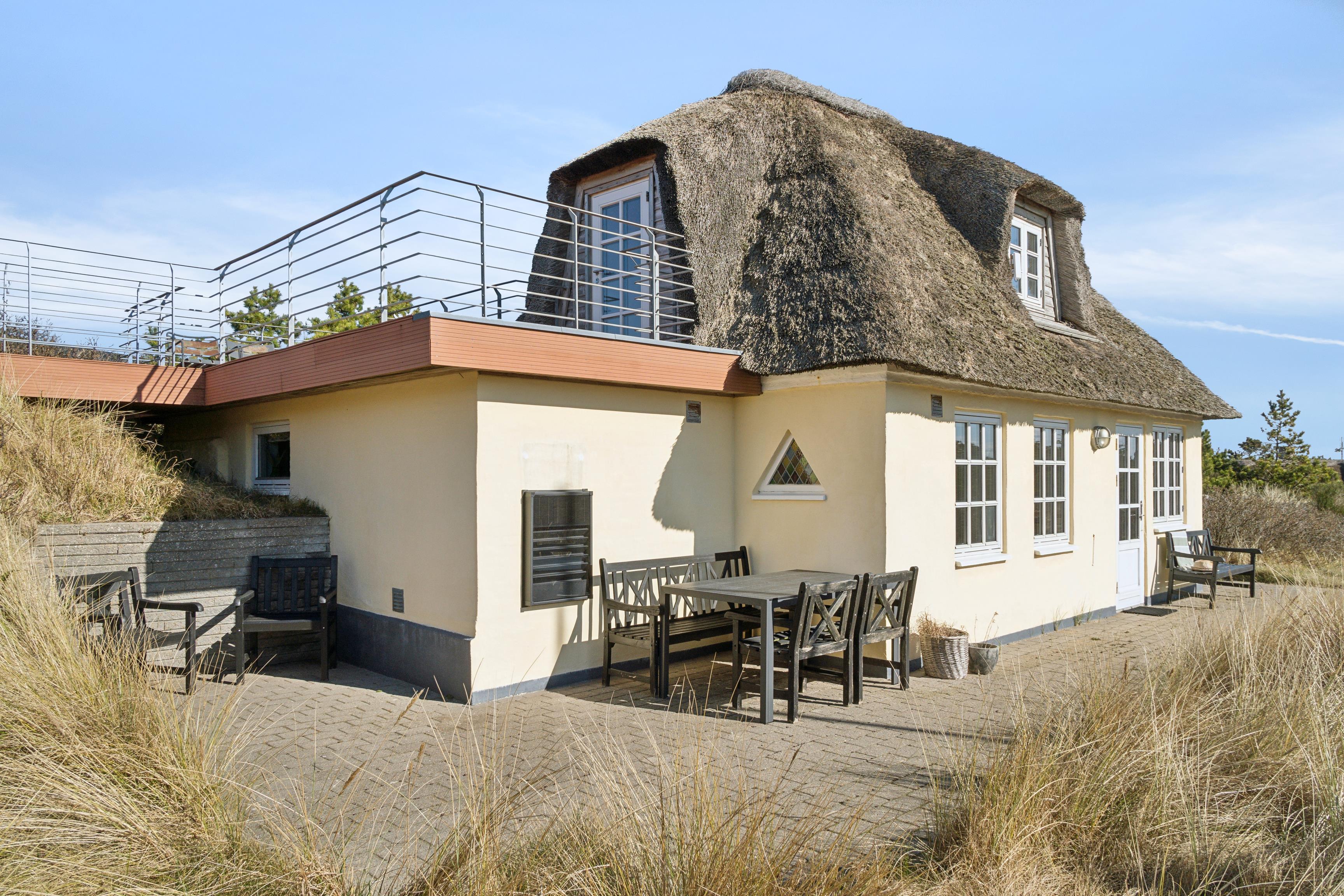 Charmerende feriehus i Klegod med tagterrasse og udsigt over Ringkøbing Fjord, tæt på Vesterhavets sandstrand.