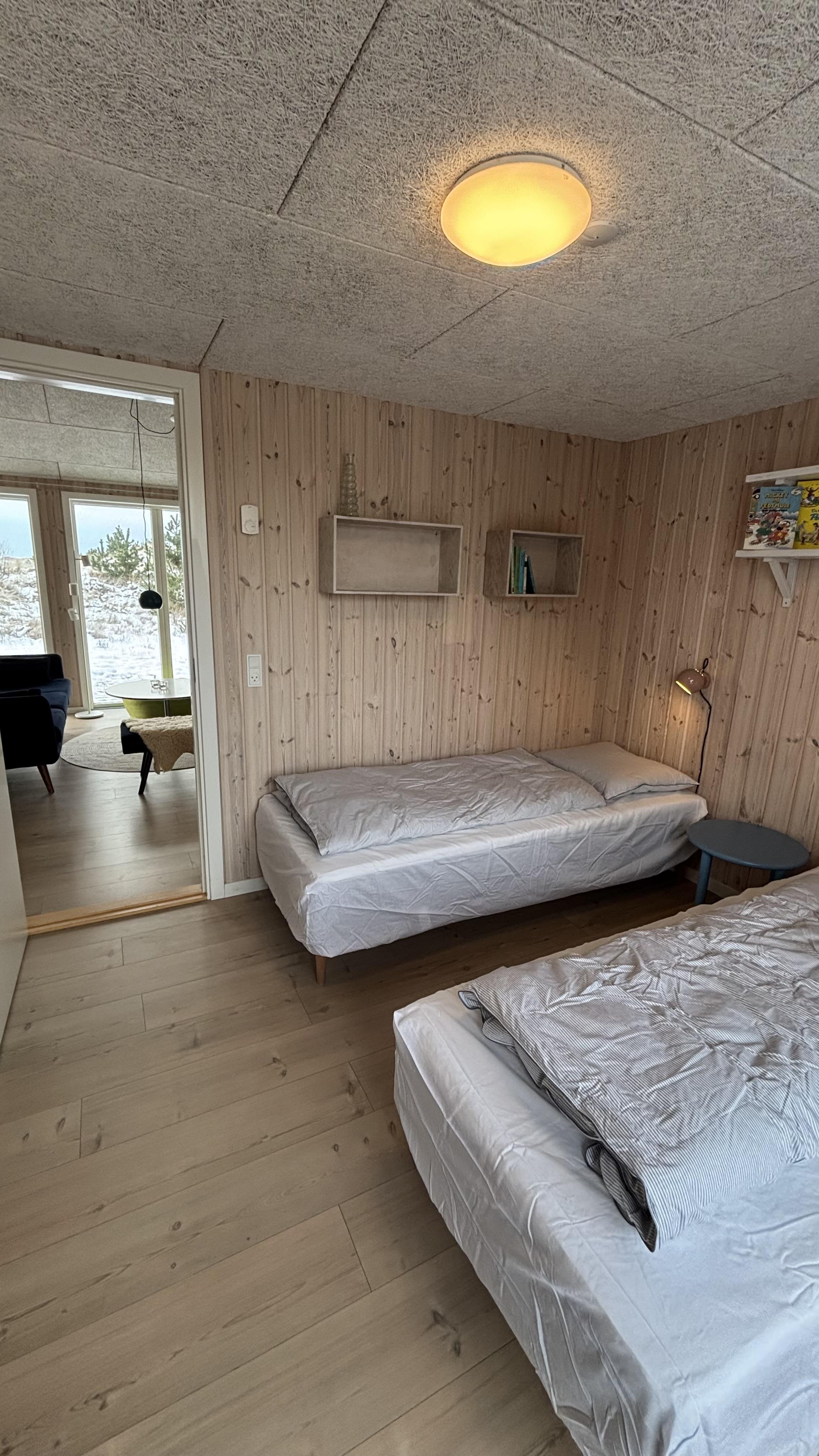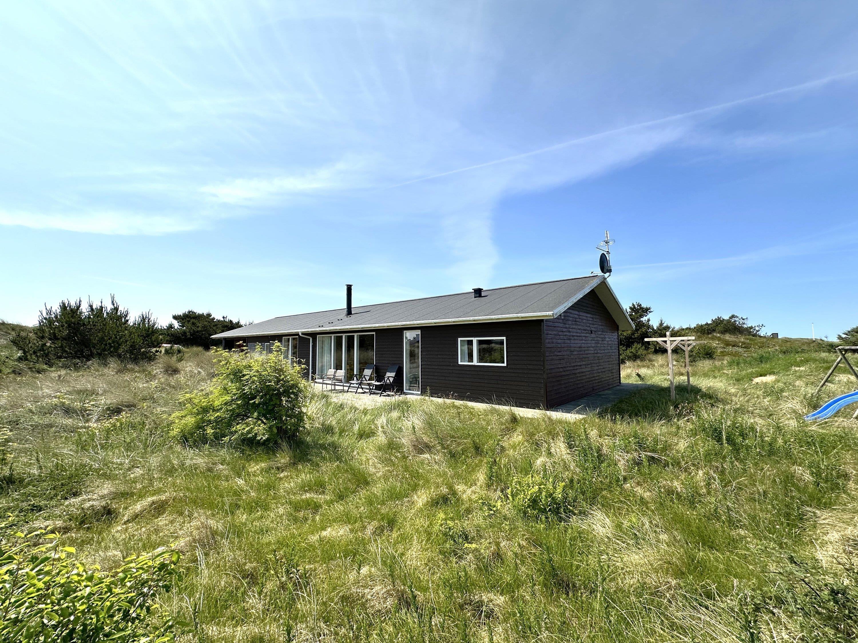 Sommerhuset rummer tre soverum med dobbeltsenge samt to badeværelser med bruser – det ene med adgang til en skøn sauna. Udendørs kan I nyde ferien på den store terrasse, som går rundt om huset. En del af terrassen er overdækket, så I kan sidde ude og nyde et måltid, selv hvis vejret viser sig fra sin omskiftelige side.Huset ligger i et fredeligt og naturskønt område, kun 600 meter fra vandet og i gåafstand til både fjord og hav. Her finder I også gode fiskesøer samt mange kilometer cykel- og vandrestier. I nærheden ligger den populære ferieby Søndervig, som om sommeren summer af liv med restauranter, butikker, legepladser og aktiviteter for hele familien.