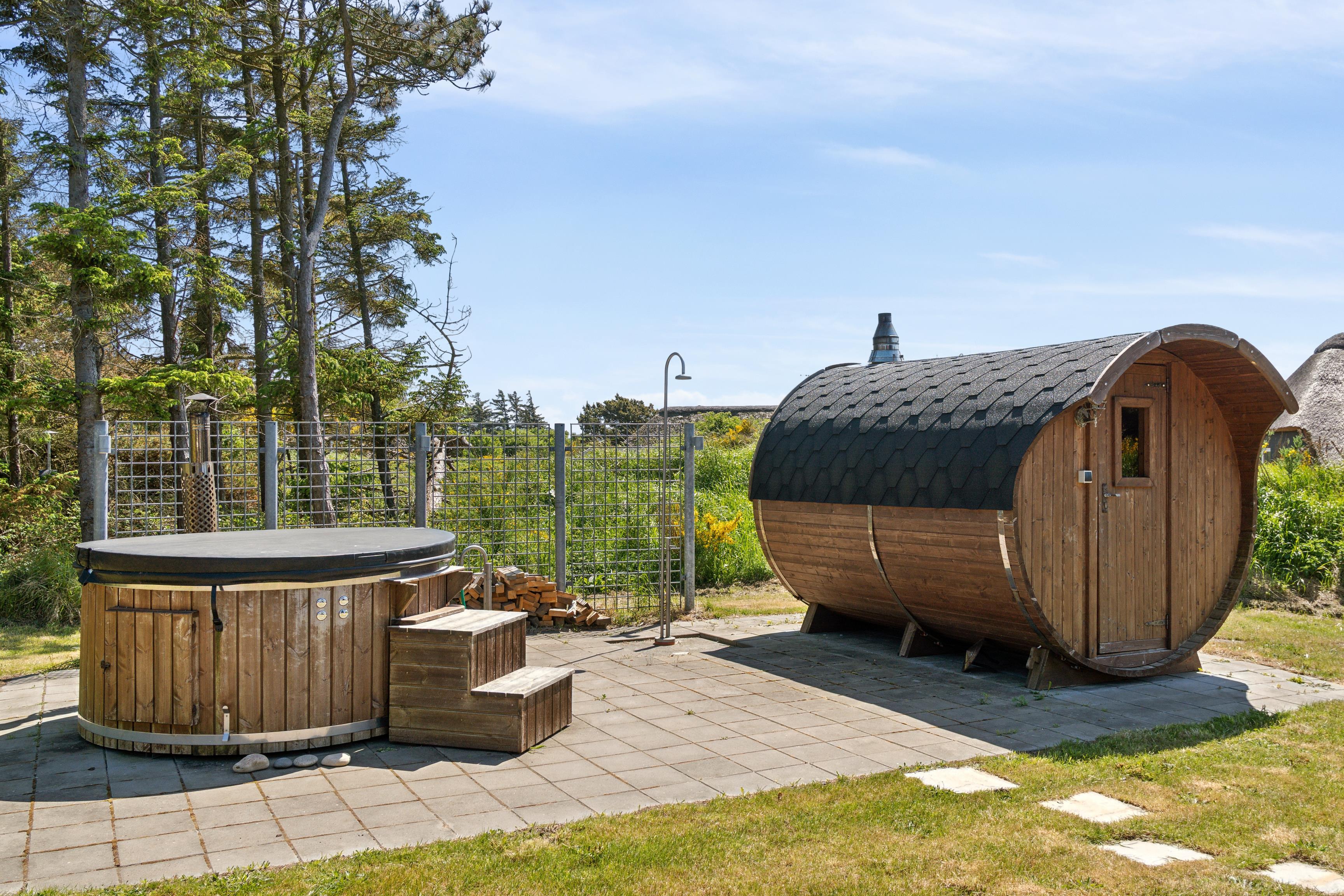 Velkommen til dette skønne og moderne feriehus i Klegod – en sand perle med stråtag, der kombinerer komfort, hygge og luksus. Med 155 m² bolig, 3 badeværelser, aktivitetsrum og udendørs wellness er der lagt op til en ferie i topklasse for hele familien.