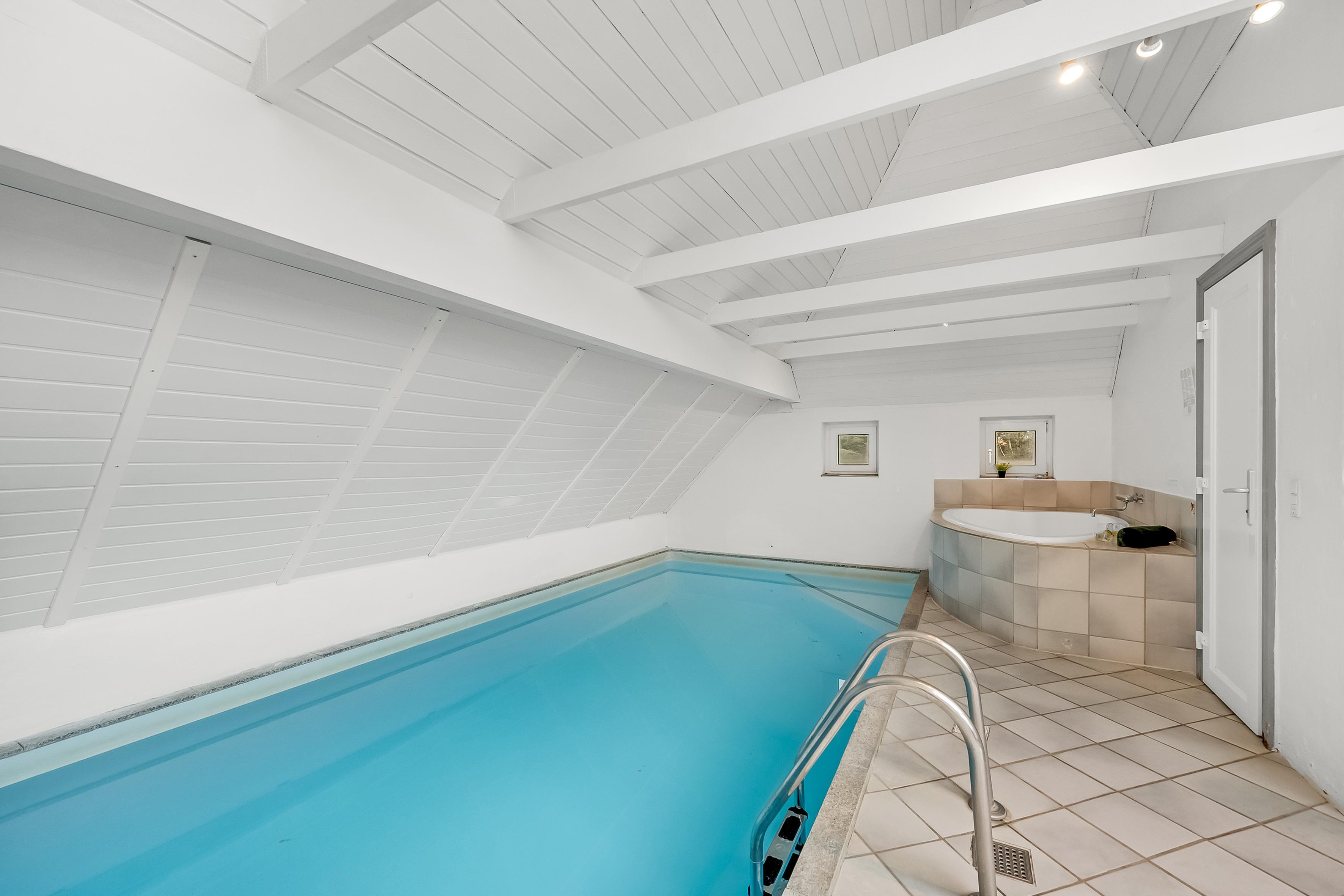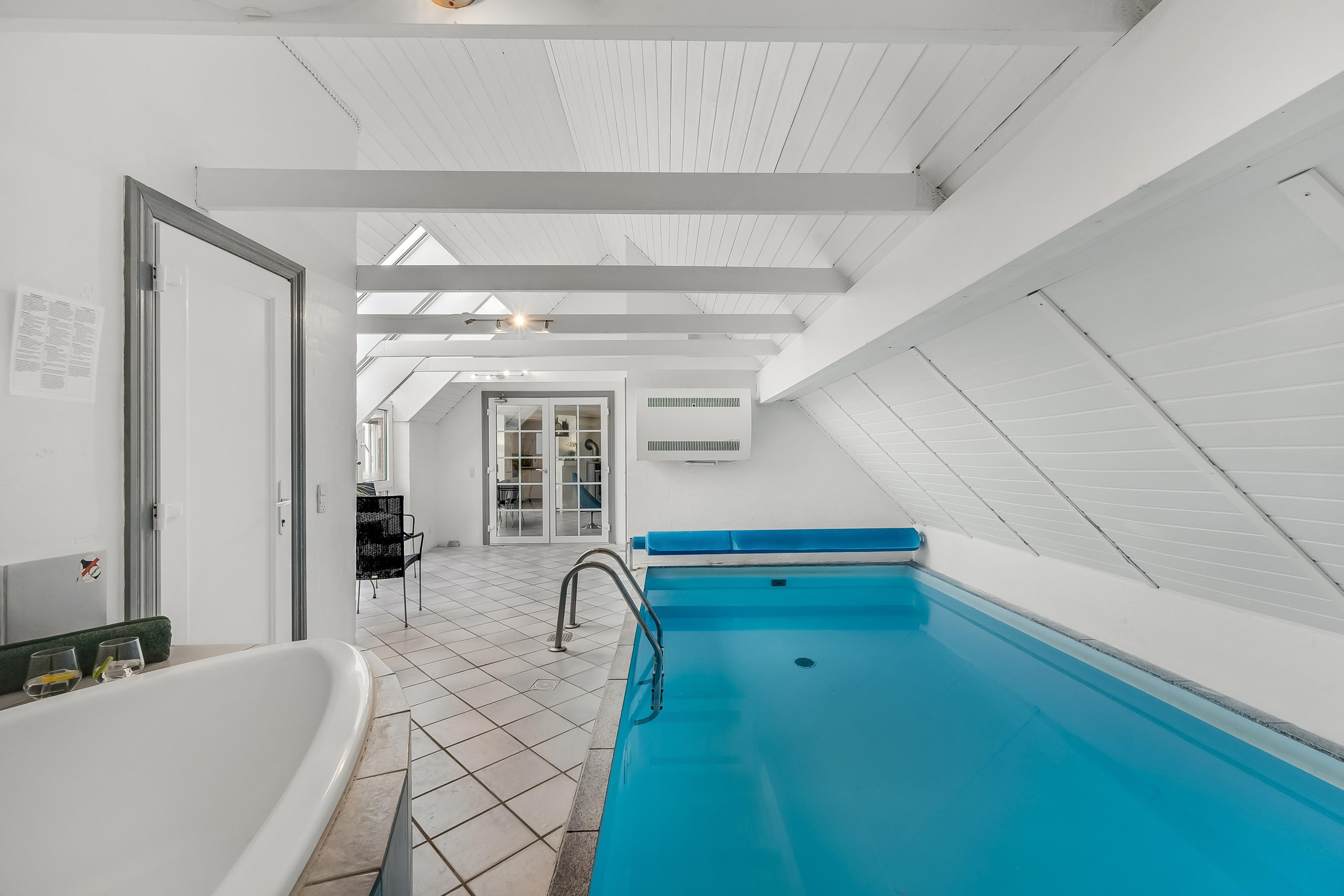 Rummeligt poolhus i Klegod med sauna, spa og beachvolley på stor naturgrund.