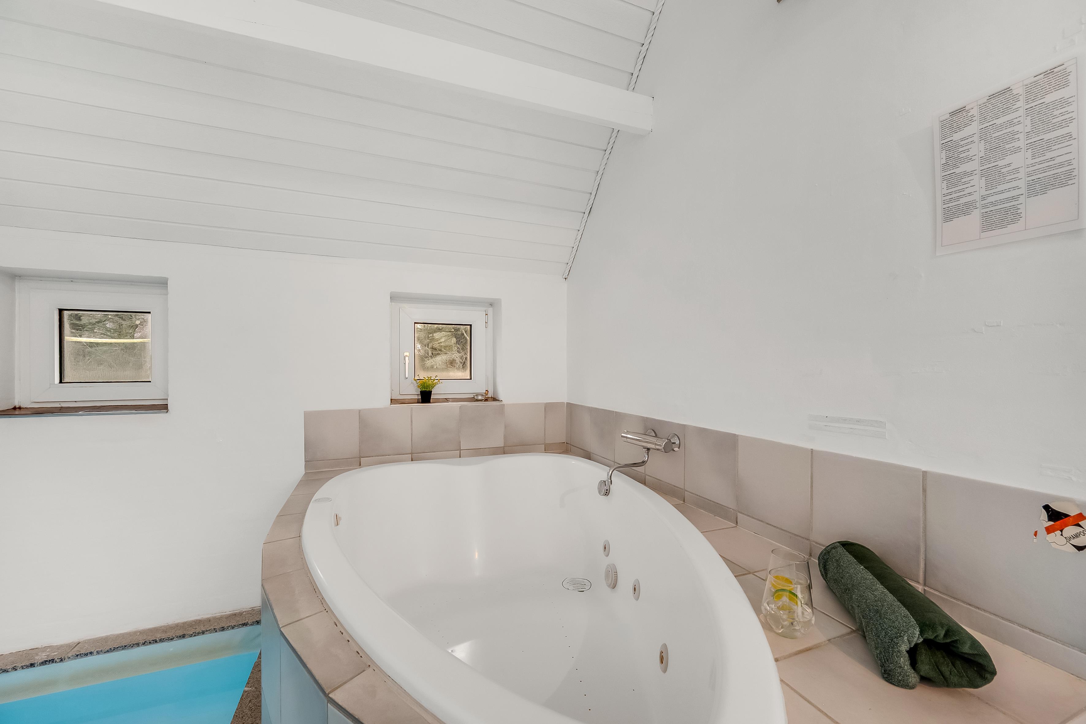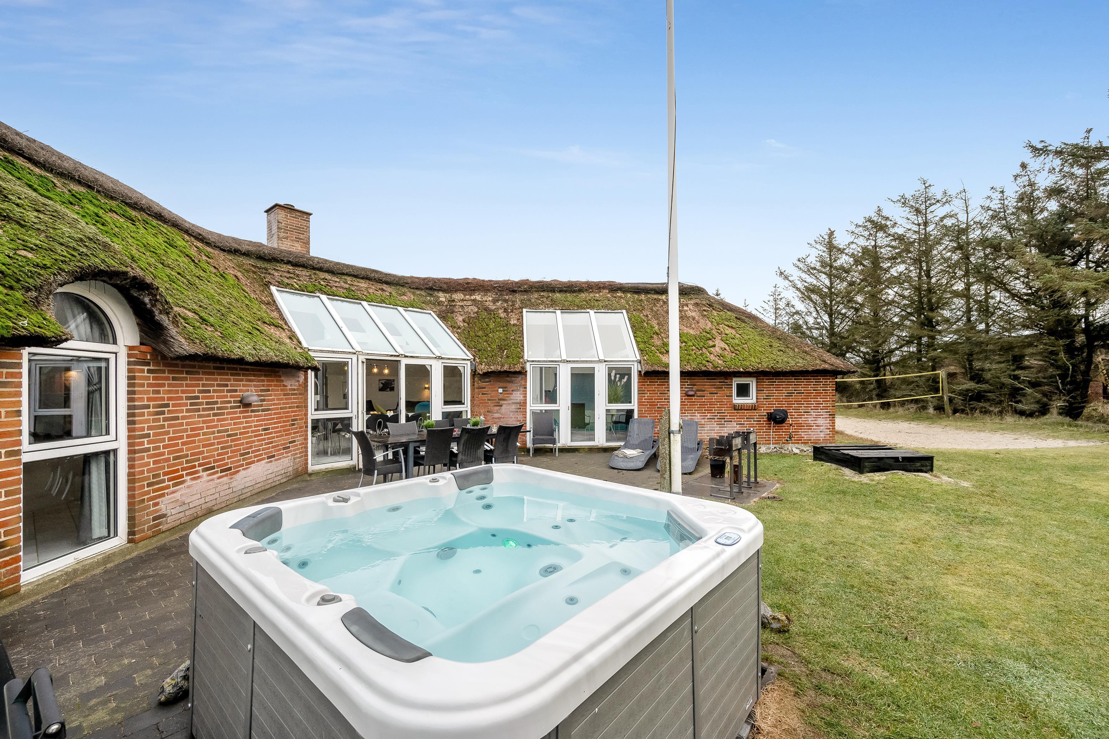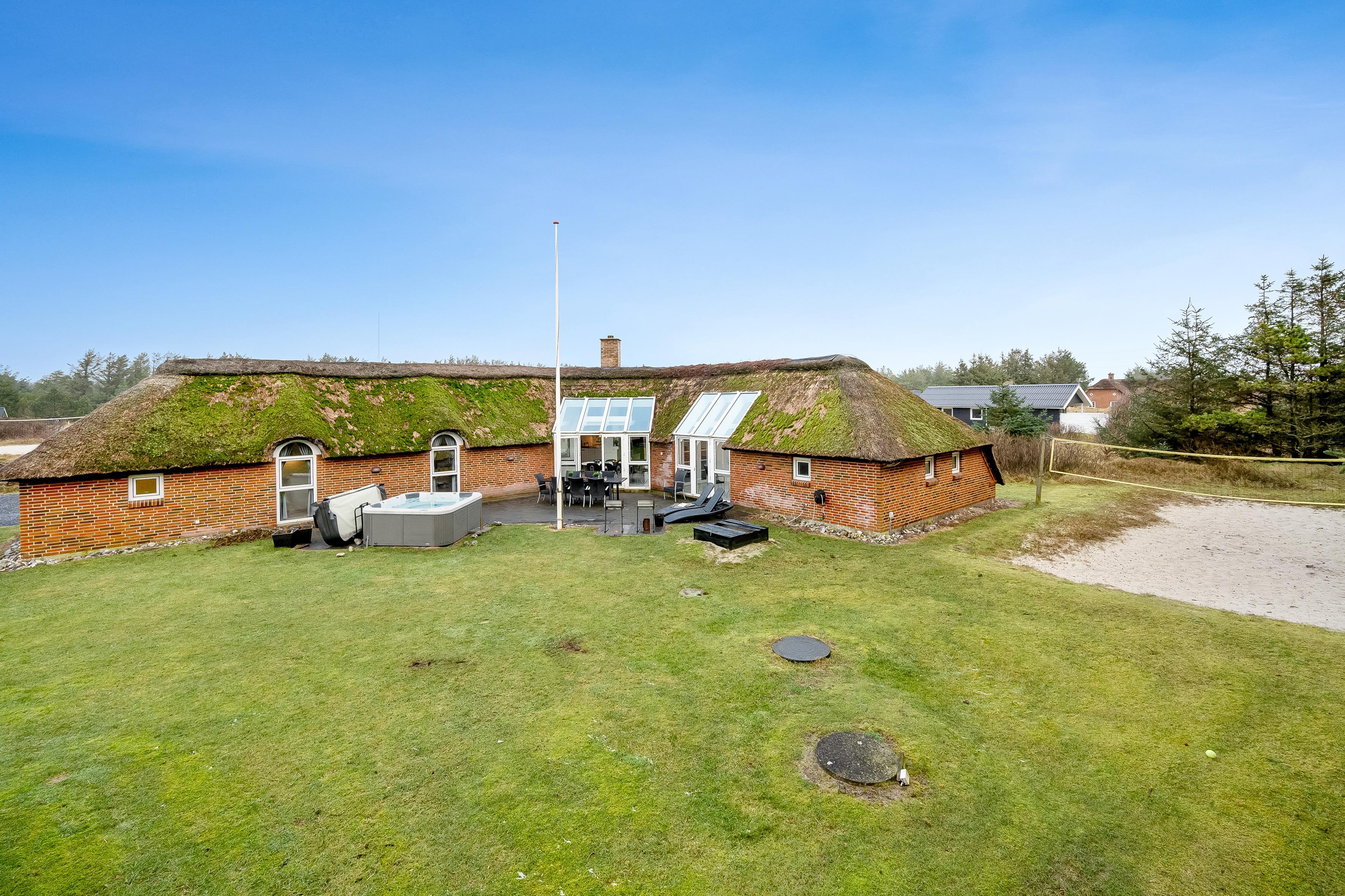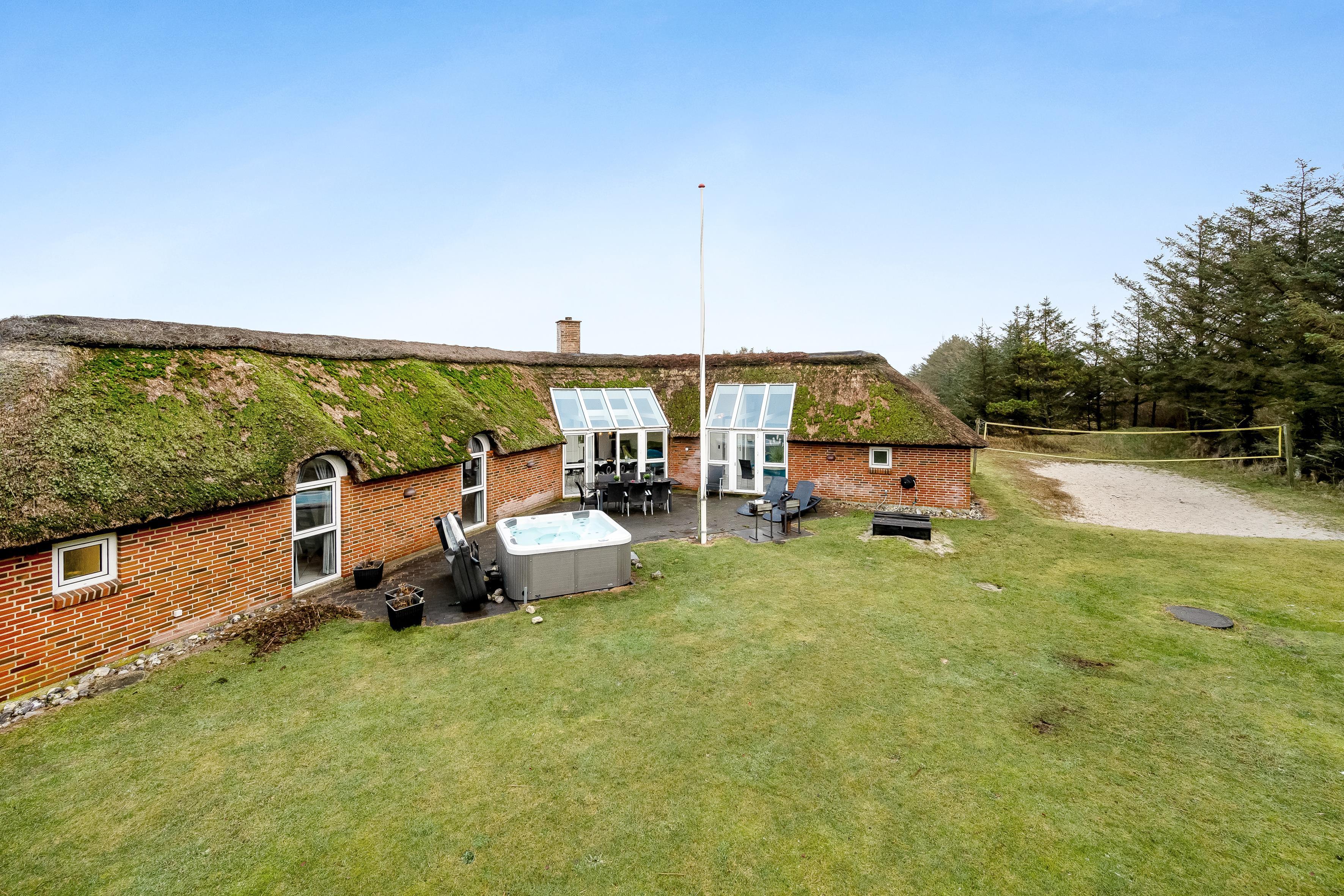 Træd ud på den 60 kvadratmeter store terrasse og nyd solen, eller slap af i det 6 personers udespa. En beachvolleybane venter på de mere aktive, mens de firebenede familiemedlemmer kan boltre sig frit på den 2000 kvadratmeter naturgrund.