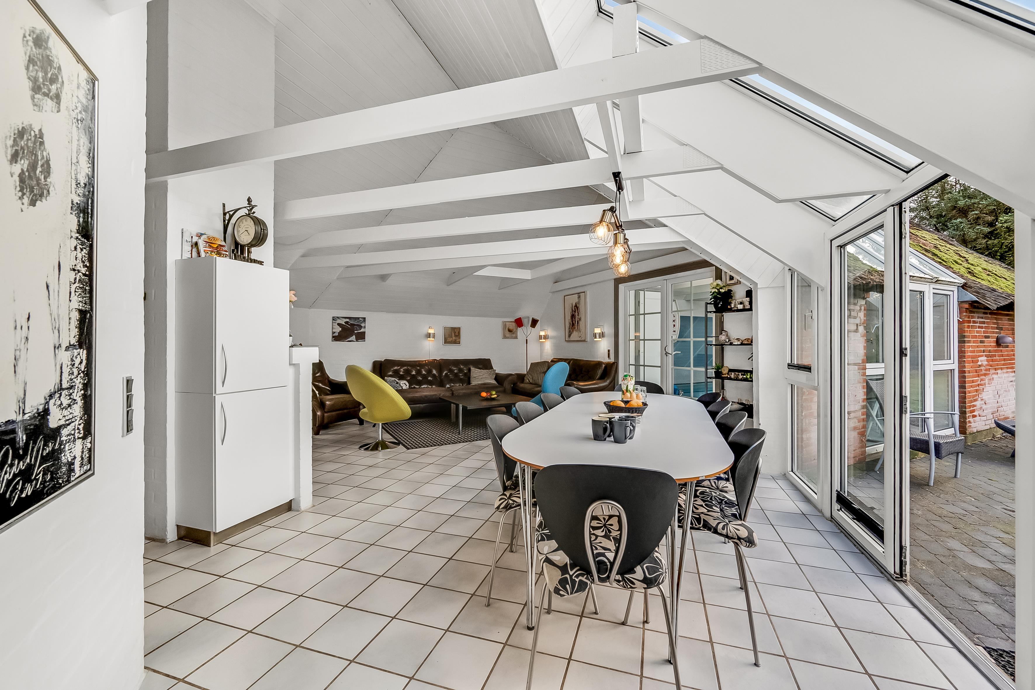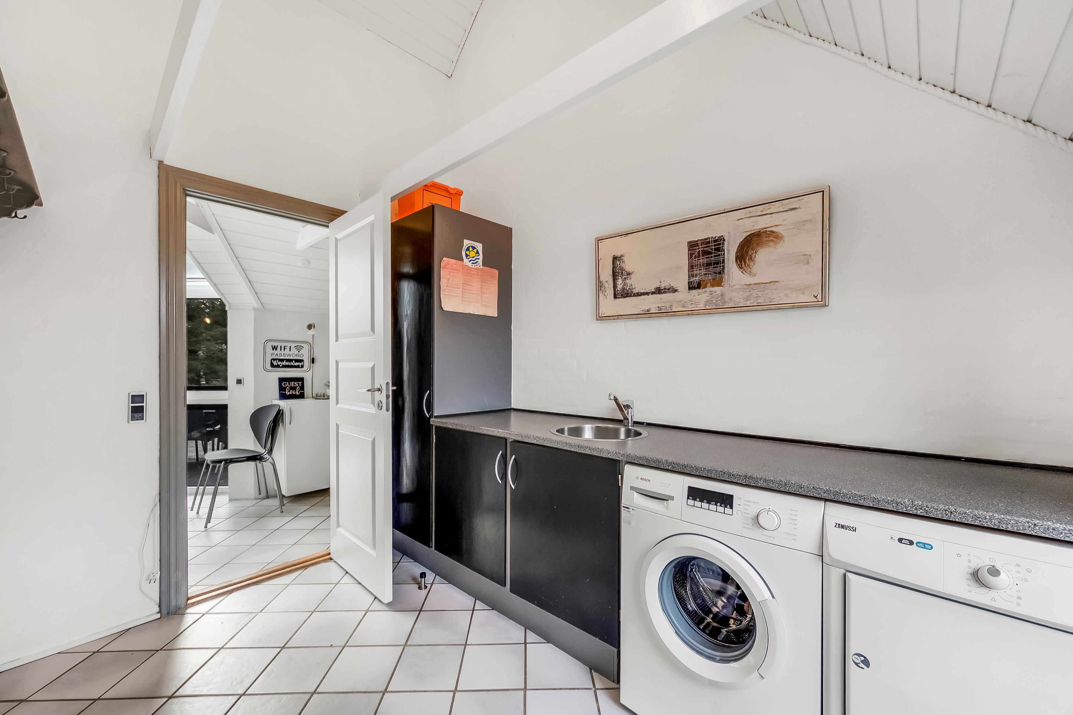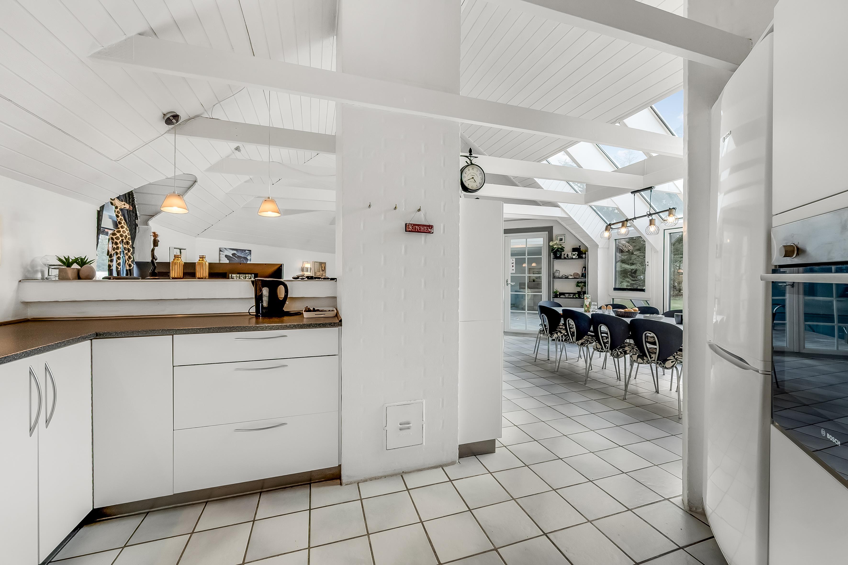 Dette 180 kvadratmeter store sommerhus, opført i 1992 og renoveret i 2009, udstråler charme og moderne bekvemmeligheder. Træd ind i det åbne køkken-alrum, der straks inviterer til sociale sammenkomster. Det rummelige køkken er udstyret med alle nødvendige apparater, herunder 4 induktionskogeplader, ovn, mikrobølgeovn, opvaskemaskine, køleskab og en 50 liters fryser.