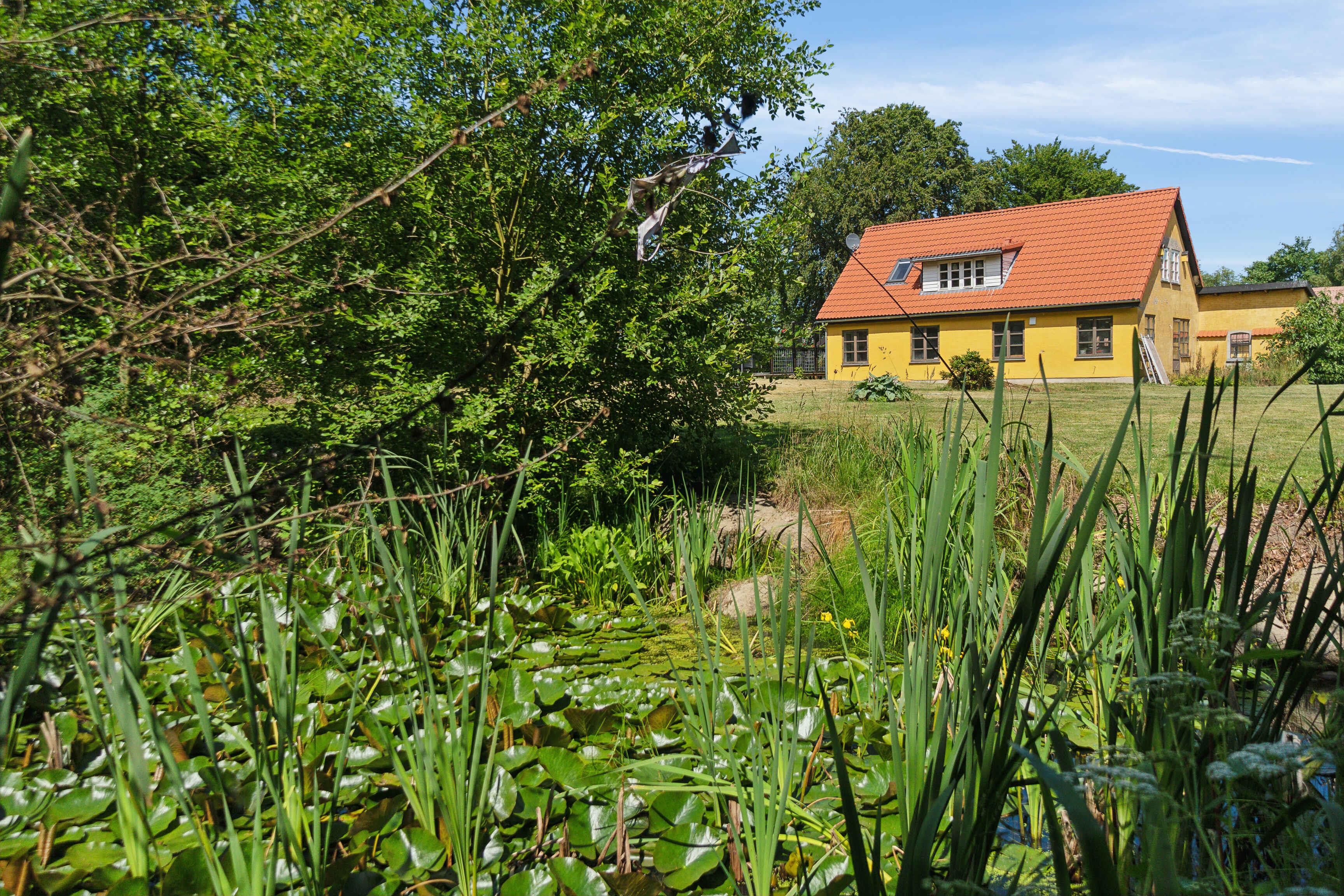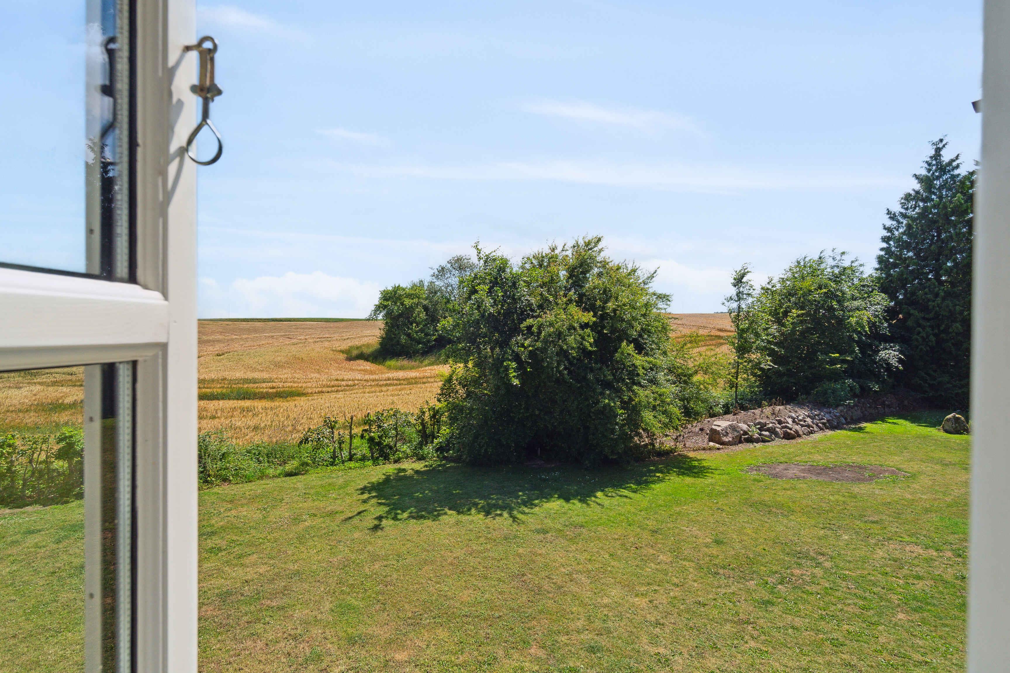 Moderne ferielejlighed i landlige omgivelser på Bornholm med terrasse og udsigt til åbne marker.