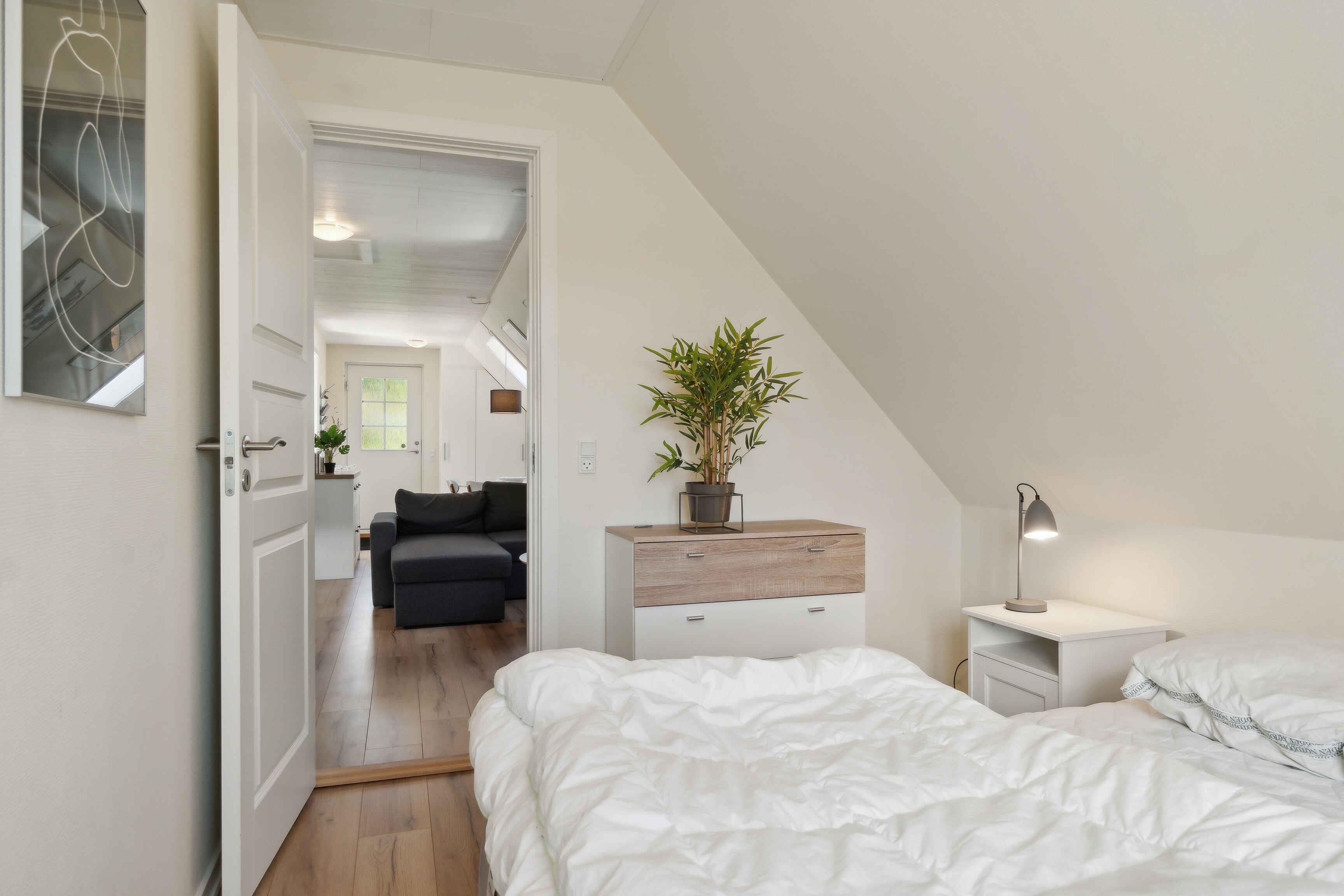 Velkommen til en skøn lejlighed beliggende på 1. sal, ideelt til en afslappende ferie. Boligen er moderne indrettet og byder på hyggelige rammer for op til fire personer. To komfortable soveværelser sikrer en god nattesøvn. Den rummelige stue og køkken-alrummet er husets hjerte. Her er god plads til fælles aktiviteter og madlavning. Udenfor finder du en dejlig træterrasse med siddepladser og parasol, perfekt til solrige dage. Grunden er stor og privat med udsigt til åbne marker. Her er plads til både leg og ro. Moderne faciliteter som opvaskemaskine og vaskemaskine gør ferien ekstra bekvem. Nyd områdets naturskønhed med cykel- og vandreture. Udforsk de charmerende nærliggende byer, lokale gårdbutikker og strande. Oplev Bornholms unikke kombination af kultur og natur. Obs, udlejes ikke til erhversmæssigt brug.