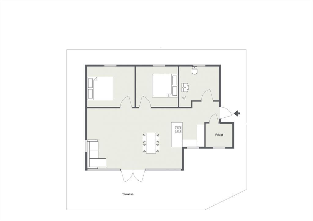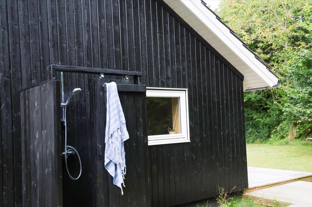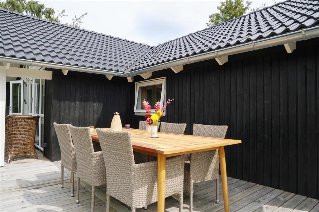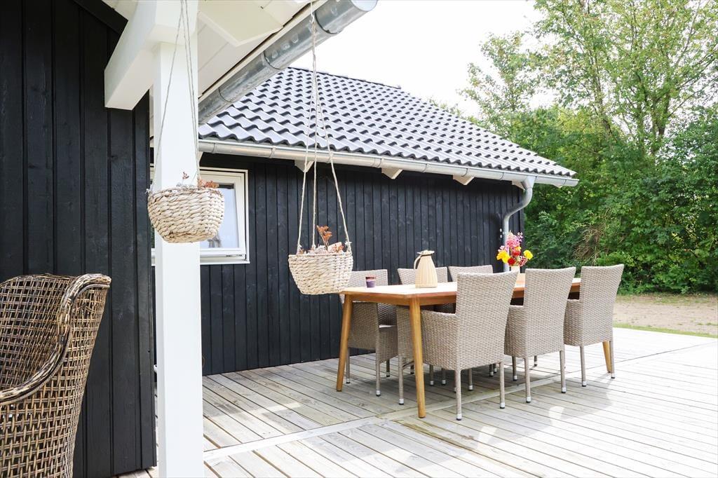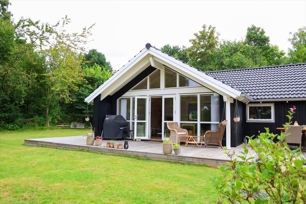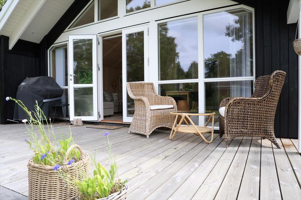 Sommerhuset er beliggende på en skøn grund i rolige omgivelser. På husets træterrasse kan eftermiddags- og aftensolen nydes i fulde drag. En varm anbefaling fra os, er at slå dig ned med en god bog og et tæppe og bare nyde stilheden. Hvis I pakker et par ketsjere, er det super hyggeligt med et spil badminton, som dine børn bestemt også vil sætte pris på.