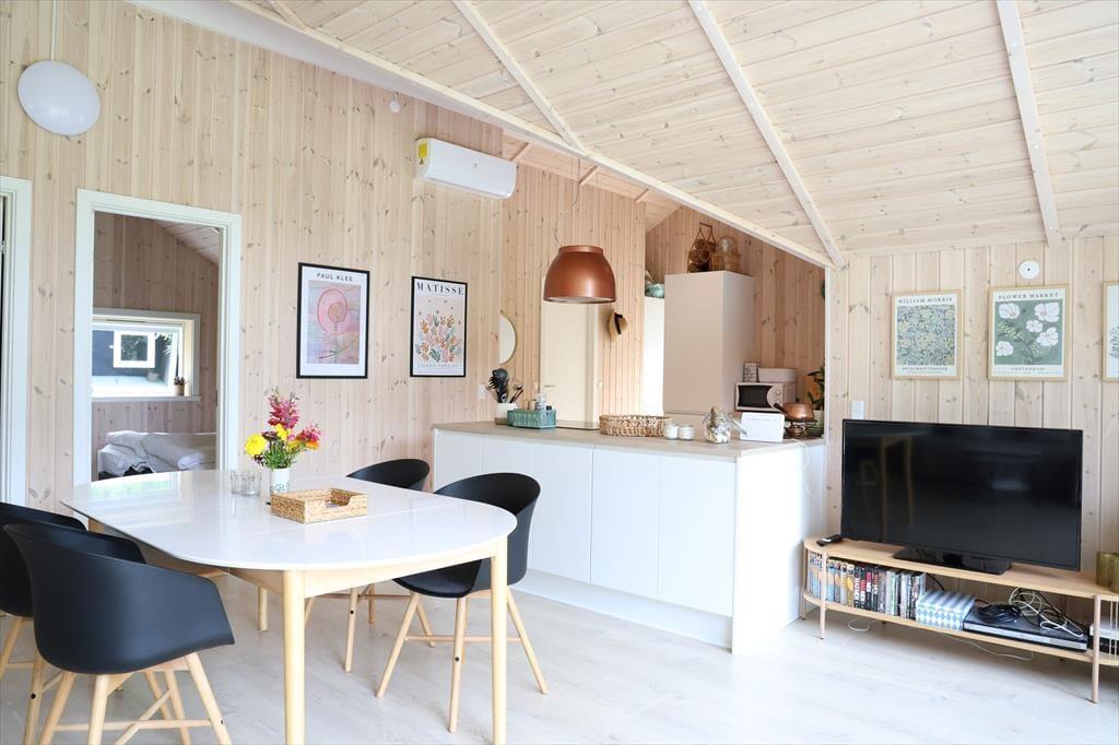 I sommerhuset fornemmer du hurtigt stemningen af dansk sommerhus. Der kan hygges med gode middage eller samtaler ved spisebordet, eller I kan nyde en stille aften i husets hjerterum, som er den dejlige stue. I køkkenet er der mulighed for, at I kan hjælpe hinanden med at tilberede en inspirerende frokost. I det skønne badeværelse kan det stærkt anbefales, at hoppe en tur i spabadet, måske kombineret med et glas champagne på kanten, som lidt ekstra forkælelse.