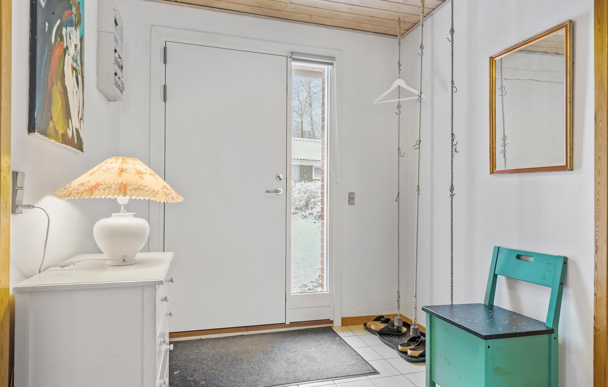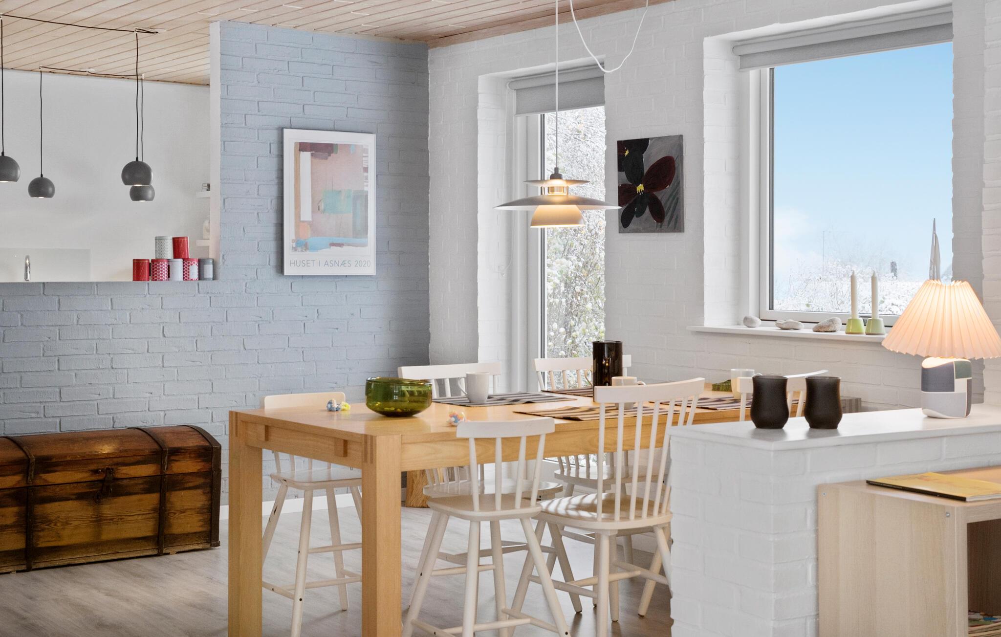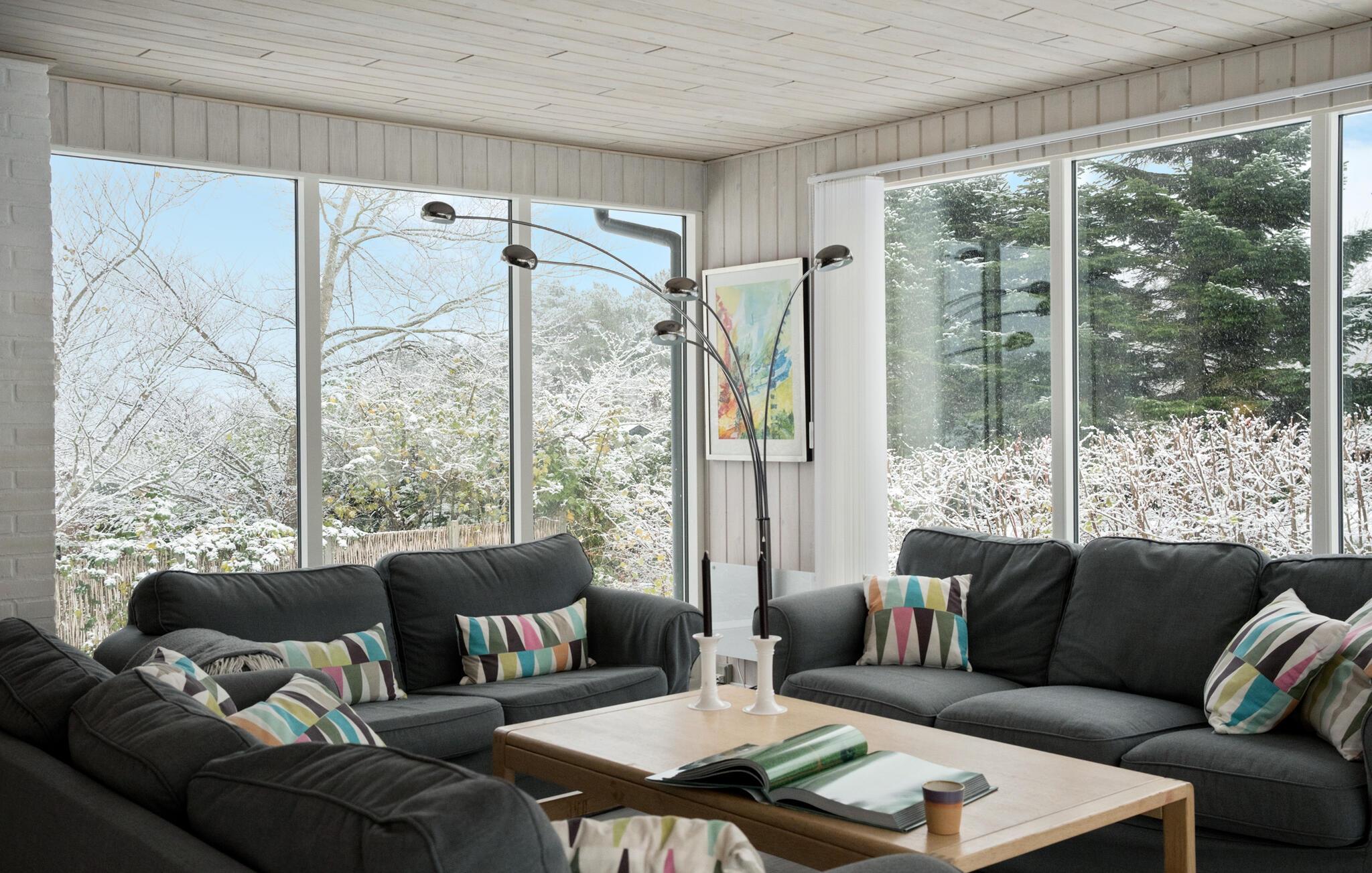 Glæd jer til en hyggelig ferie med jeres kære i dette familievenlige sommerhuss lysfyldte, smagfuldt indrettede opholdsstue. Fejr måltiderne sammen i den indbydende spiseplads og tilbring harmoniske spilleaftener i det komfortable sofaområde med udsigt til det grønne.
