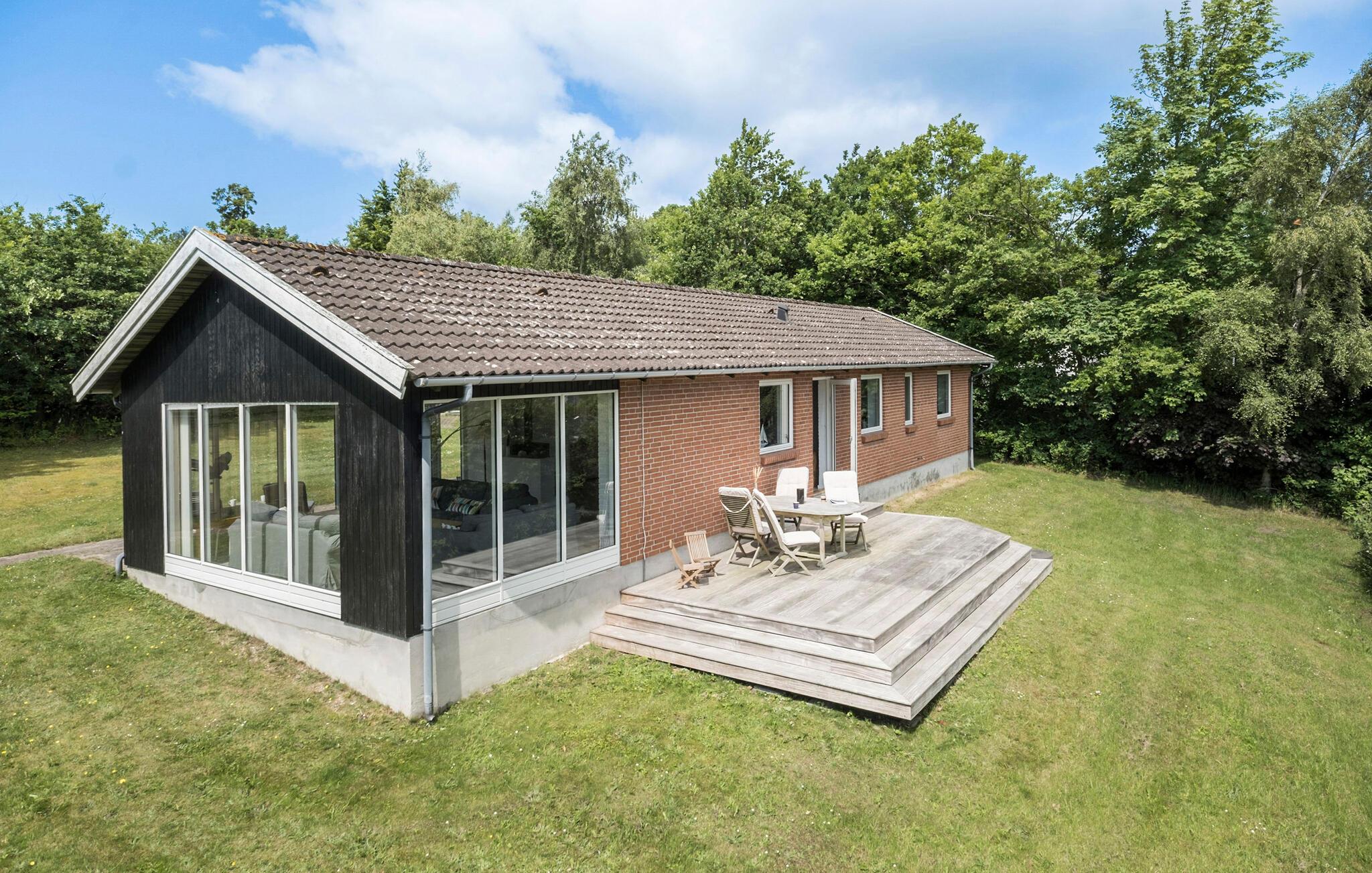 Hyggeligt sommerhus ved Klint Strand med havudsigt og stor have til afslapning og leg.