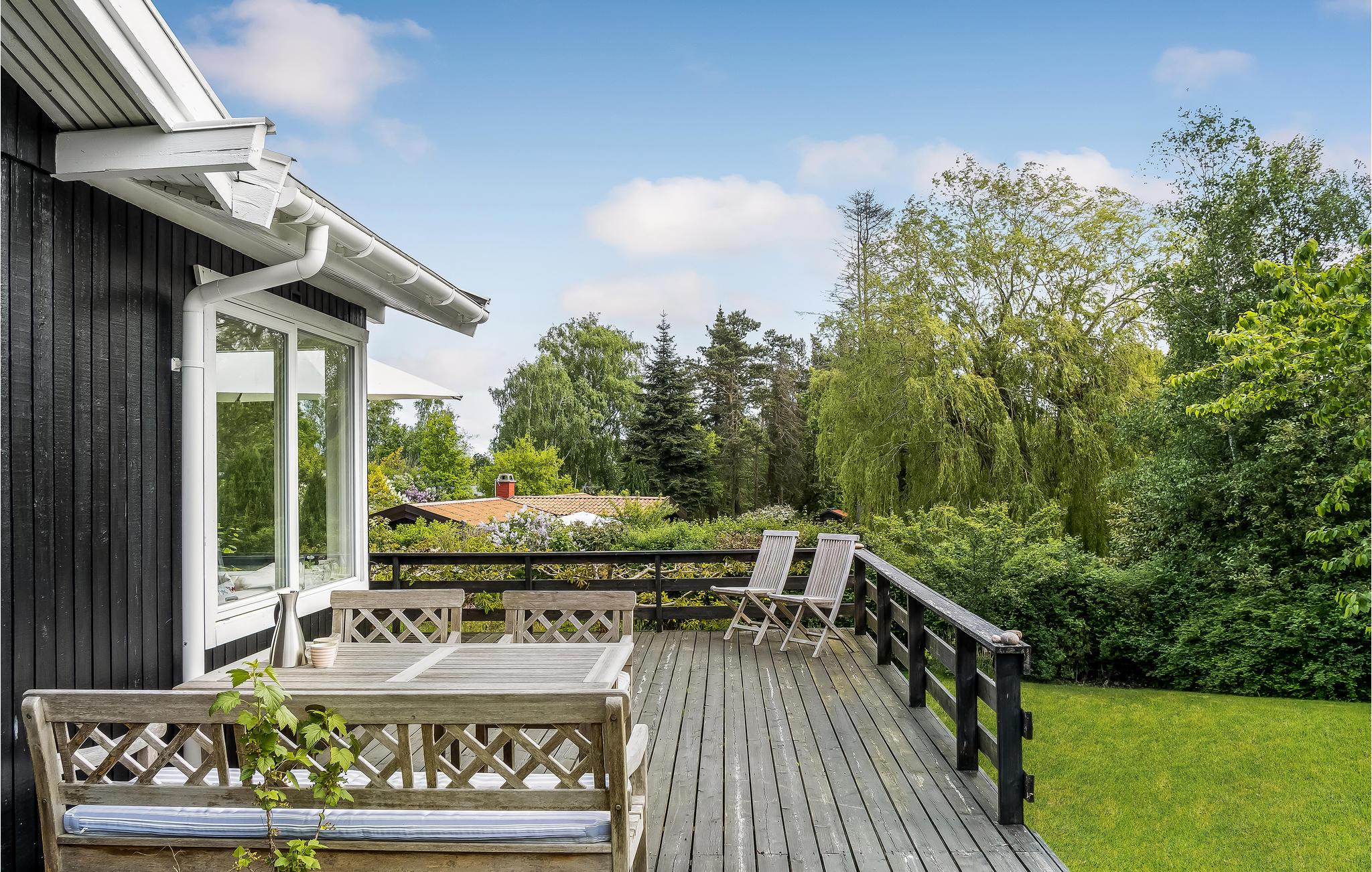 Hyggeligt feriehus ved Klint i Nordsjælland med to terrasser og nærhed til strand og natur.