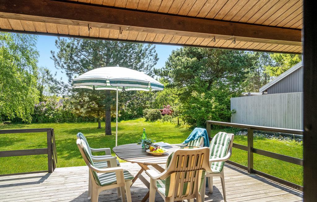 Dette kompakte feriehus tilbyder alt til en ubekymret ferie for den lille familie og udstråler ægte sommerhuscharme. Dæk et dejligt morgenbord og nyd, at I ikke skal på arbejde. Spisebordet er også perfekt til kortspil! Kryb sammen med mor på sofaen og få alletiders godnathistorie. På to sider af huset finder I dejlige terrasser, som indbyder til skøn familietid på alle tidspunkter af dagen. Har I brug for lidt skygge, kan hygge på et tæppe under træerne. I haven får I også mulighed for at kigge på stjerner i shelteret. Pak strandtasken og gå til stranden, hvor der også er gode fiskemuligheder.