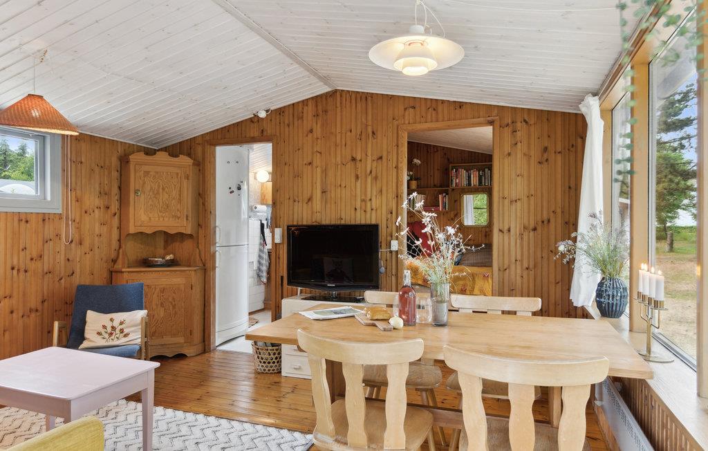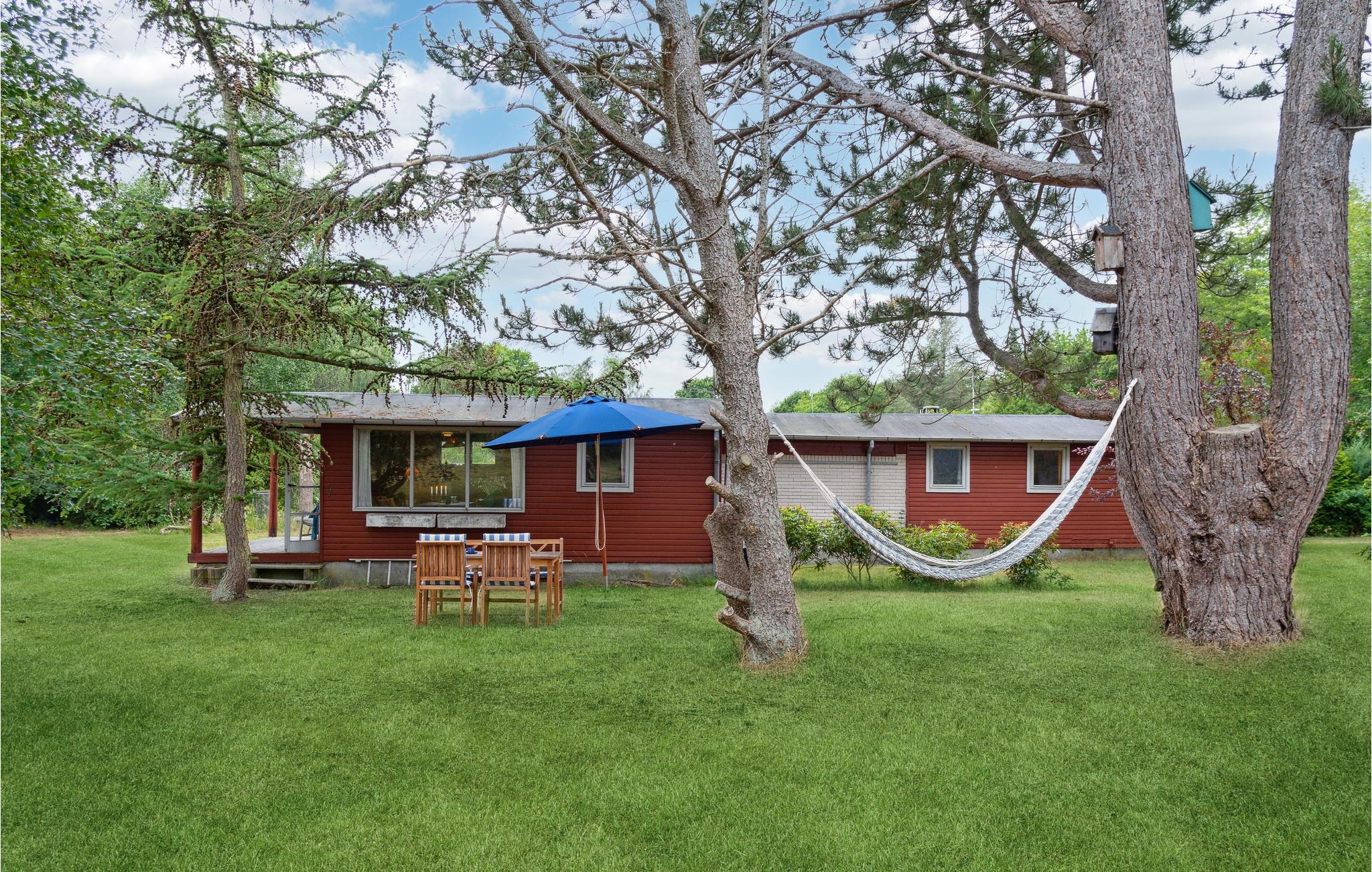 Velkommen til dette røde træhus på en stor idyllisk naturgrund med smukke træer og buske. Huset er hyggeligt indrettet og udstråler klassisk sommerhuscharme. Den ideelle ramme om en skøn ferie, hvor I på bedste vis kan kombinere strandhygge, naturoplevelser og spændende udflugter. Hyg jer i sofaen om aftenen, hvorfra I også kan nyde en smuk udsigt over det grønne. Nyd solen i fulde drag på terrassen og servér lækre retter fra grillen for hele familien. Hængekøjen inviterer til ren afslapning. Senere kan l samles om et stemningsfuldt lejrbål med snobrød og skumfiduser. Overnat udenfor i shelteret, betragt den smukke stjernehimmel og fortæl uhyggelige historier i lommelygtens skær. Her bor I meget tæt på stranden og den skønne natur.