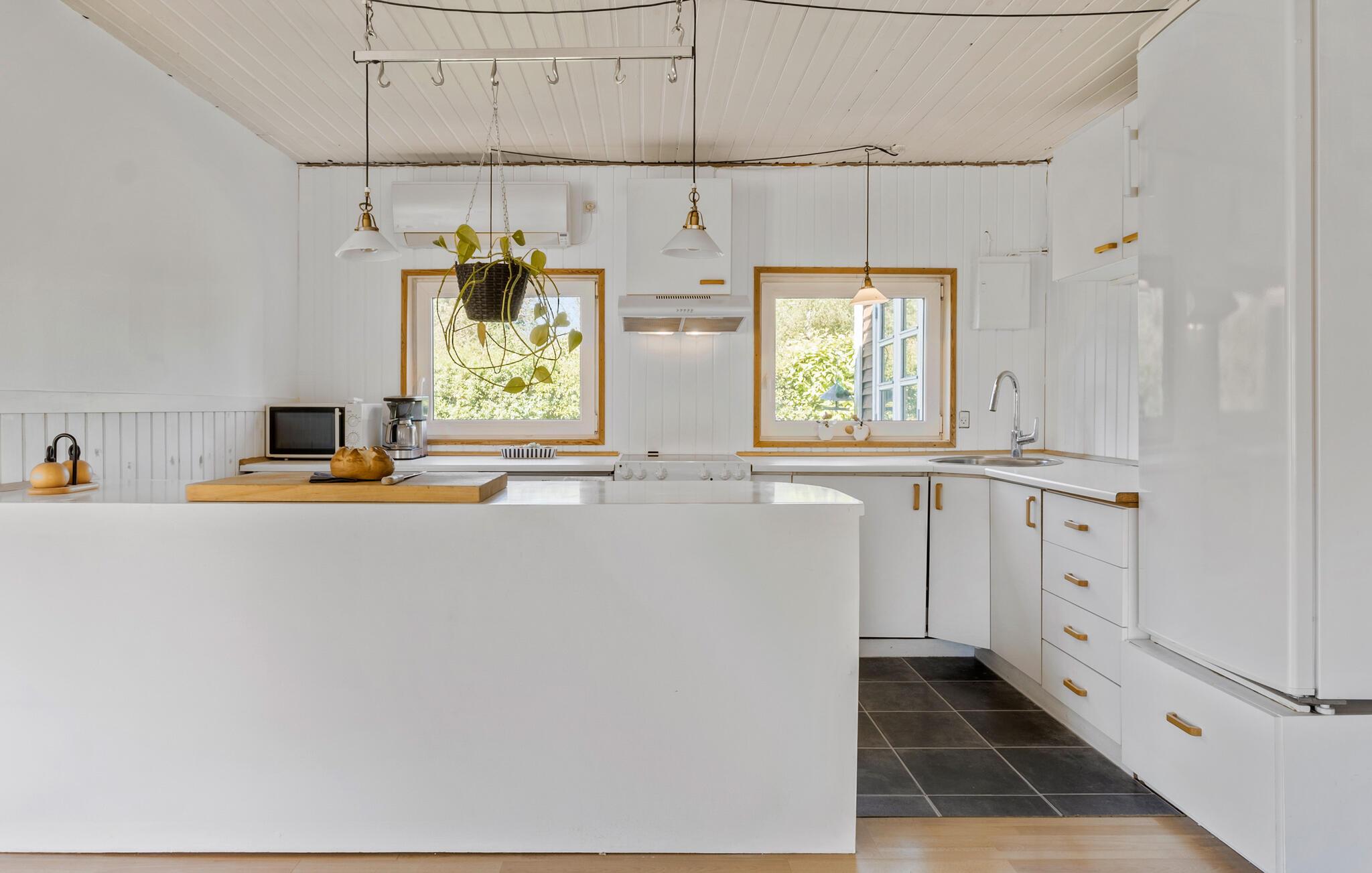 Velkommen til dette skønne hus, der ligger tæt på Nykøbing Sjælland og strandene ved nordkysten, og hvor der venter jer et herlig ophold med familien. Husets indre får flere lækre lysindfald gennem de mange vinduespartier, og fra stuen får I en dejlig udsigt til den grønne have. Indretningen fremtræder pænt og indbydende med lyse træpaneler, gode møbler og et veludstyret køkken, hvor I kan kræse om livretterne, inden der dækkes op til en god aftensmad ved spisebordet. Tænd op i brændeovnen, hvis vejret bider lidt fra sig, og måske I skal købe snacks til en hyggelig filmaften i sofaen?