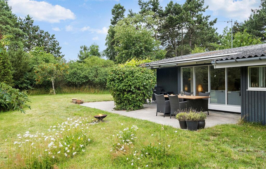 Hyggeligt feriehus ved Klint Strand med smuk naturhave og tæt på Kattegat for afslapning og oplevelser.