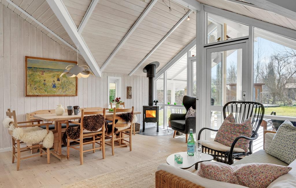 Huset ligger i smukke, rolige naturomgivelser, der indbyder til en ferie med masser af udeliv. Selve huset er lyst, rummeligt og smagfuldt indrettet. Der er mange vinduer, der lukker masser af dagslys ind og giver et dejligt udsyn til de grønne omgivelser. Hjertet i huset er den kombinerede spise- og opholdsstue med åbent køkken, hvor I kan tilberede og nyde lækre feriemåltider, sidde og spille kort- eller brætspil og hyggesnakke eller se film og serier på fladskærmen. Der er også brændeovn til de kølige årstider.