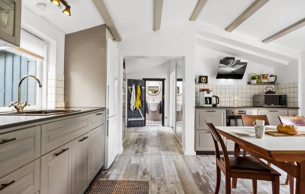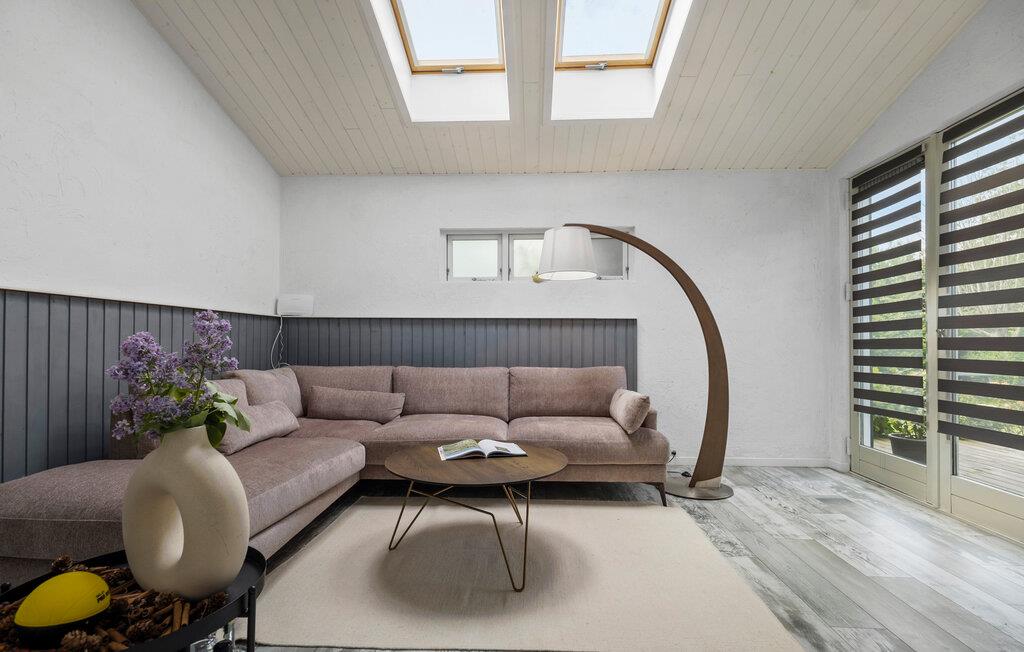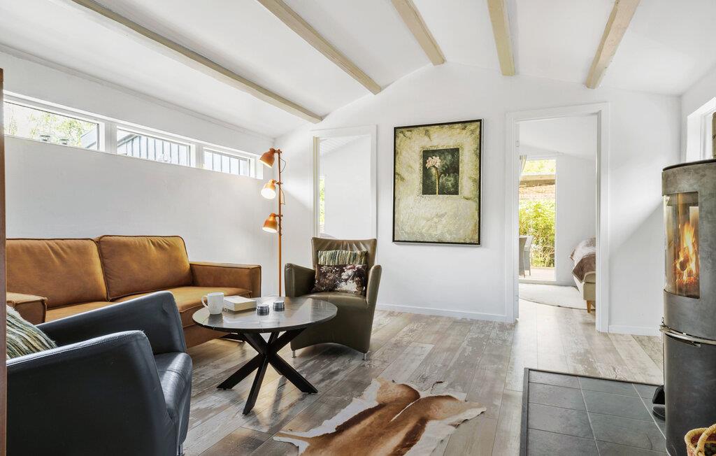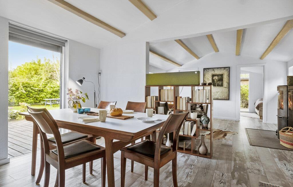Velkommen til et flot og moderne hus, som er placeret i naturskønne rammer. Find jer godt til rette i et af de to opholdsrum, enten på den store hjørnesofa med udsigt til haven eller i stuen ved brændeovnen. Sæt jer med en god bog eller hyg jer med en filmaften. I det rummelige spisekøkken kan I gøre madlavningen til et fællesprojekt. De lyse rum, rene linjer og fine detaljer skaber en rar atmosfære, hvor alle straks vil føle sig hjemme.