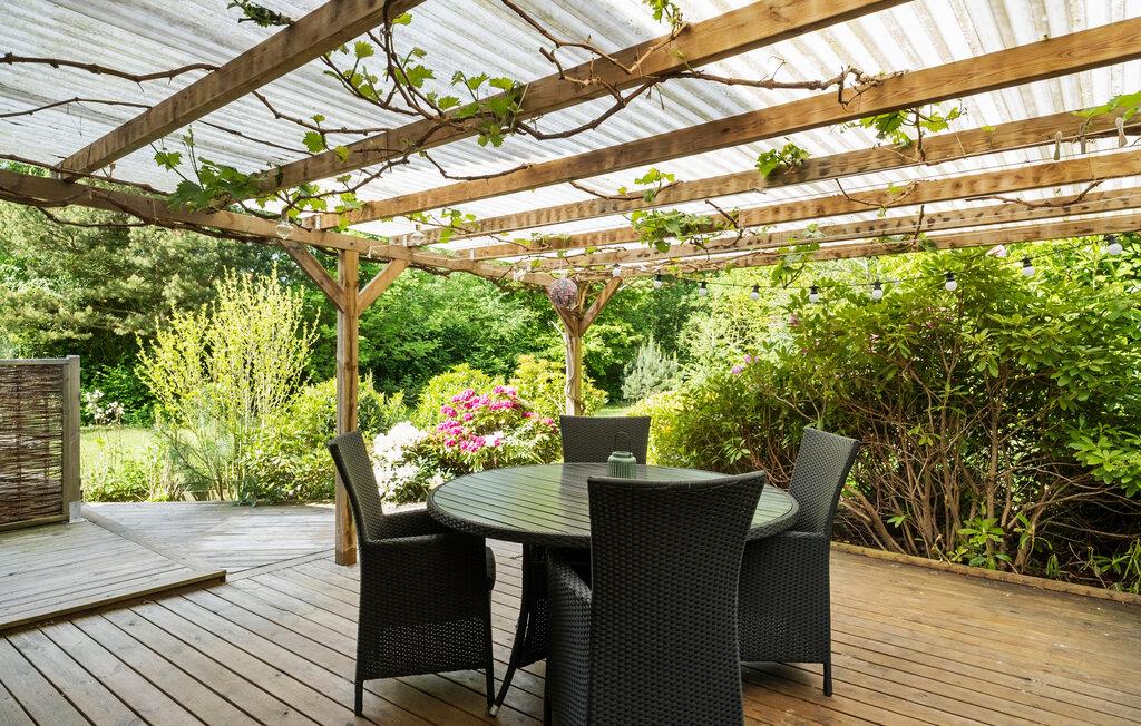 Nyd de solrige timer på den store træterrasse med pergola. Både når I sidder her med morgenkaffen eller nyder aftensmaden til tonerne af fuglesang, befinder I jer i en skøn lille oase. Den velholdte have lægger op til nyde en stille stund, byder på plads til leg og er ideel til små opdagelsesture mellem blomster og træer.