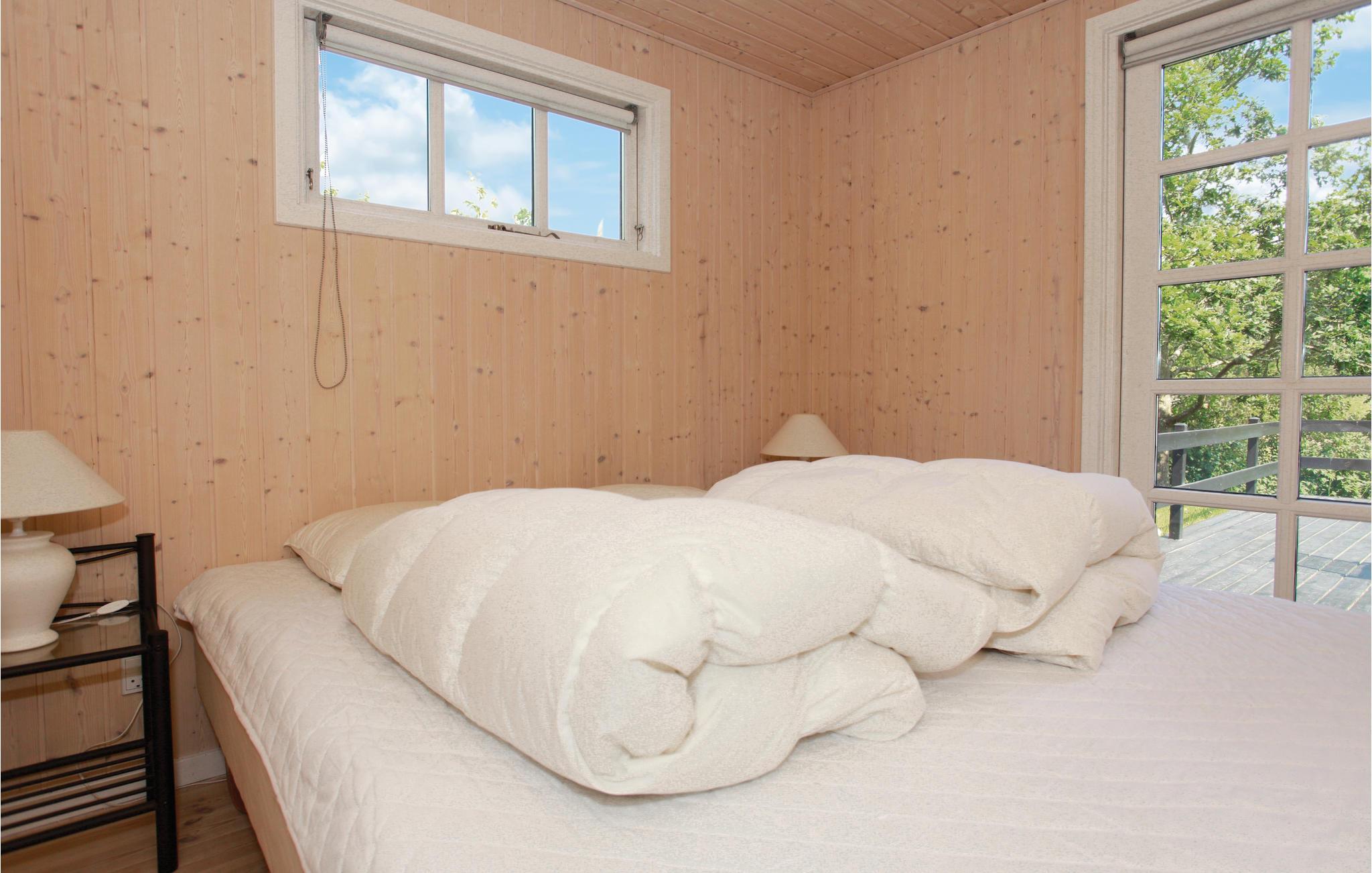 Pænt træhus beliggende højt på grunden med en smuk udsigt ud over Nyrup Bugt/Kattegat. Huset indeholder et åbent køkken/spisestue/stue med med udsigt til vandet. Endvidere er der et dejligt soveværelse samt badeværelse med brus. Yderligere overnatning muligt på hems, adkoms via sejl stige, kun egnet til børn. Der er en skøn terrasse hvor I kan nyde udsigten og de lune sommeraftener. Hele herligheden ligger på en skøn naturgrund med plads til leg og boldspil. Odsherred er et af Danmarks smukkeste ferieområder og er kendt for den smukke varierede natur, især Klintebakkerne som ligger ca. 15 minutters gang fra feriehuset. Gå en tur i det skønne Klint, og oplev stensøjlerne, et unikt fænomen skabt af de forbipasserende gæster, og spis jeres frokost på toppen af klintebjerget med udsigt ud over Kattegat. Kystfiskeri med gode fangstmuligheder af havørred og fladfisk fra egen strand. 18-hullers golfbane i Højby ca. 5 km fra feriehuset. I området finder I desuden en put and take sø, mange gallerier, kunsthåndværkere og Dragsholm Slot fra 1200-tallet, hvor det hvide spøgelse efter sigende skulle husere. Nykøbing Sjælland by ligger ca. 4 km fra feriehuset og har talrige indkøbsmuligheder med flere supermarkeder og en hyggelig gågade med specialforretninger og caféer. Her finder I også den store forlystelsespark Sommerland Sjælland med bl.a. Sjællands største vandland og et væld af andre aktiviteter for hele familien. Ferieperlen Rørvig, med færgeforbindelse til Hundested (50 km til København), har en idyllisk bykerne med gamle fiskerhuse og en hyggelig havn med røgeri.