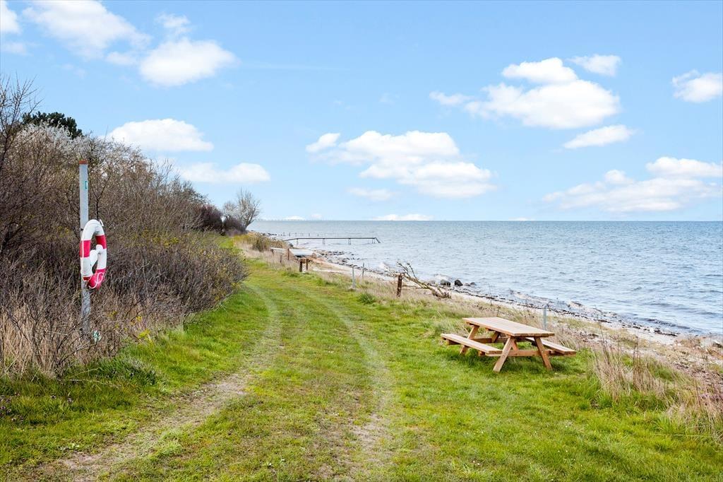 Sommerhus med en helt unik beliggenhed direkte til vandet ved Klintholm Strand syd for Nyborg. Fra terrassen og stuen kan man nyde den pragtfulde udsigt over Storebælt. Huset er renoveret i 2001 og indrettet i moderne, skandinavisk stil med en pæn møbleret stue med loft til kip og brændeovn, store vinduespartier og åbent køkken, 3 soverumog et moderne badeværelse. Huset har terrasse omkring hele huset, hvortil man har udgang fra alle rum.