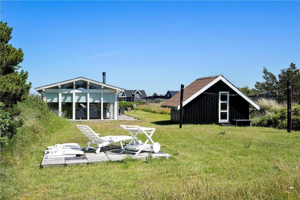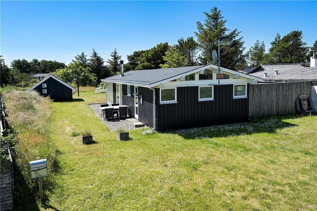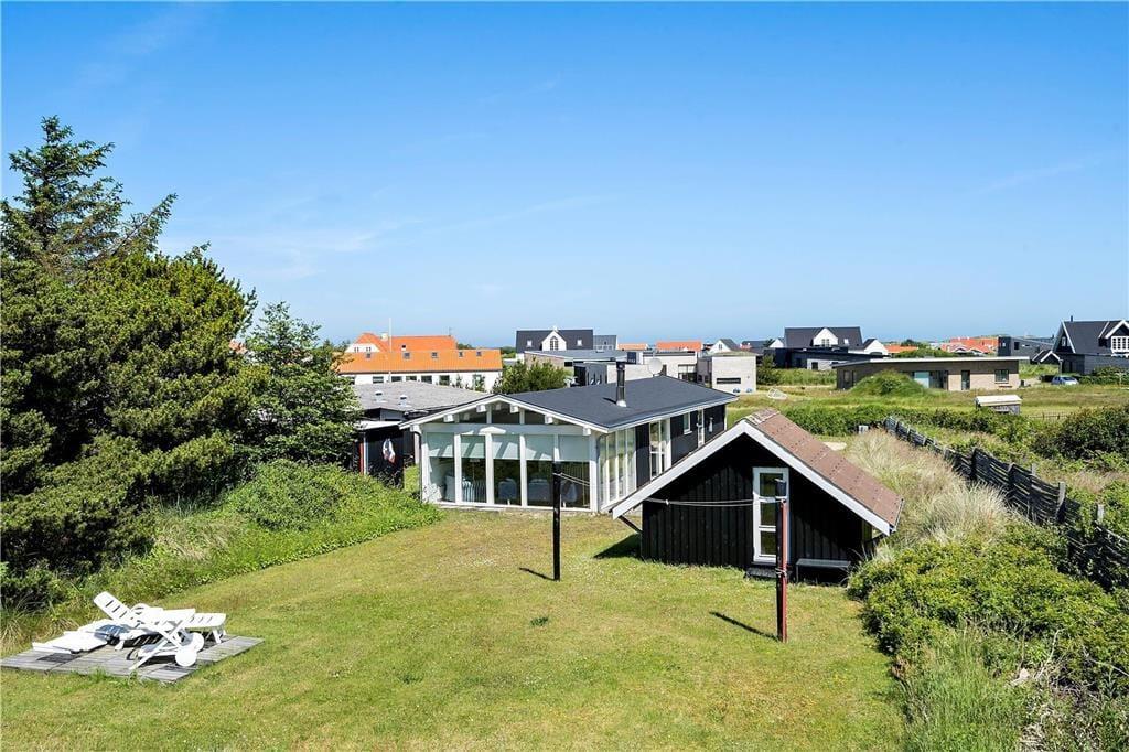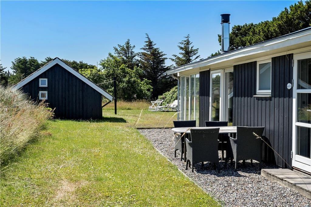 Sommerhuset ligger på en dejlig grund, hvor udelivet nemt kan nydes dagen lang. Den rummelige terrasse er et oplagt sted at starte dagen med en kop kaffe, mens du lytter til fuglesang og mærker den friske havluft. Her er der plads til solbadning, grillhygge og afslapning med en god bog, mens børnene kan lege frit på græsplænen. Den skønne beliggenhed tæt på naturen gør det nemt at komme helt ned i gear, og den friske brise fra Vesterhavet sørger for den perfekte sommerhusstemning.