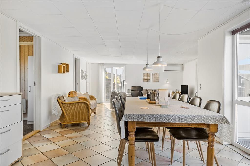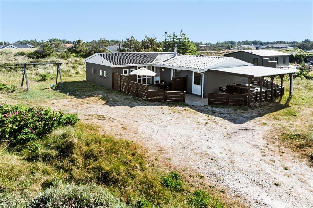Den store grund omkring sommerhuset giver plads til både leg og afslapning. De yngste kan boltre sig i klitterne, mens de voksne finder ro på terrassen med en god bog og en kop kaffe. Når aftenen falder på, inviterer terrassen til hyggelige grillaftener under den klare himmel, hvor duften af grillmad blander sig med den friske havluft fra Vesterhavet, der ligger i kort gåafstand fra sommerhuset.