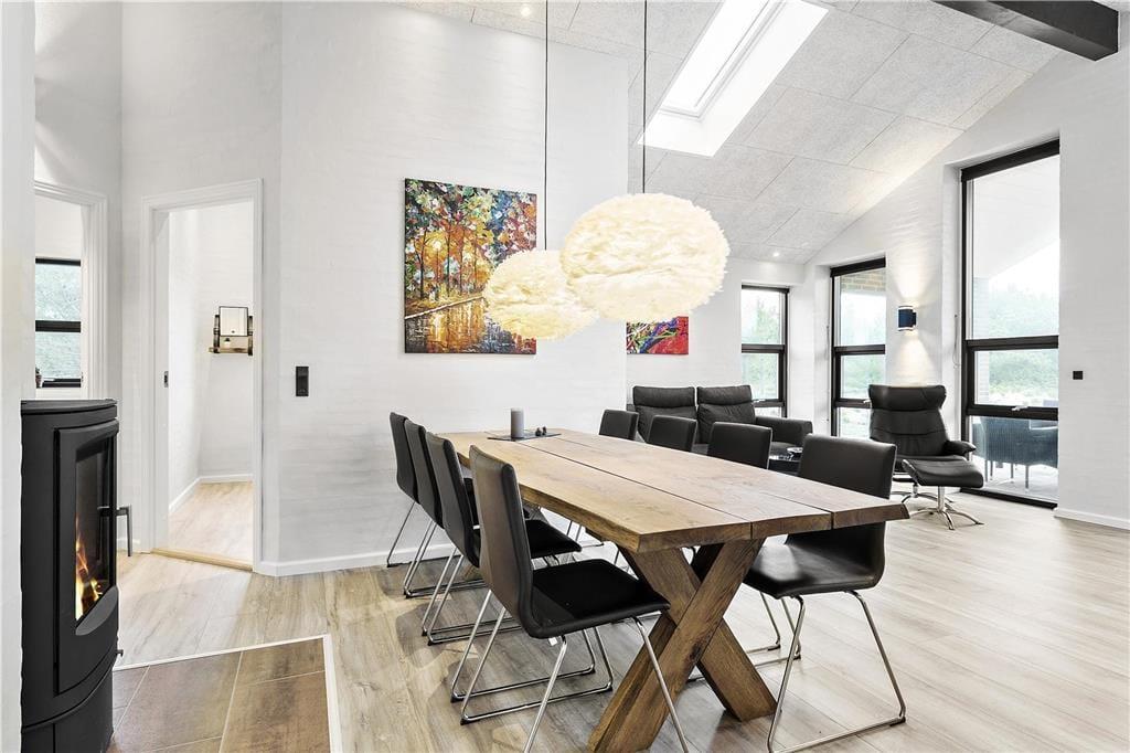 Sommerhuset på Spanggårdsvej 77 er et ideelt tilflugtssted for familier og vennegrupper, der ønsker at nyde en ferie sammen i naturskønne omgivelser. Huset har plads til 8 personer, og med sin åbne planløsning er der lagt op til samvær og hygge i de store, lyse opholdsrum. Brændeovnen skaber en varm atmosfære, der indbyder til hyggelige aftener med brændeknitrende baggrundslyd og afslapning efter en dag i naturen. De to badeværelser gør huset ekstra praktisk for større grupper, så alle kan få en god start på dagen uden trængsel.