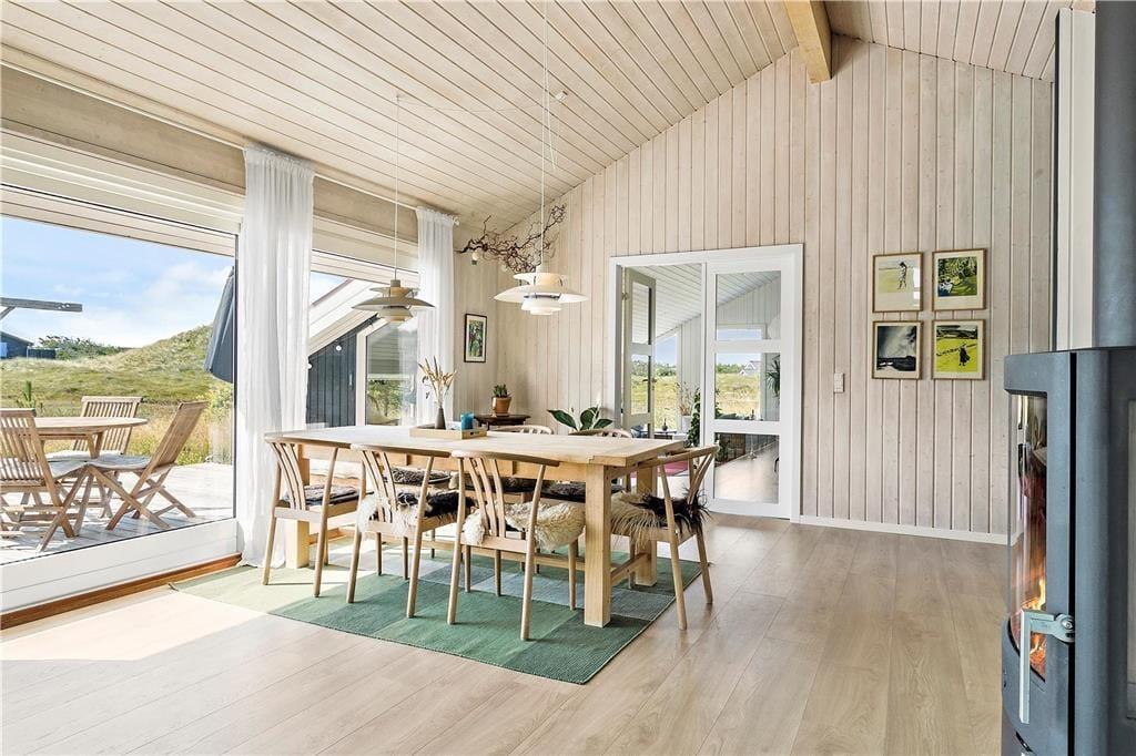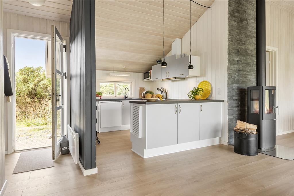 Indenfor i dette nyrenoverede sommerhus finder du en lys og indbydende indretning, der emmer af afslappet charme og moderne komfort. Stuen er husets hjerte – et sted, hvor du kan slappe af med en god bog eller spille spil med familien, mens brændeovnen spreder varme og hygge på kølige aftener. Køkkenet og spiseområdet ligger i åben forbindelse med stuen, hvilket skaber en hyggelig atmosfære, der indbyder til fælles madlavning og lange samtaler ved middagsbordet. Huset er perfekt til familier eller venner med plads til op til 6 personer, og soveværelserne giver dig ro og fred til en god nats søvn efter en dag fyldt med oplevelser.