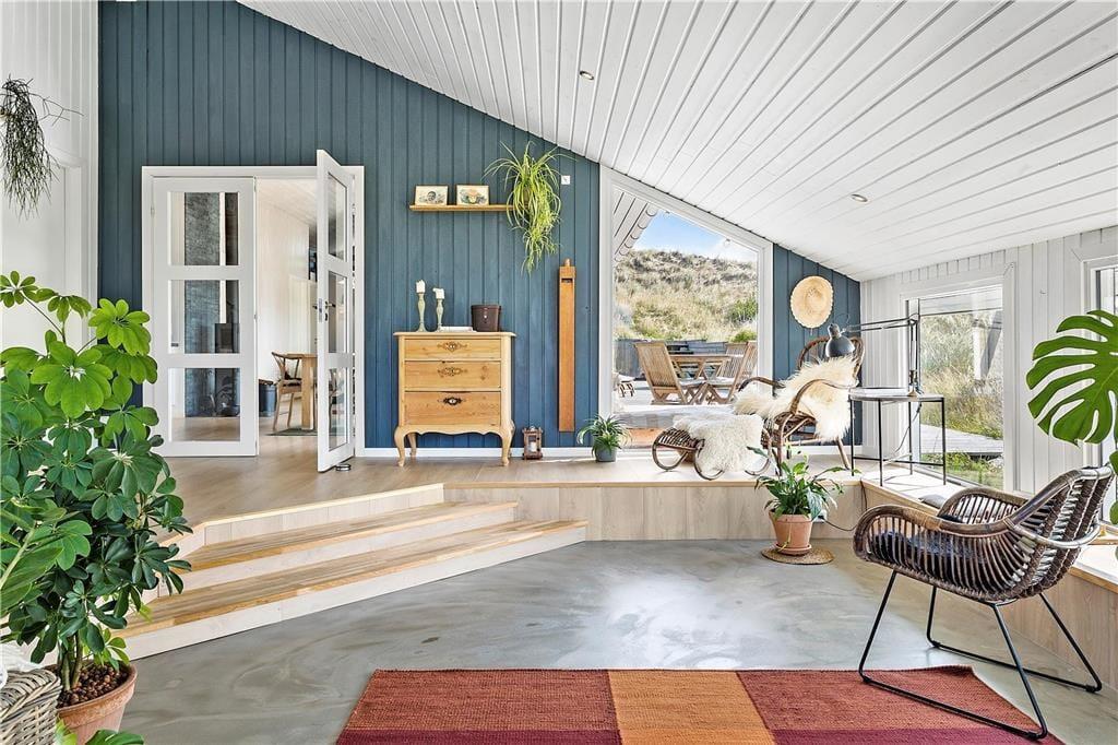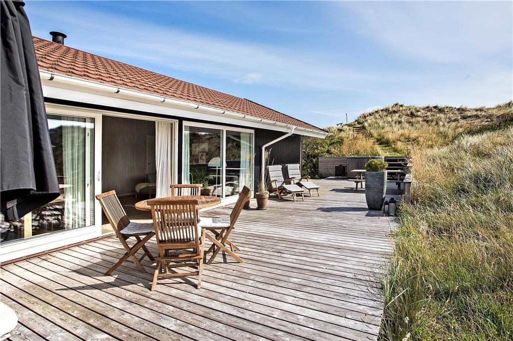 På Bavnbak 27 venter en ugeneret grund midt i klitterne, hvor naturen er en del af oplevelsen. Huset byder på hele fire træterrasser, som gør det nemt at finde en perfekt krog til både solopgangskaffen og aftensmaden på grillen. Her kan du høre bølgerne fra Vesterhavet i baggrunden, mens du nyder solen eller slapper af i skyggen. Med terrasser på flere sider af huset kan du altid finde læ eller sol alt efter vind og vejr, og børnene kan trygt lege i de naturskønne omgivelser, mens de voksne nyder roen.
