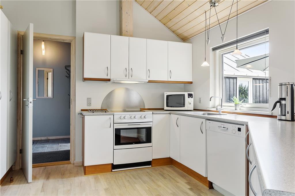 Træd ind i et lyst og indbydende sommerhus, hvor loft til kip skaber en luftig og behagelig atmosfære. Her er alt, hvad du behøver for at nyde nogle afslappende dage med dine nærmeste. Den rummelige stue med brændeovn bliver hurtigt familiens samlingspunkt – hvad enten det er til en hyggelig aften med brætspil, en god bog eller blot ren afslapning foran flammernes blide skær. Indretningen emmer af varme og charme og inviterer dig til at lade hverdagens stress smelte væk. Huset er perfekt til en familie med god plads til alle, der ønsker at skabe uforglemmelige ferieminder sammen.