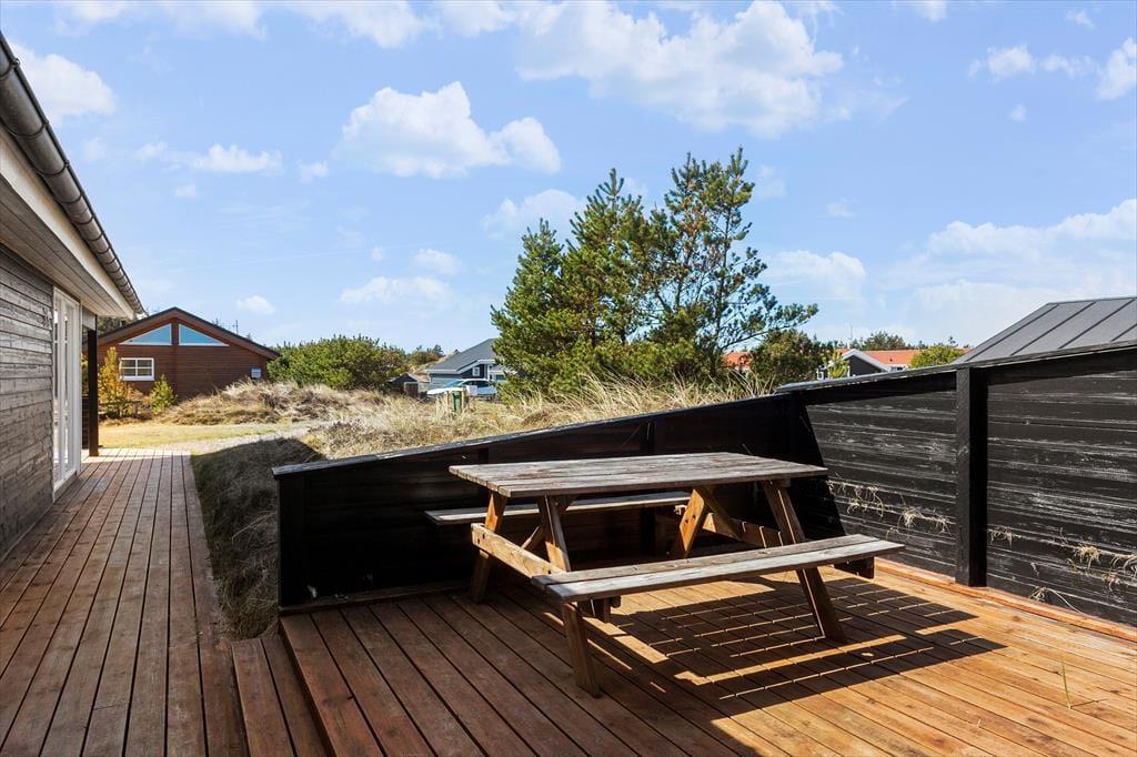 Udenfor fortsætter oplevelsen med flere solterrasser, der omkranser huset. Her finder du altid en plads i solen eller læ for vinden – perfekt til afslapning med en kop kaffe om morgenen eller grillhygge i de lange sommeraftener. Grunden inviterer til leg og aktiviteter, mens Klitmøllers friske havluft sætter prikken over i’et. Med direkte adgang til naturen omkring dig kan du nemt koble af og finde ro i de naturskønne omgivelser.