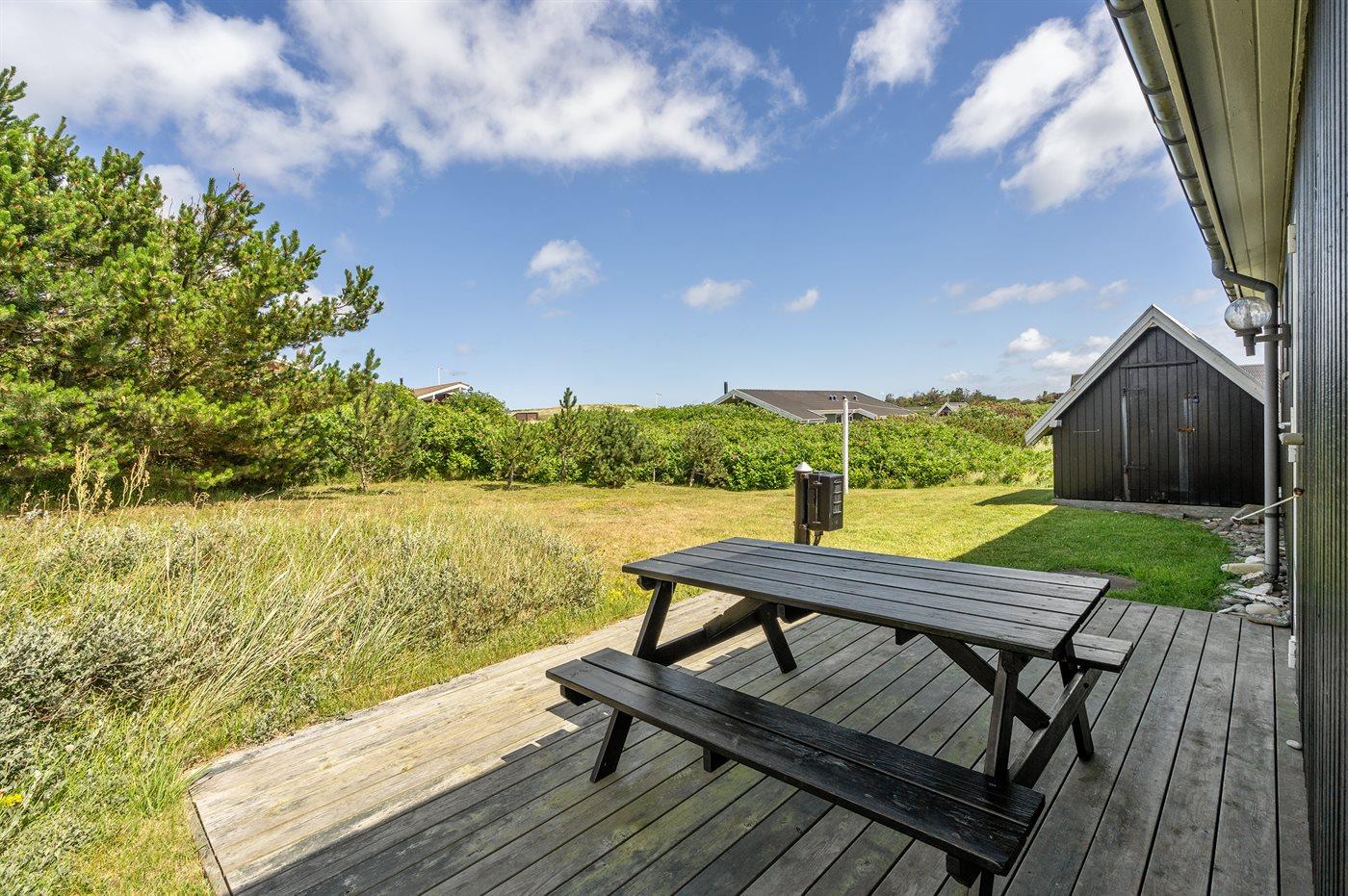 Ferieboligen er beliggende på en 1250 m² stor klitgrund. Der er 250 m til havet. Nærmeste forretning er beliggende i en afstand af 500 m. Til ferieboligen hører 40 m² terrasseareal. Desuden er der 7 m² overdækket terrasse. Der er redskabsrum. Parkering ved ferieboligen.